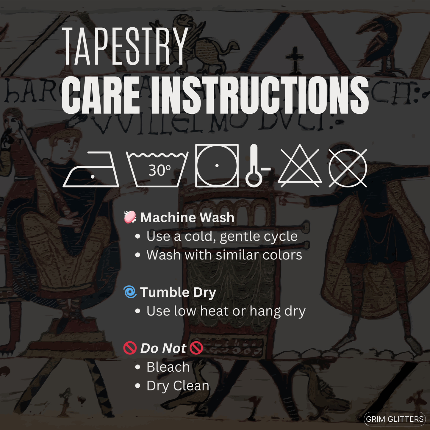 Crafted from high-quality polyester, our tapestry ensures durability and longevity. Hemmed edges and precise printing techniques guarantee a stunning display piece that will withstand the test of time. Available in three sizes to suit your space: