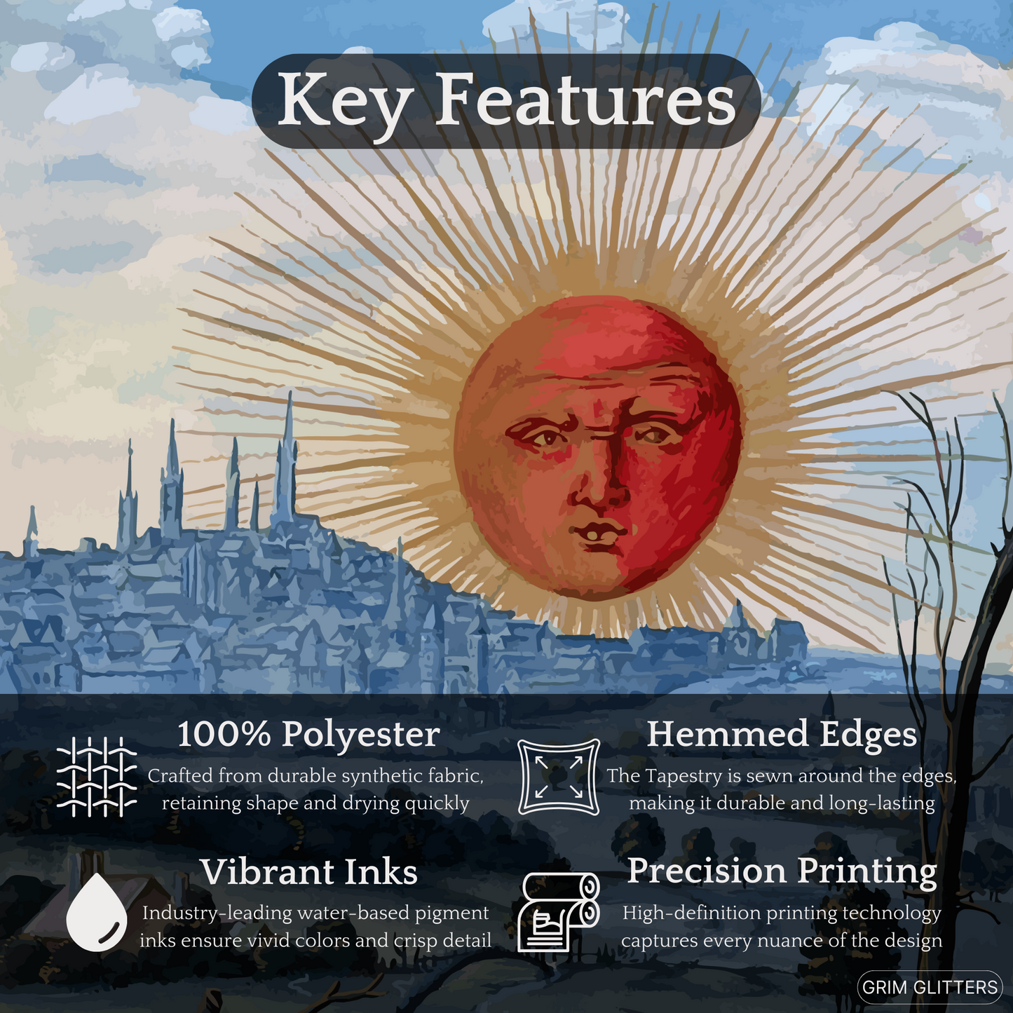 Crafted with advanced printing techniques, our tapestry ensures vibrant colors and crisp detail, bringing the artwork to life with stunning clarity.