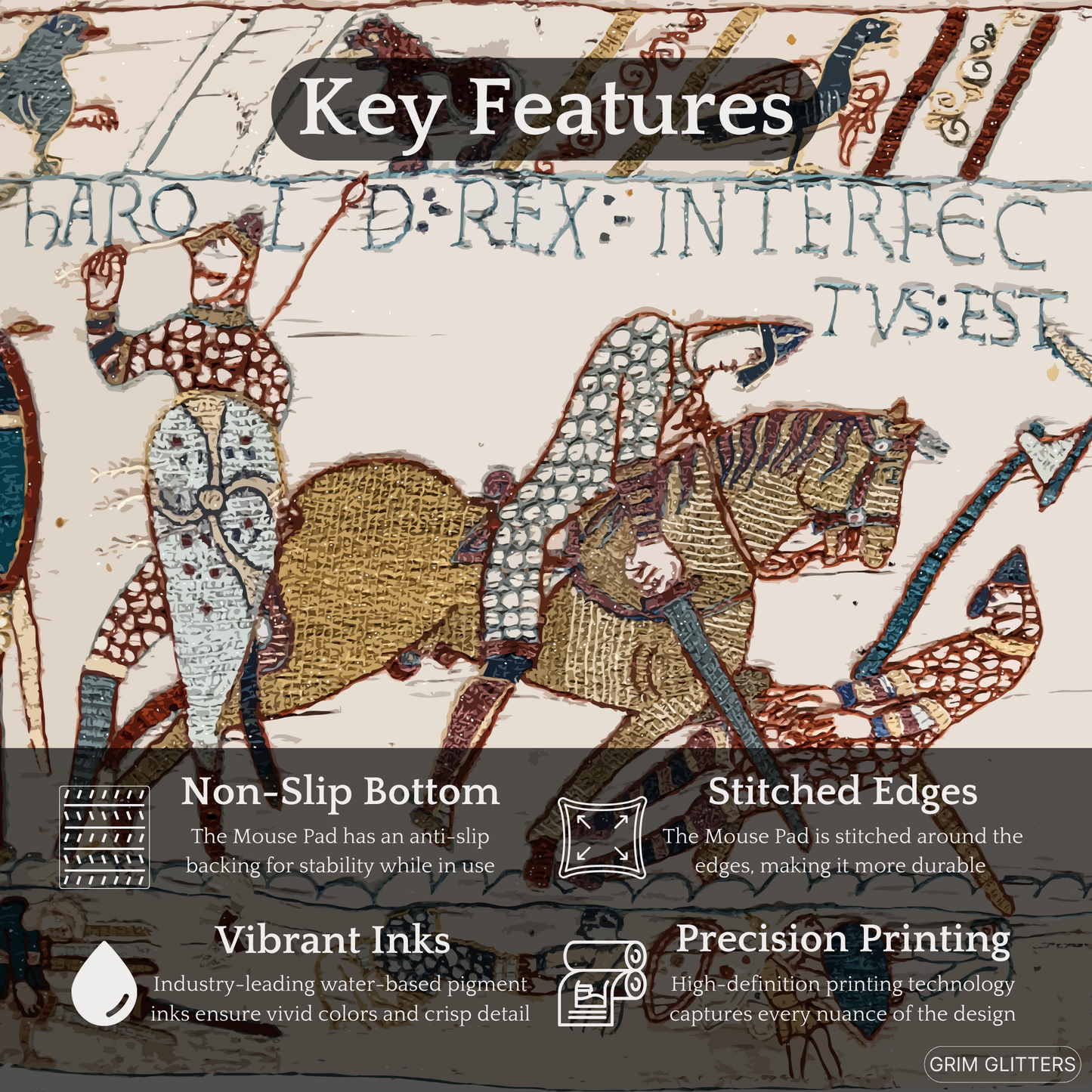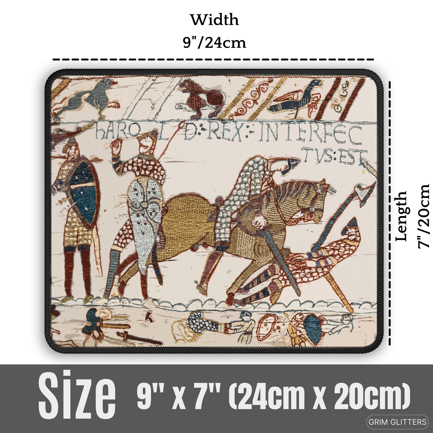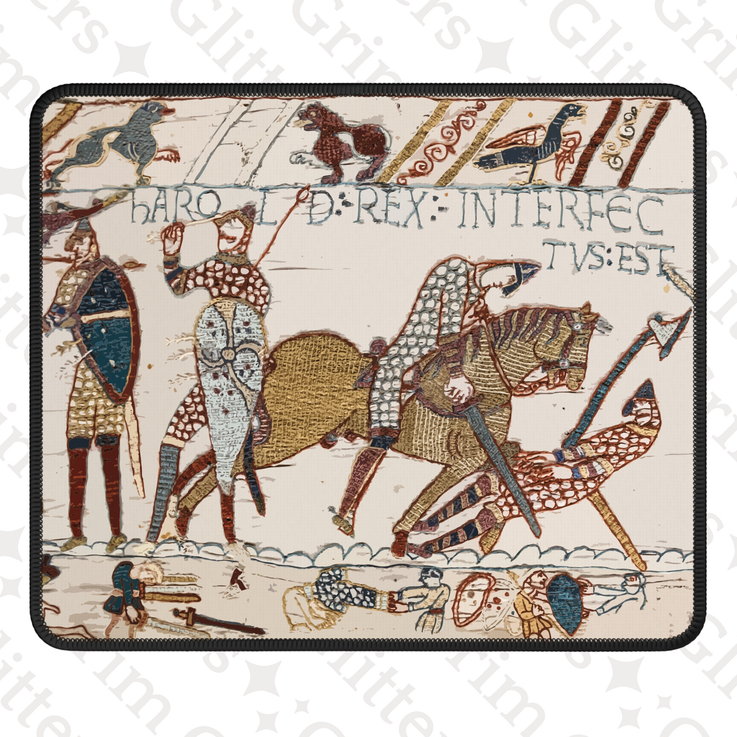 Elevate your gaming and work experience with the historical charm of our The Death of King Harold Gaming Mouse Pad. Inspired by the iconic Bayeux Tapestry, this mouse pad captures the dramatic moment of King Harold's demise during the Battle of Hastings, bringing a touch of medieval history to your home office decor.