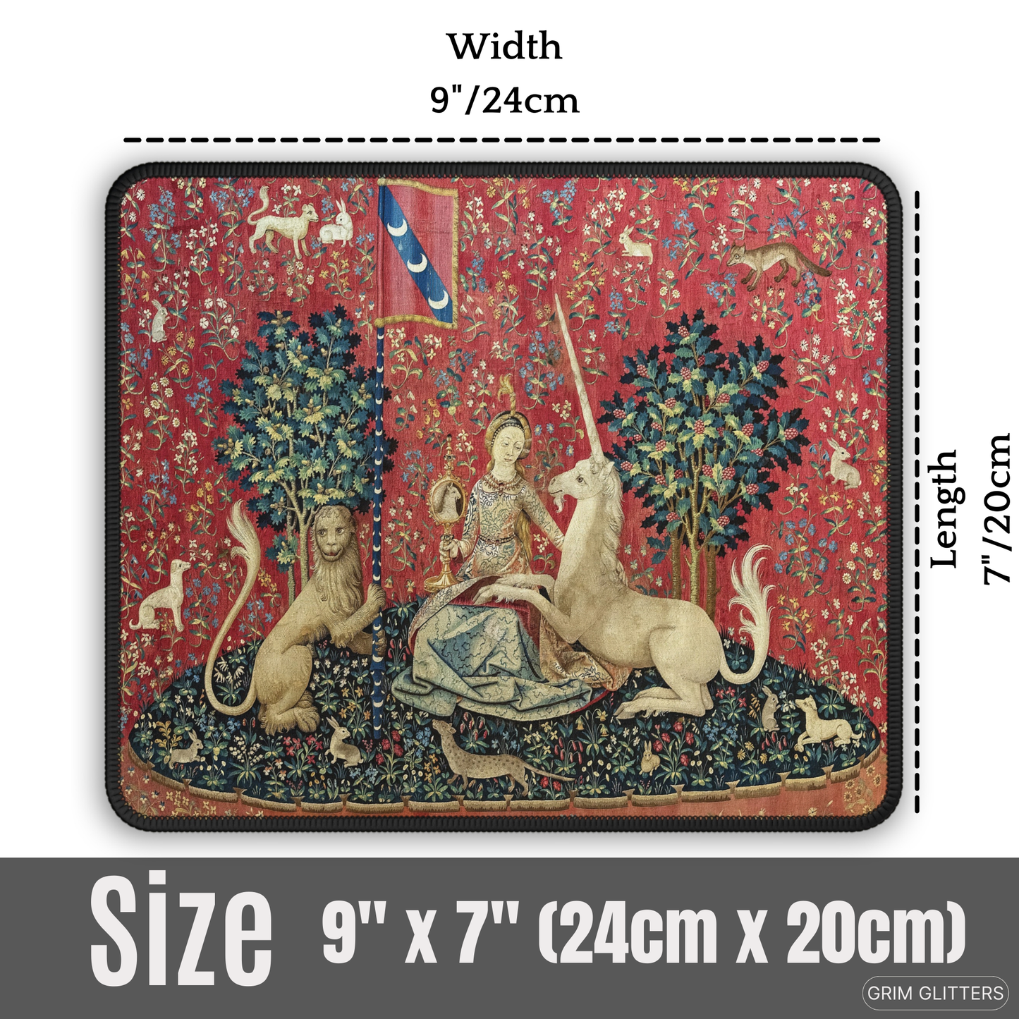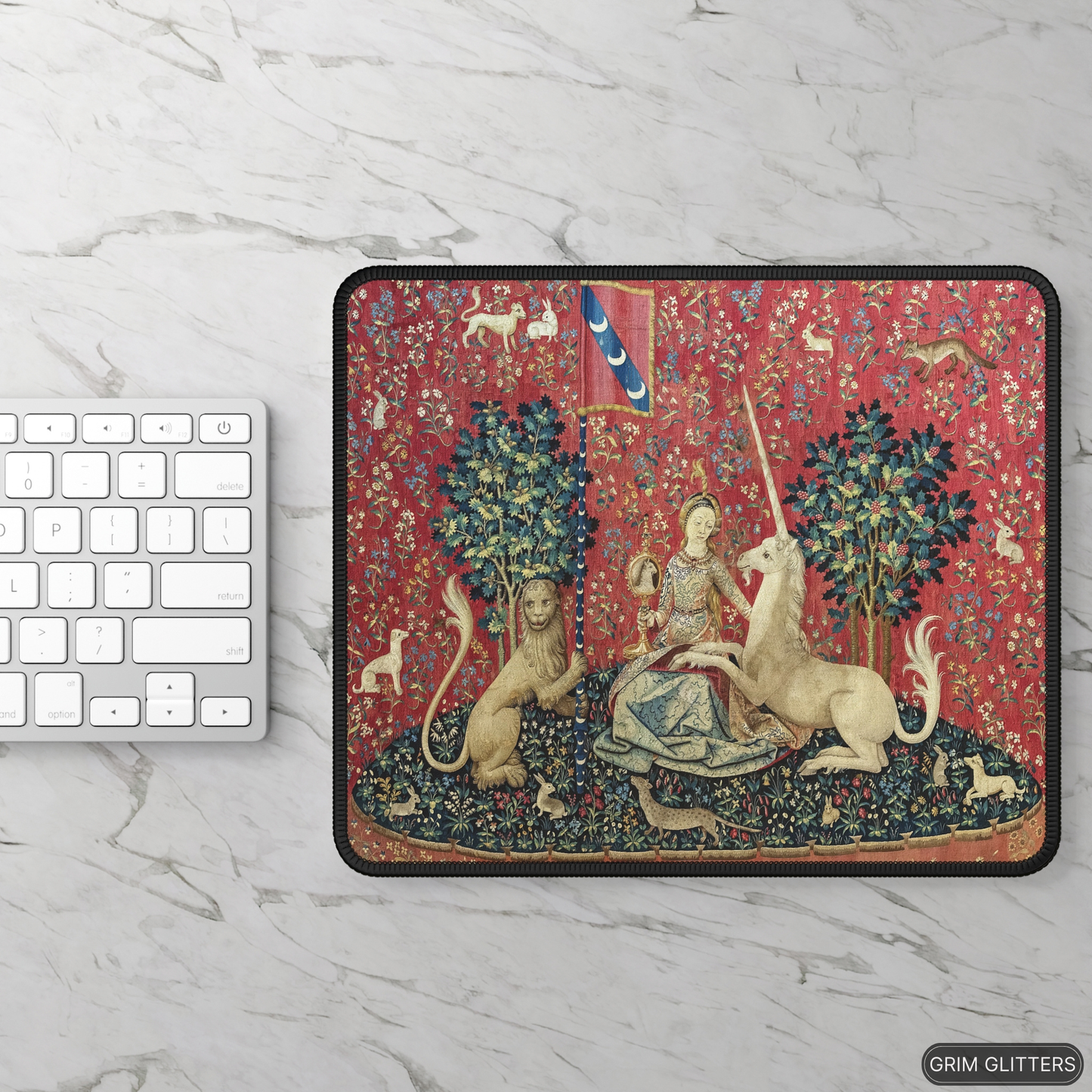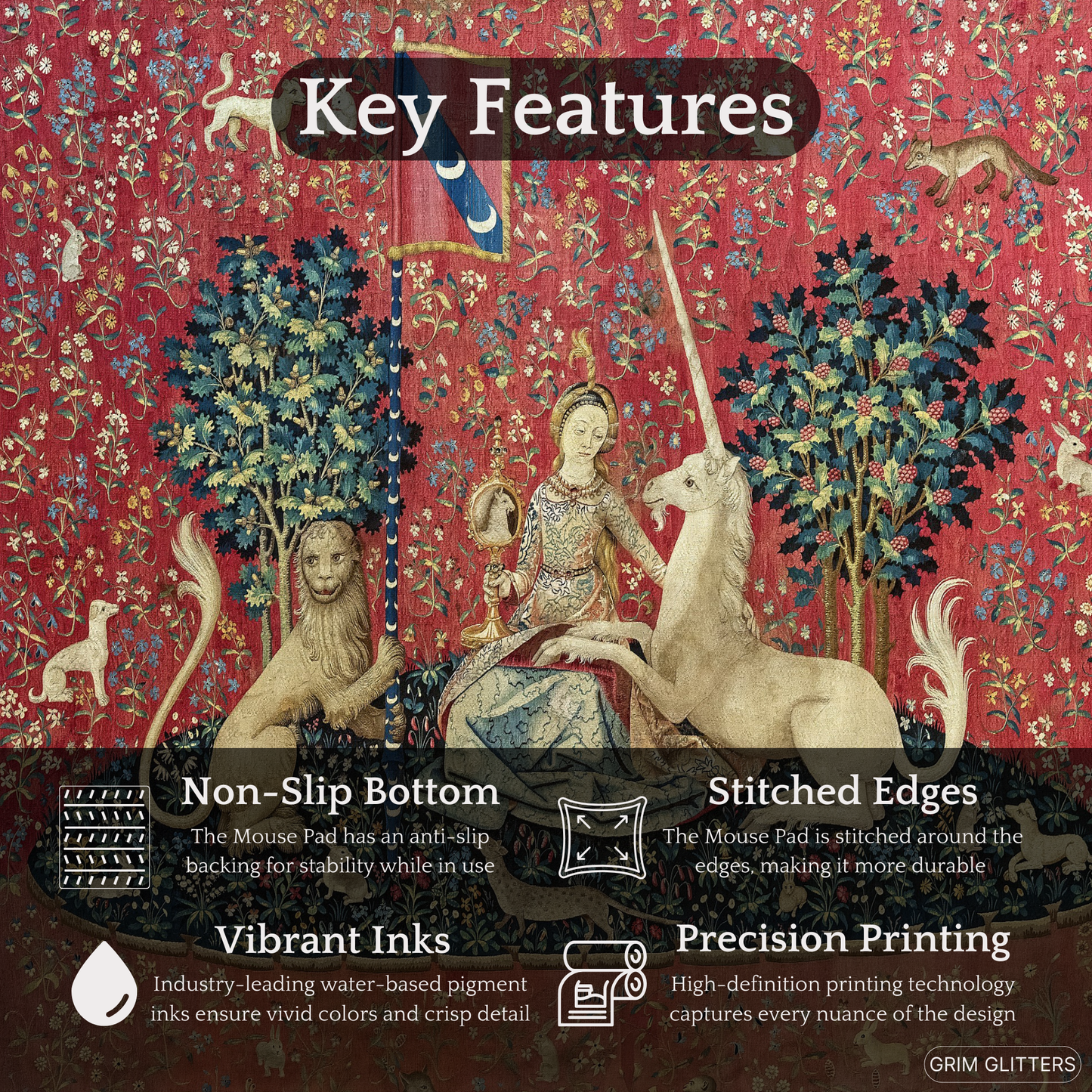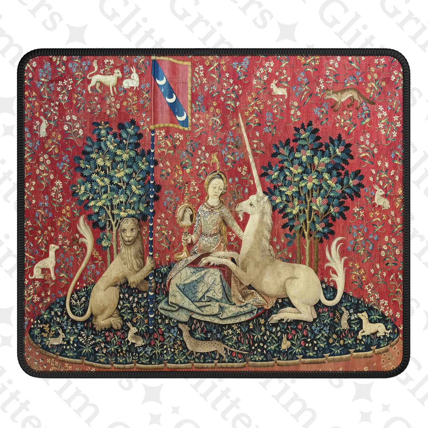 Elevate your gaming and work experience with the historical and mystical charm of our Lady and the Unicorn (Sight) Gaming Mouse Pad. Perfect for gamers, history enthusiasts, and medieval art lovers, this mouse pad adds a touch of elegance and sophistication to any desk.