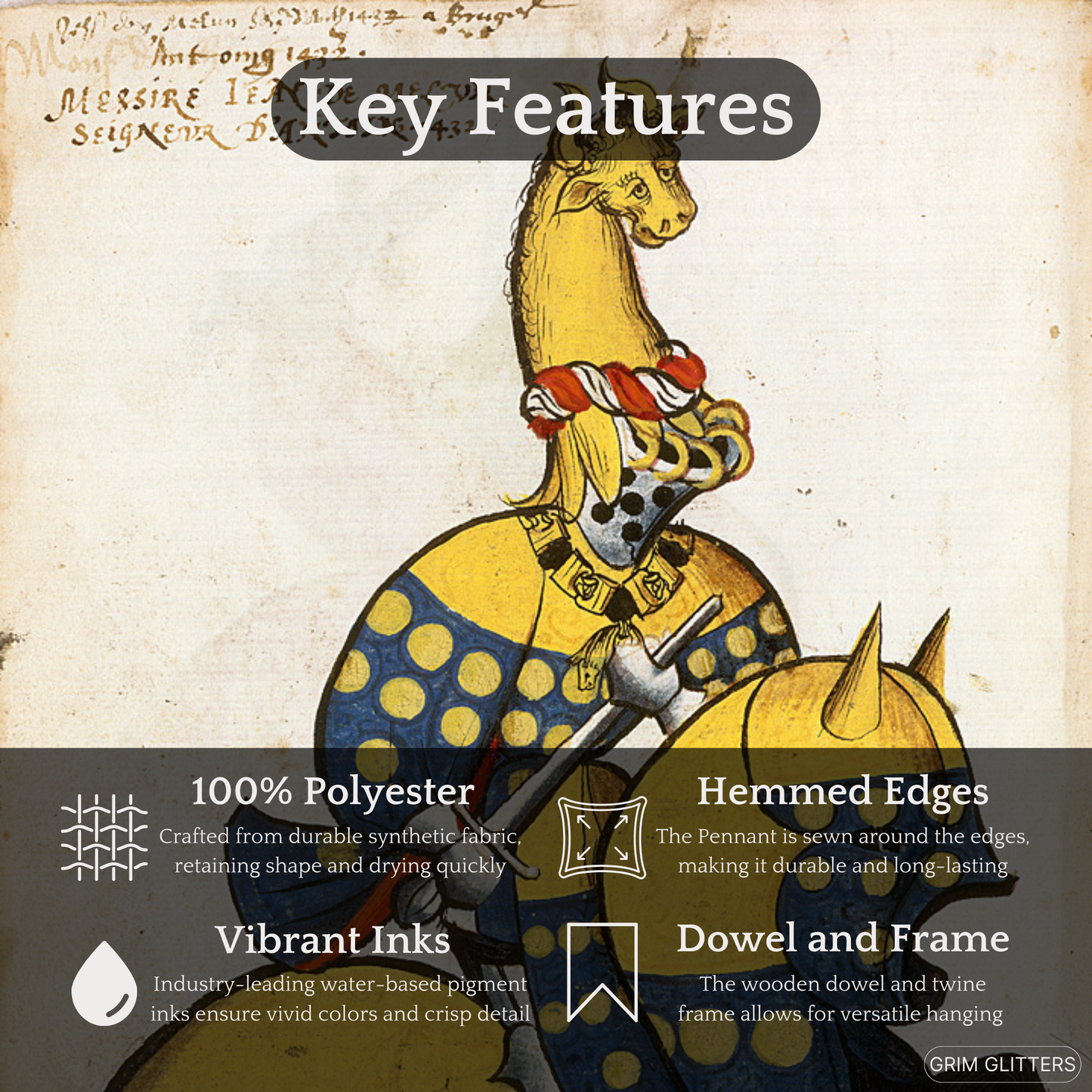 Honor the legacy of Jean de Melun and the chivalric ideals of medieval France with this elegant pennant banner, perfect for your home, office, or themed event decor.
