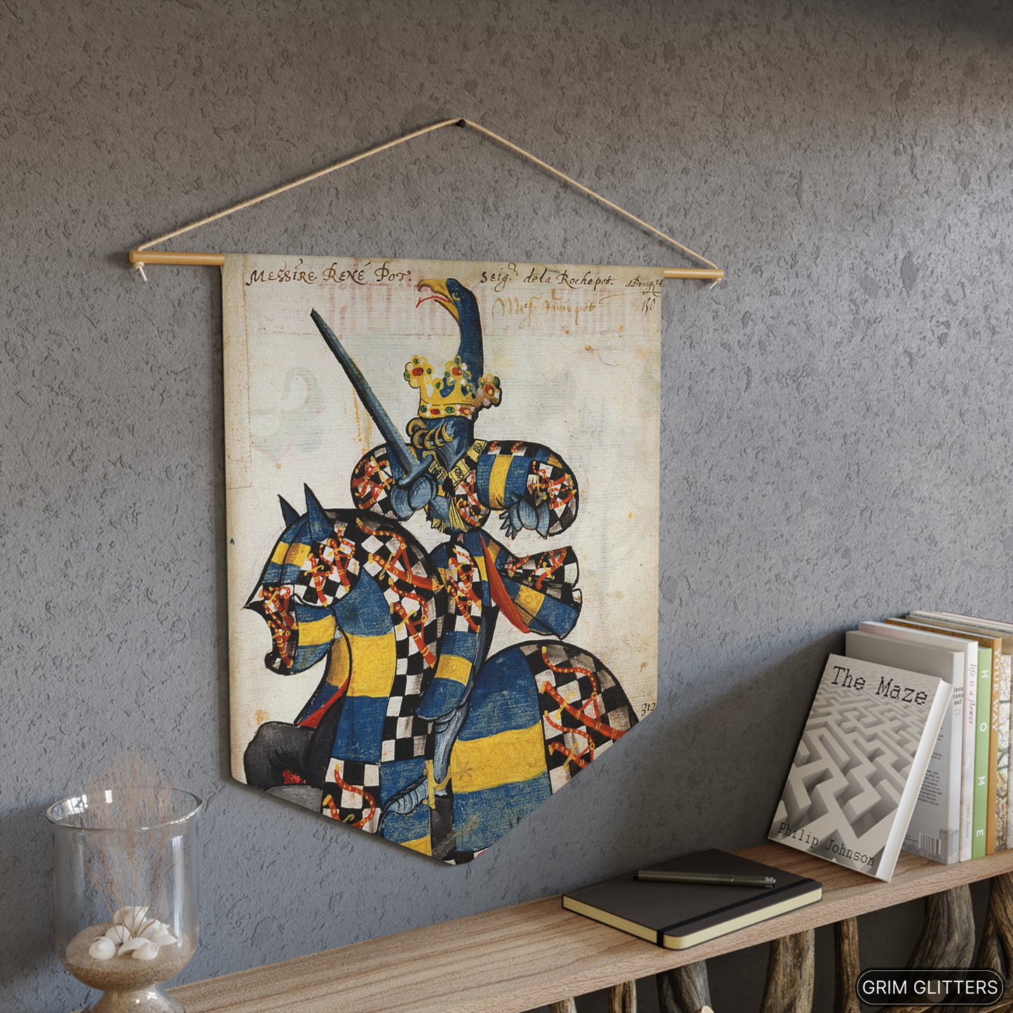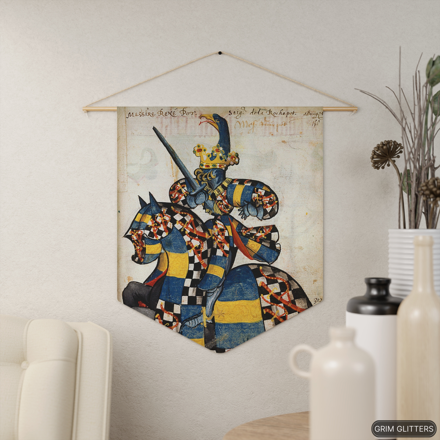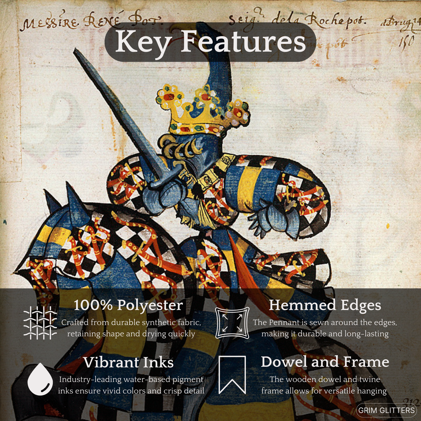 Perfect for history enthusiasts and admirers of medieval heraldry, this banner brings the grandeur of knightly tournaments to your home.