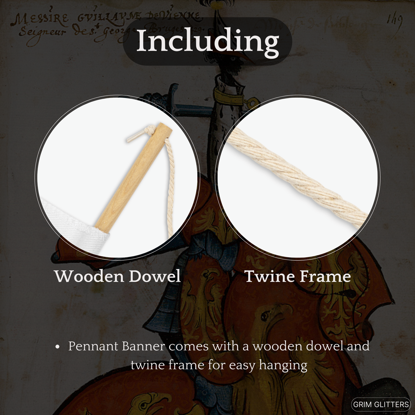 This elegant pennant banner brings the pageantry of the medieval tournament into your home, perfect for lovers of historic decor and Gothic aesthetics.