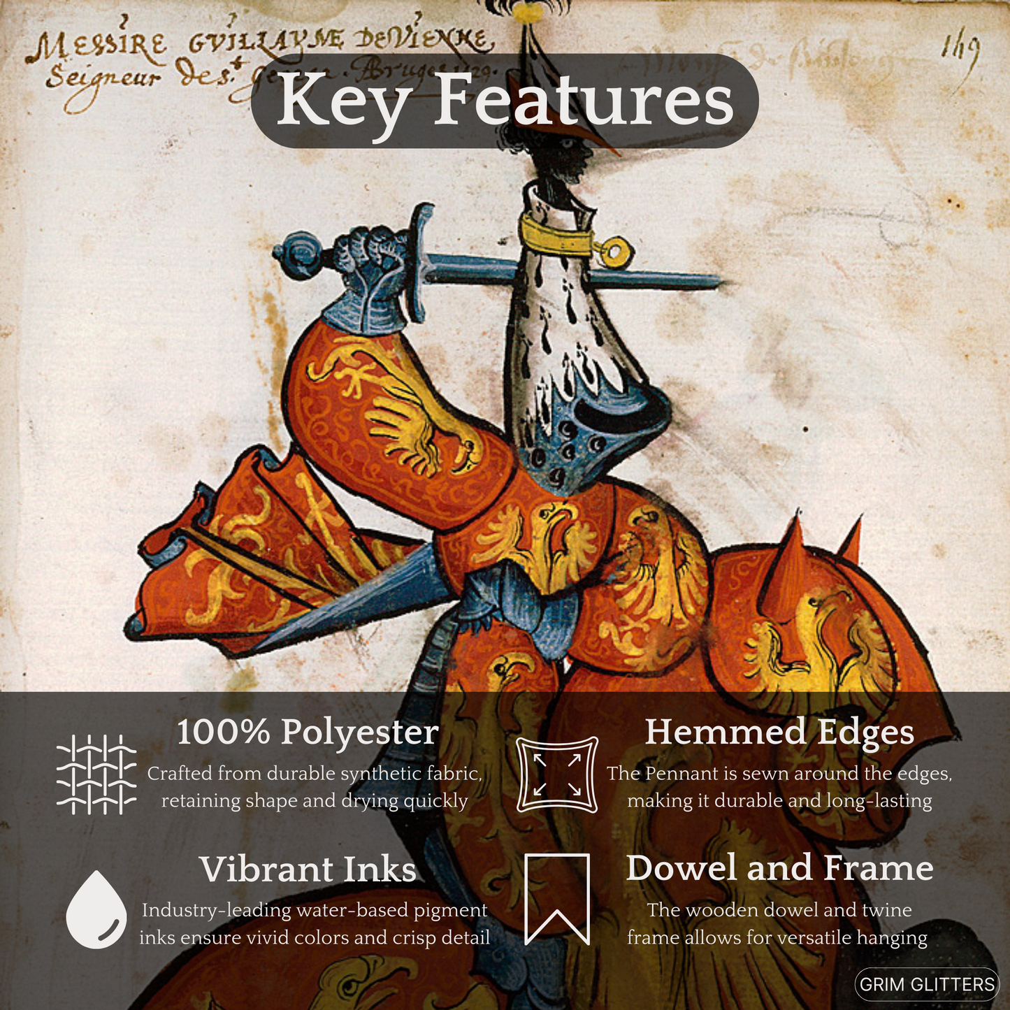 Honor the legacy of Guillaume de Vienne and medieval knighthood with this historic pennant banner, perfect for your home, office, or themed event decor.