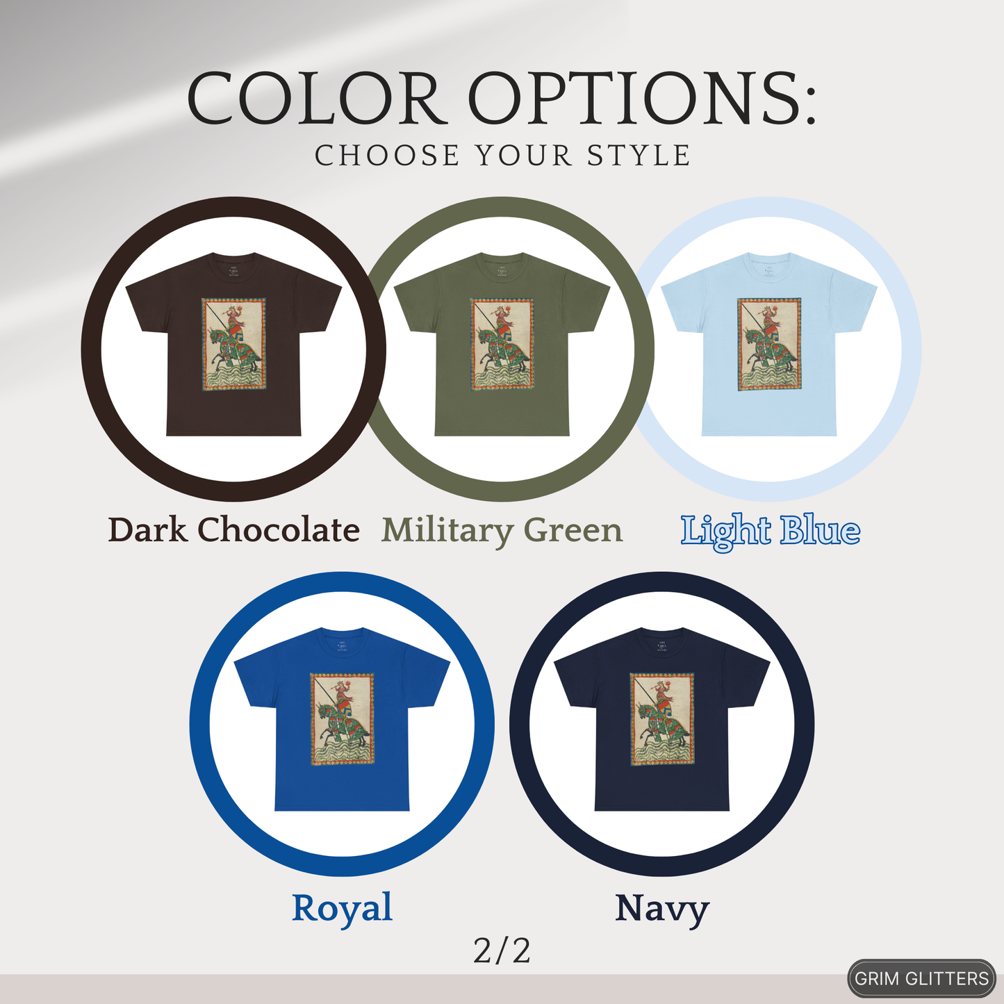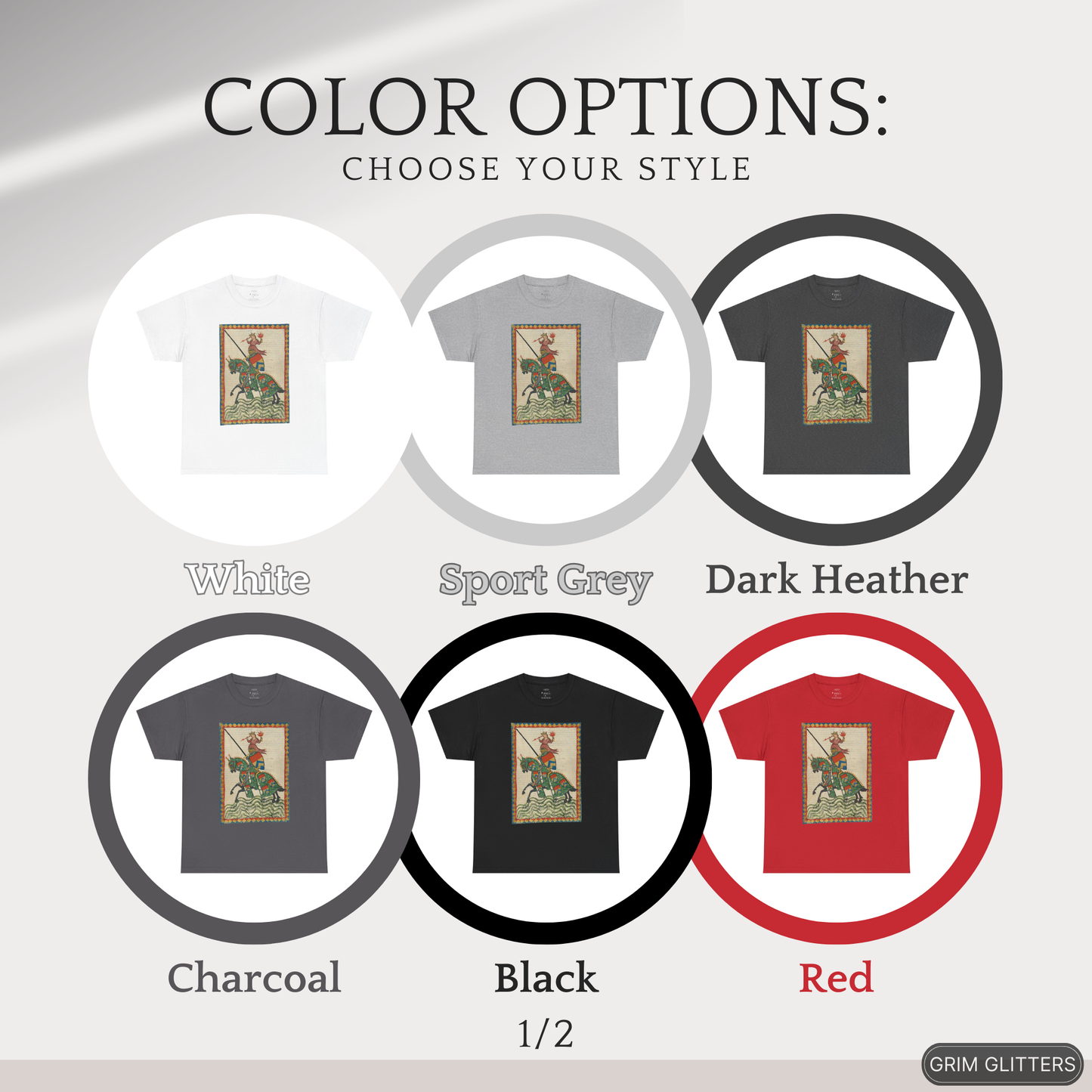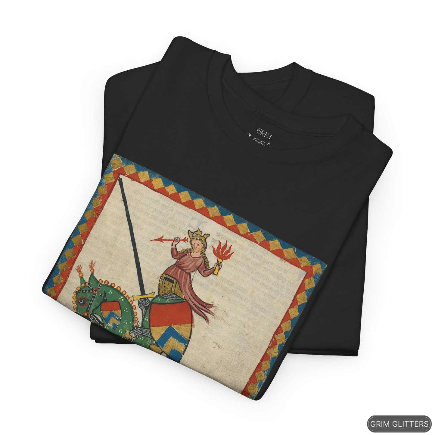 Printed on a sturdy Gildan 5000 heavy cotton tee, this design merges high-impact historical art with modern comfort—perfect for medievalists, romantics, or anyone who loves a bit of knightly flair.