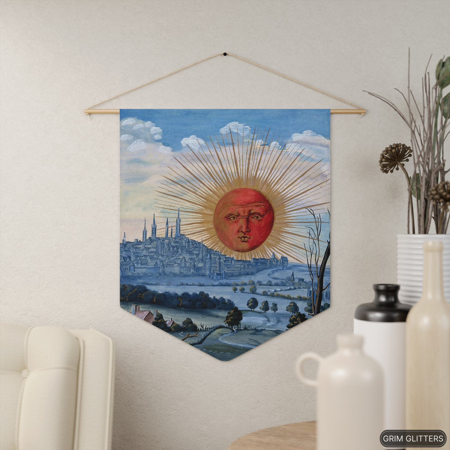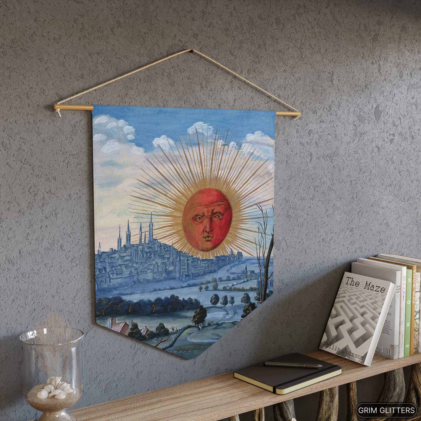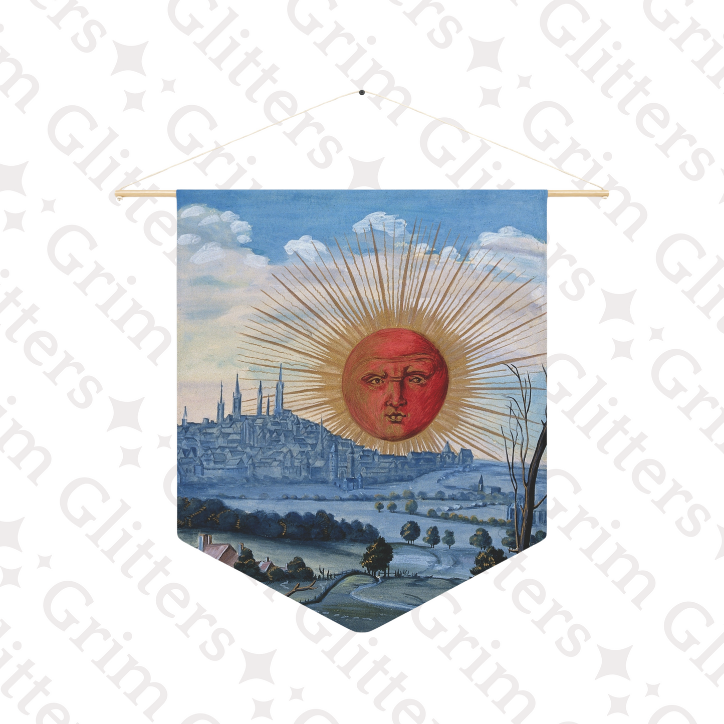 Stap in de mystieke wereld van de alchemie met onze Splendor Solis Pennant Banner, met het boeiende tafereel van een opkomende rode zon. Geïnspireerd door de iconische illustratie van Splendor Solis, voegt deze banner een vleugje betovering toe aan elke ruimte.