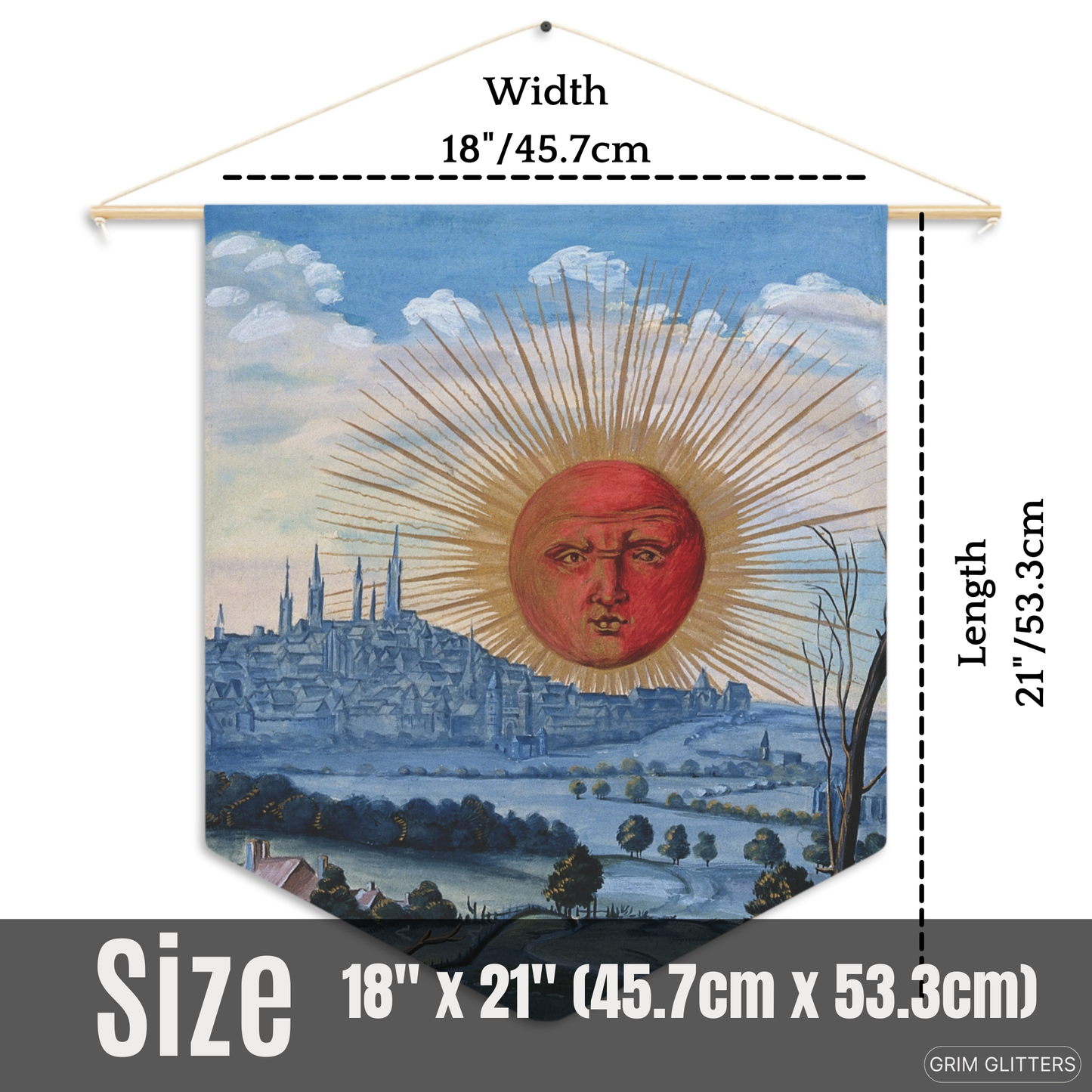 Onze banner meet 45,7 cm x 53,3 cm, waardoor hij perfect is om in elke ruimte op te hangen. Lichtgewicht en gemakkelijk op te hangen, het is een veelzijdige toevoeging aan je interieur.