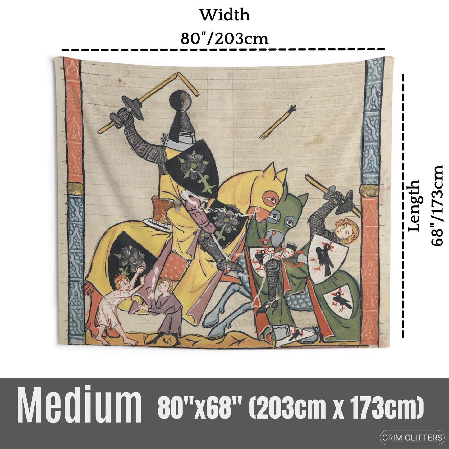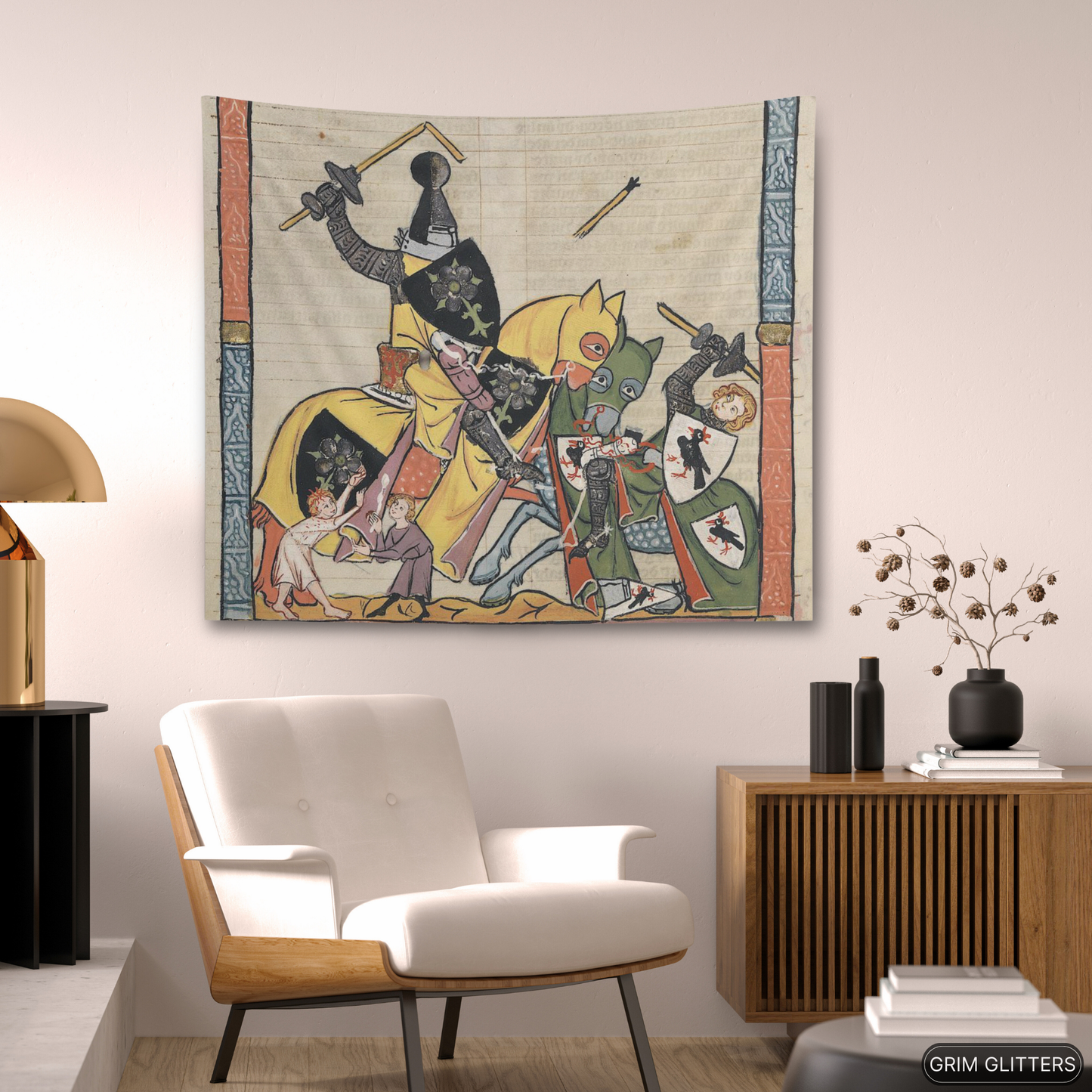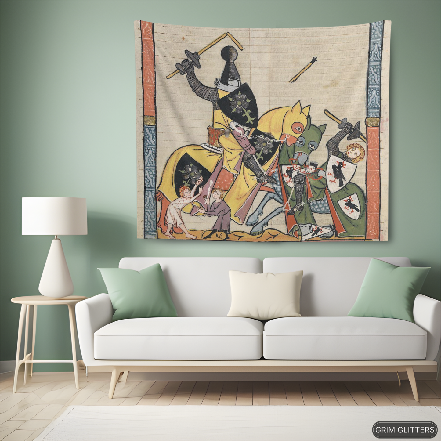 This tapestry isn’t just decor—it’s a portal to a time of knightly valor and poetic legacy. As part of the Codex Manesse series, it captures the noble heritage of a manuscript revered for its depictions of medieval life, making it an ideal focal point for history lovers and art enthusiasts alike.