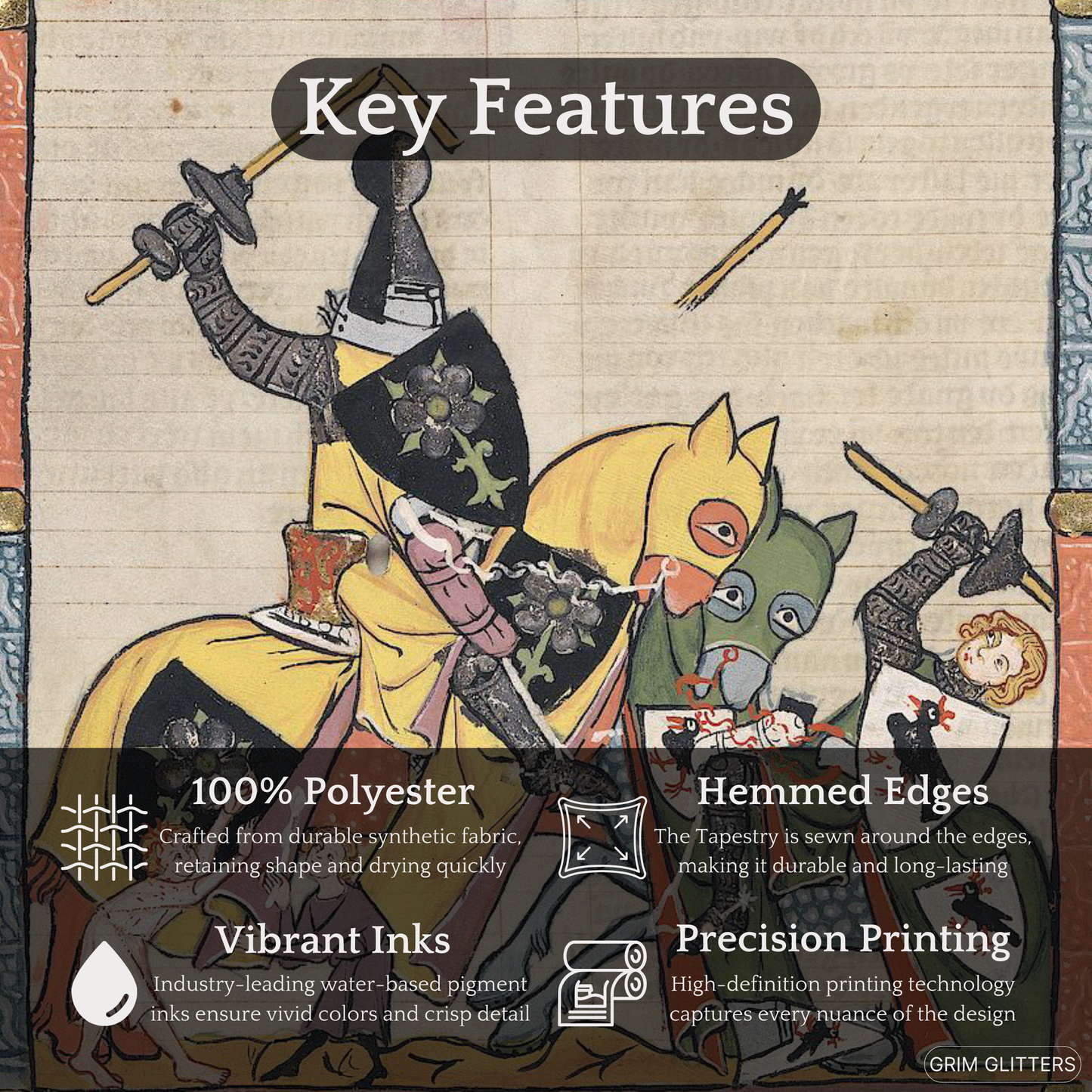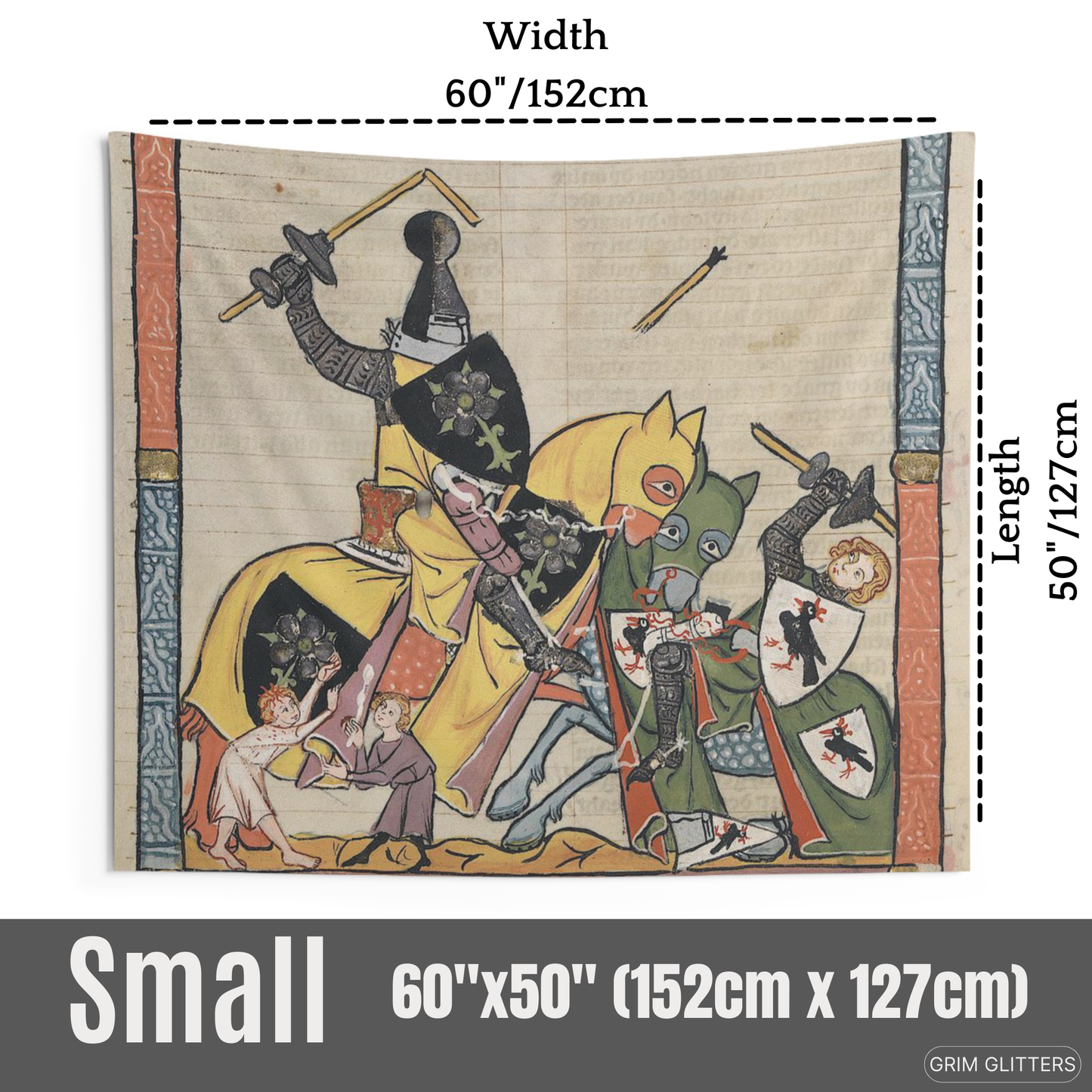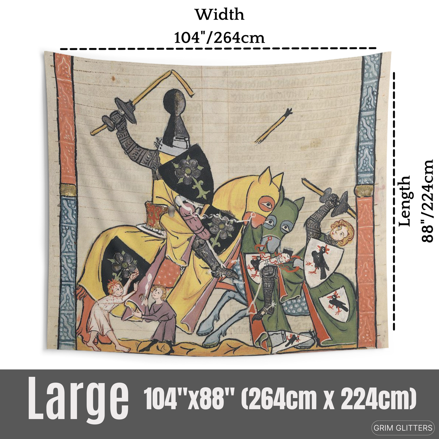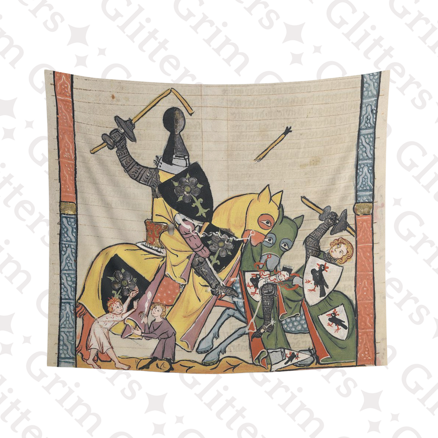 This tapestry isn’t just decor—it’s a portal to a time of knightly valor and poetic legacy. As part of the Codex Manesse series, it captures the noble heritage of a manuscript revered for its depictions of medieval life, making it an ideal focal point for history lovers and art enthusiasts alike.