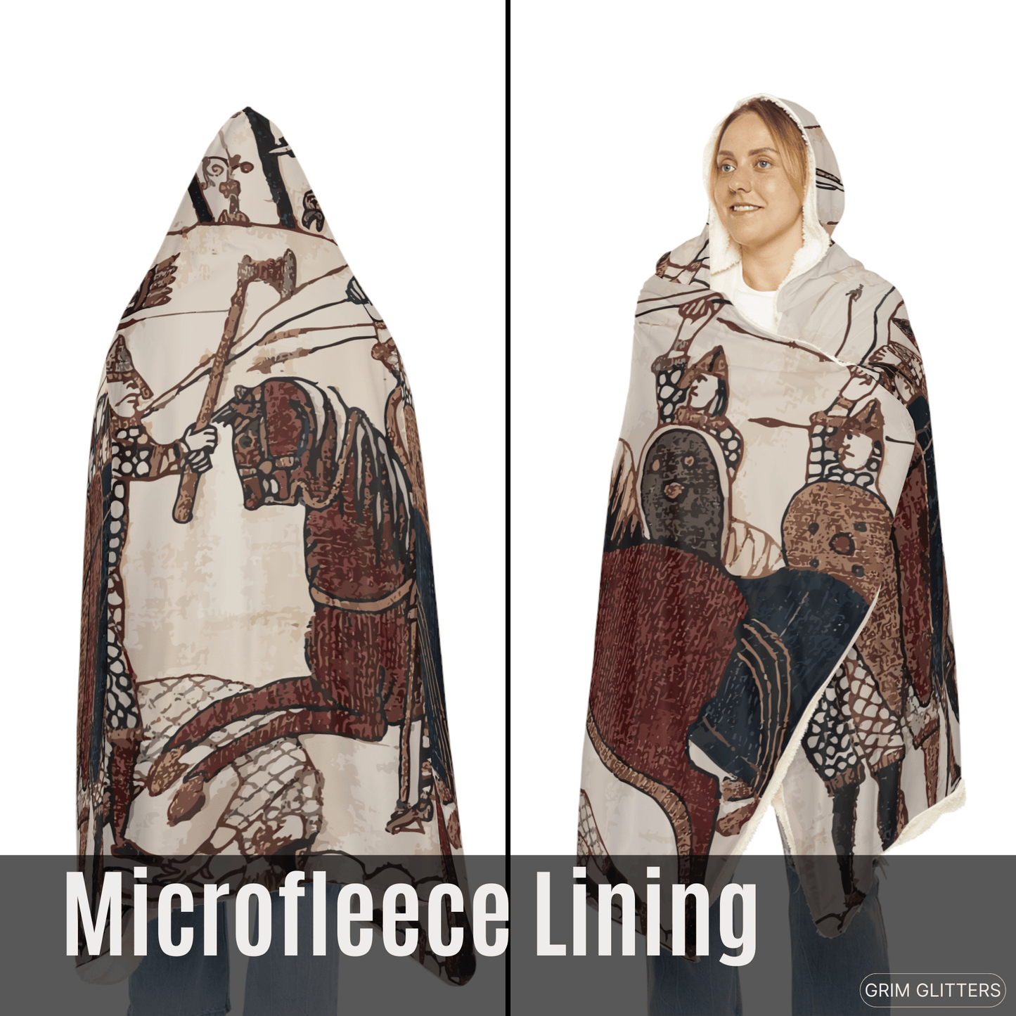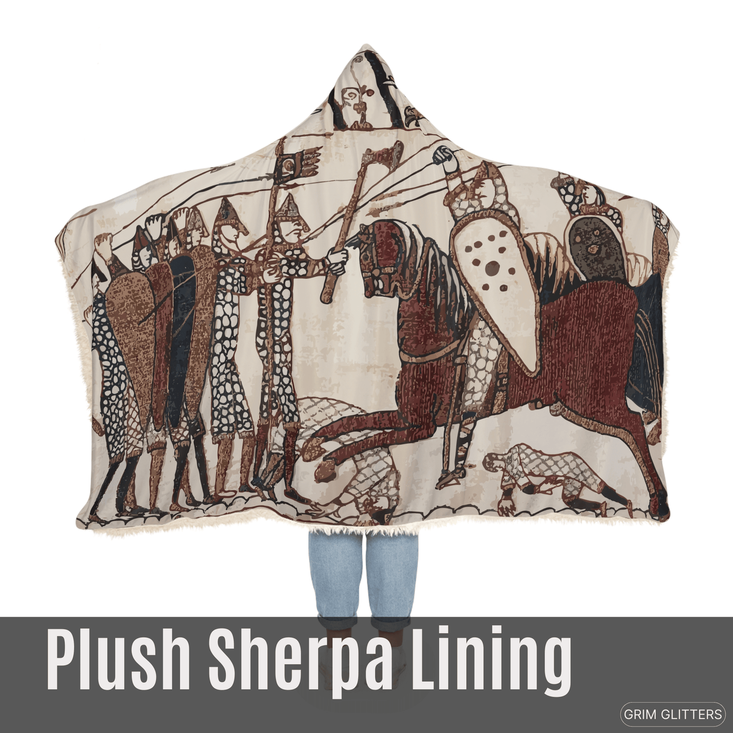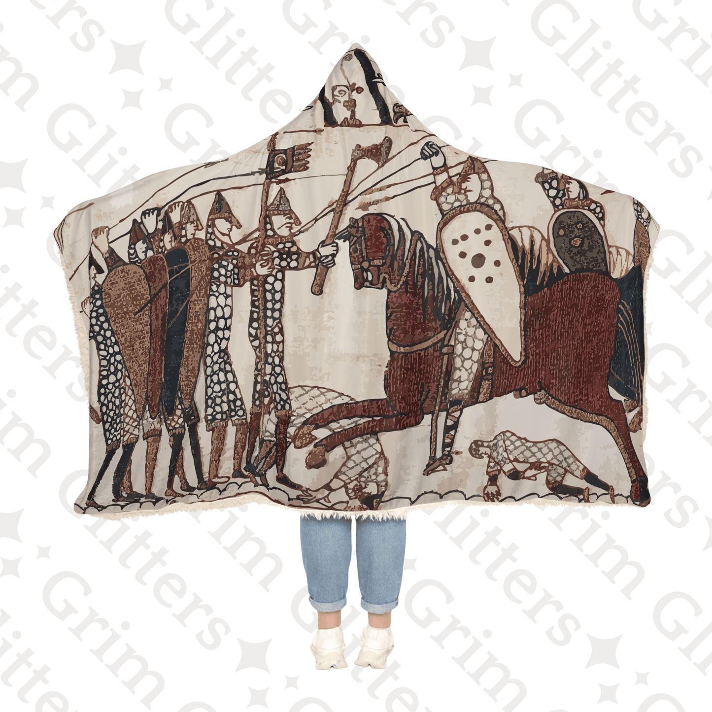 Wikkel jezelf in middeleeuwse pracht met onze Bayeux Tapestry Snuggle Cloak. Met een iconische scène uit het tapijt van Bayeux – "Norman Knights Charging Anglo-Saxon Warriors" – neemt deze mantel je mee naar het hart van de Slag om Hastings, waar de geschiedenis tot leven komt.