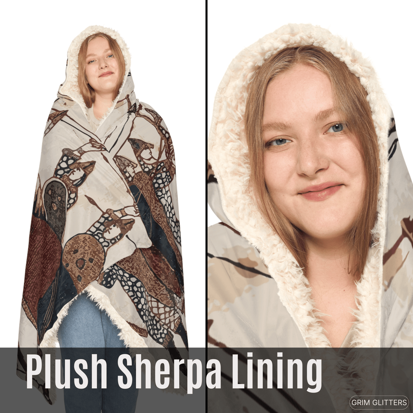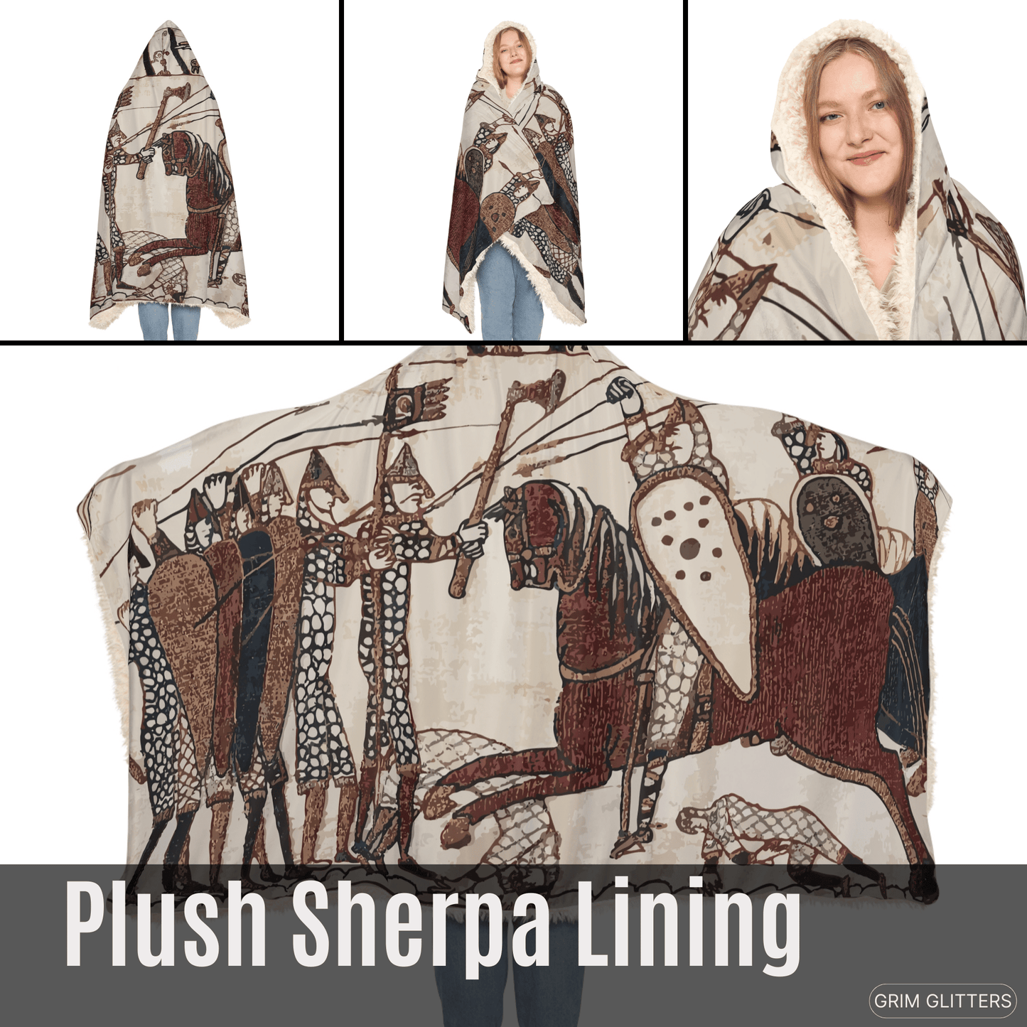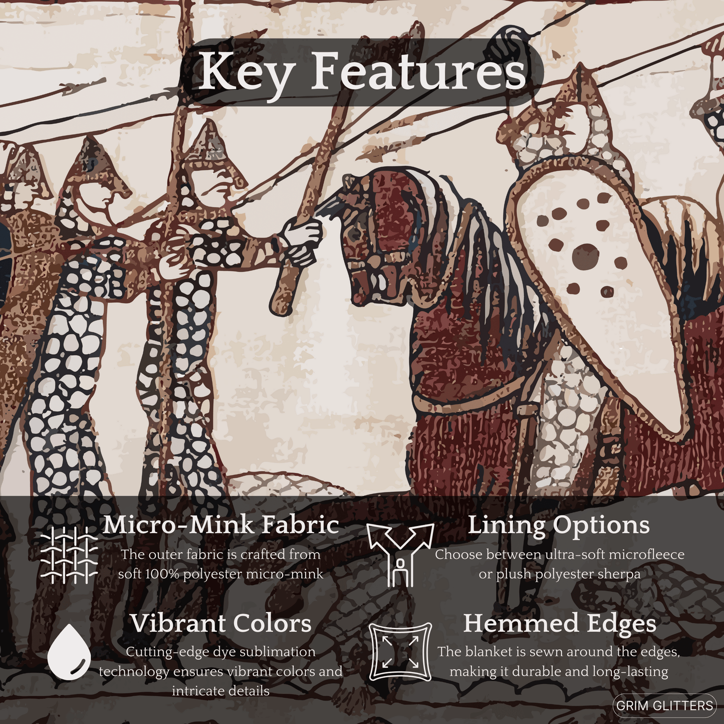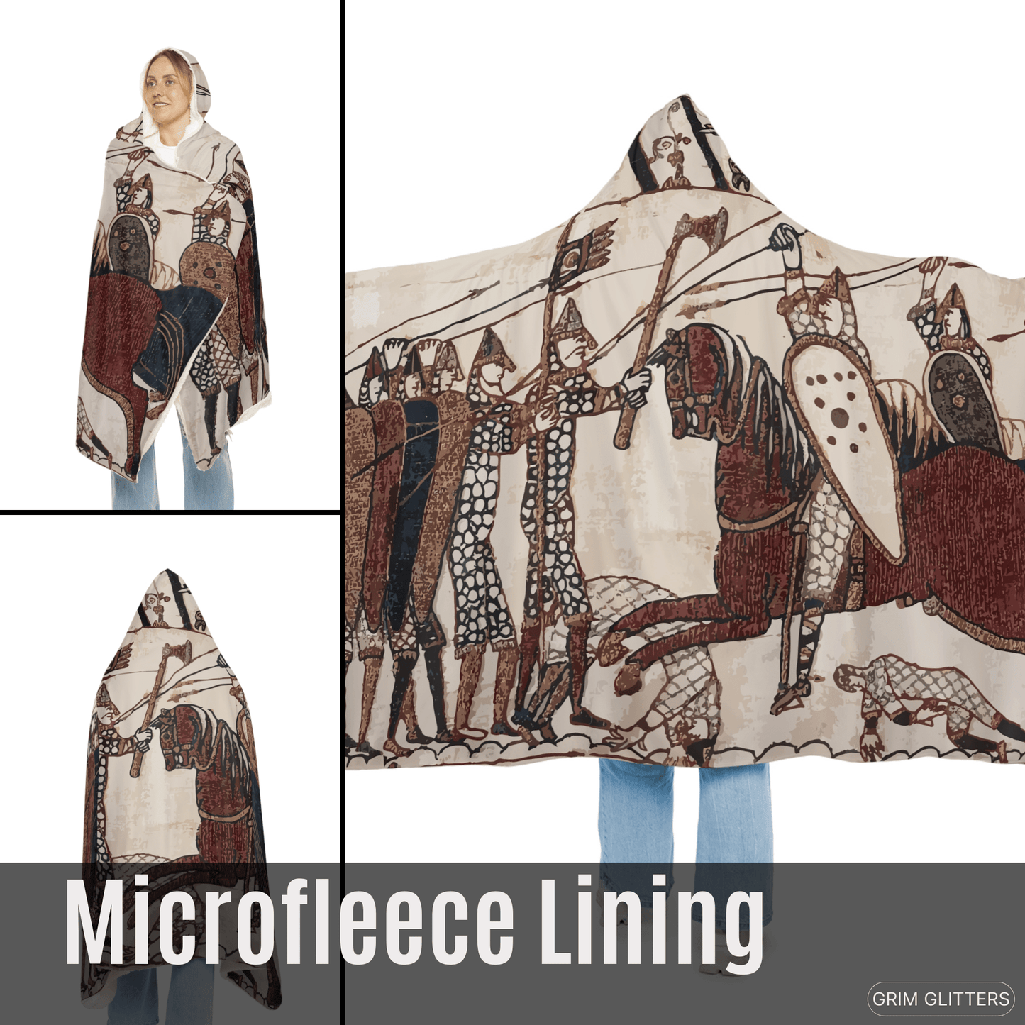 Wikkel jezelf in middeleeuwse pracht met onze Bayeux Tapestry Snuggle Cloak. Met een iconische scène uit het tapijt van Bayeux – "Norman Knights Charging Anglo-Saxon Warriors" – neemt deze mantel je mee naar het hart van de Slag om Hastings, waar de geschiedenis tot leven komt.