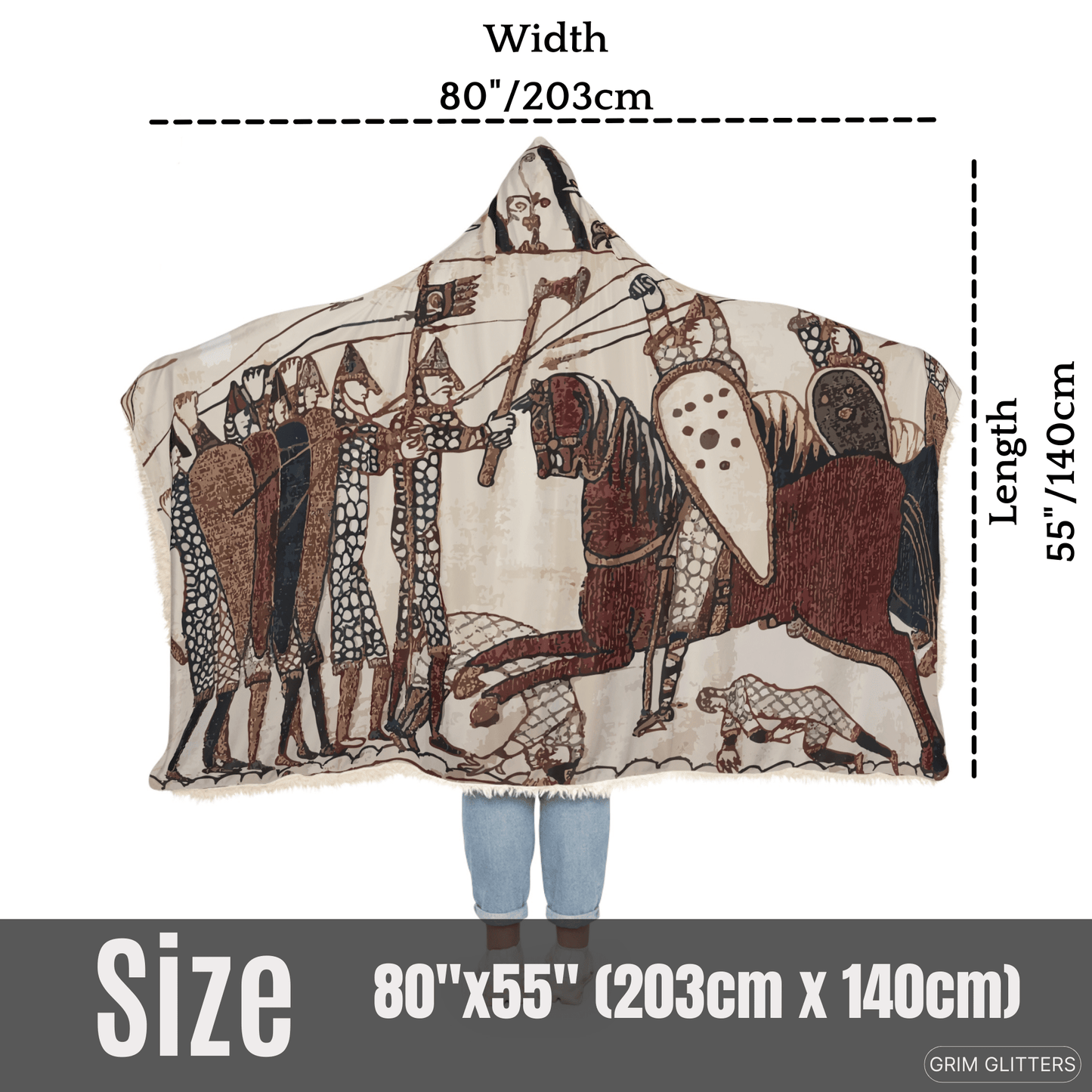 Stap in de pagina's van de geschiedenis met onze Bayeux Tapestry Snuggle Cloak en ervaar de spanning van de strijd uit de eerste hand. Of je nu een middeleeuwse kermis bijwoont of thuis aan het loungen bent, deze mantel zal zeker de aandacht trekken en een gesprek op gang brengen.