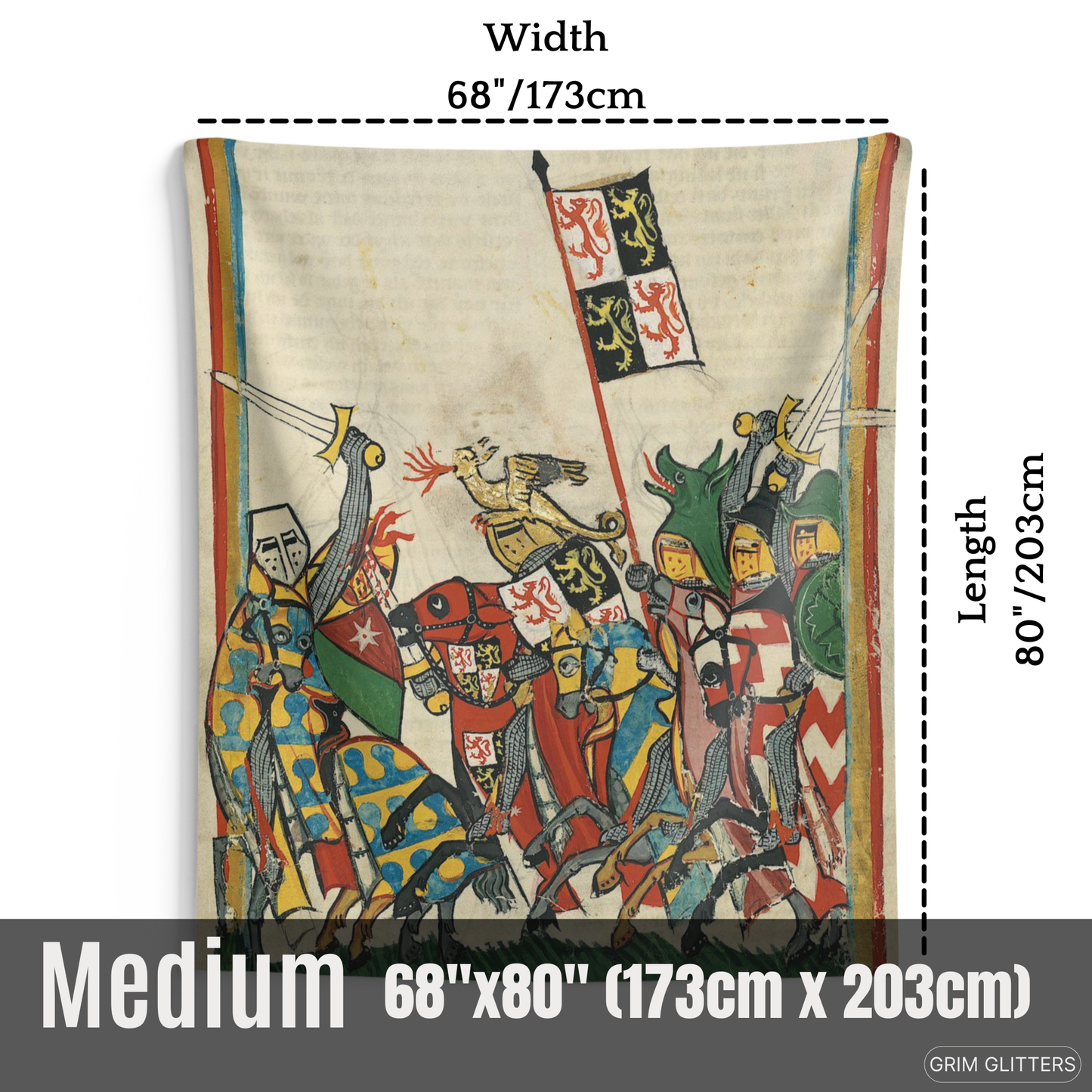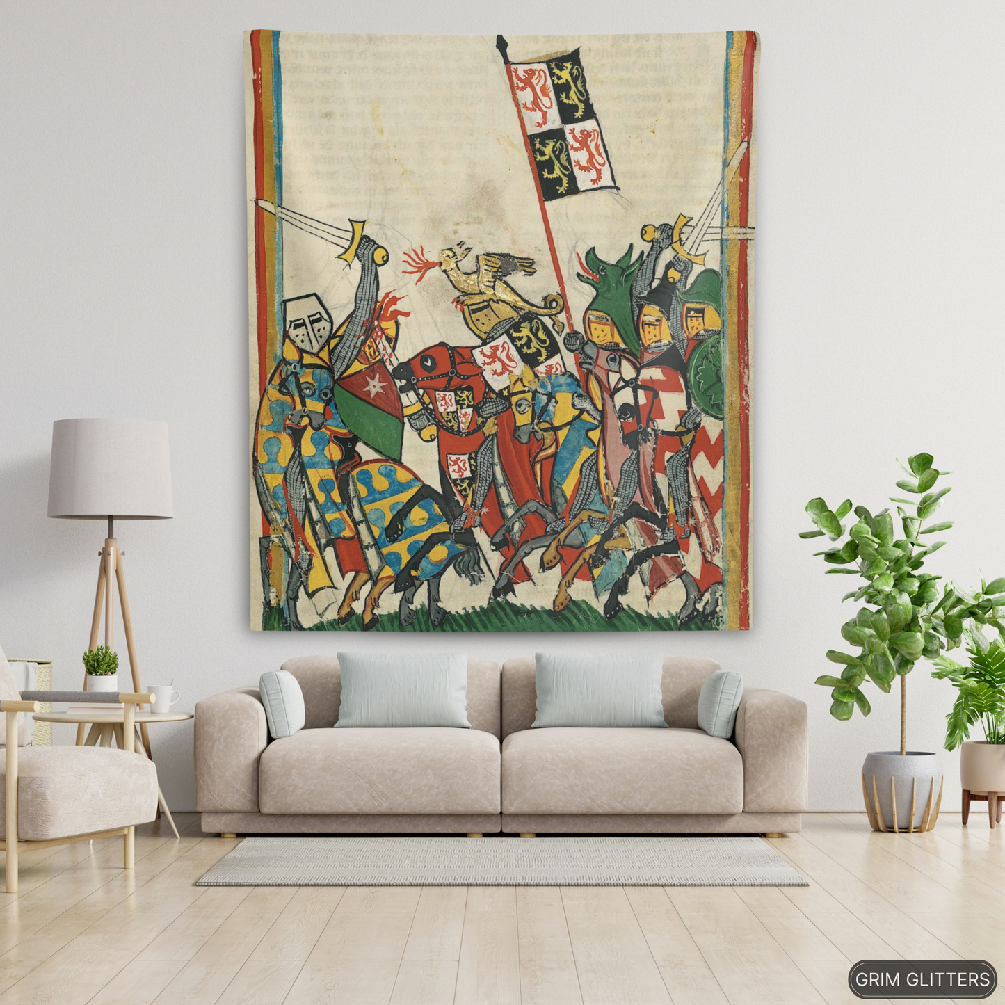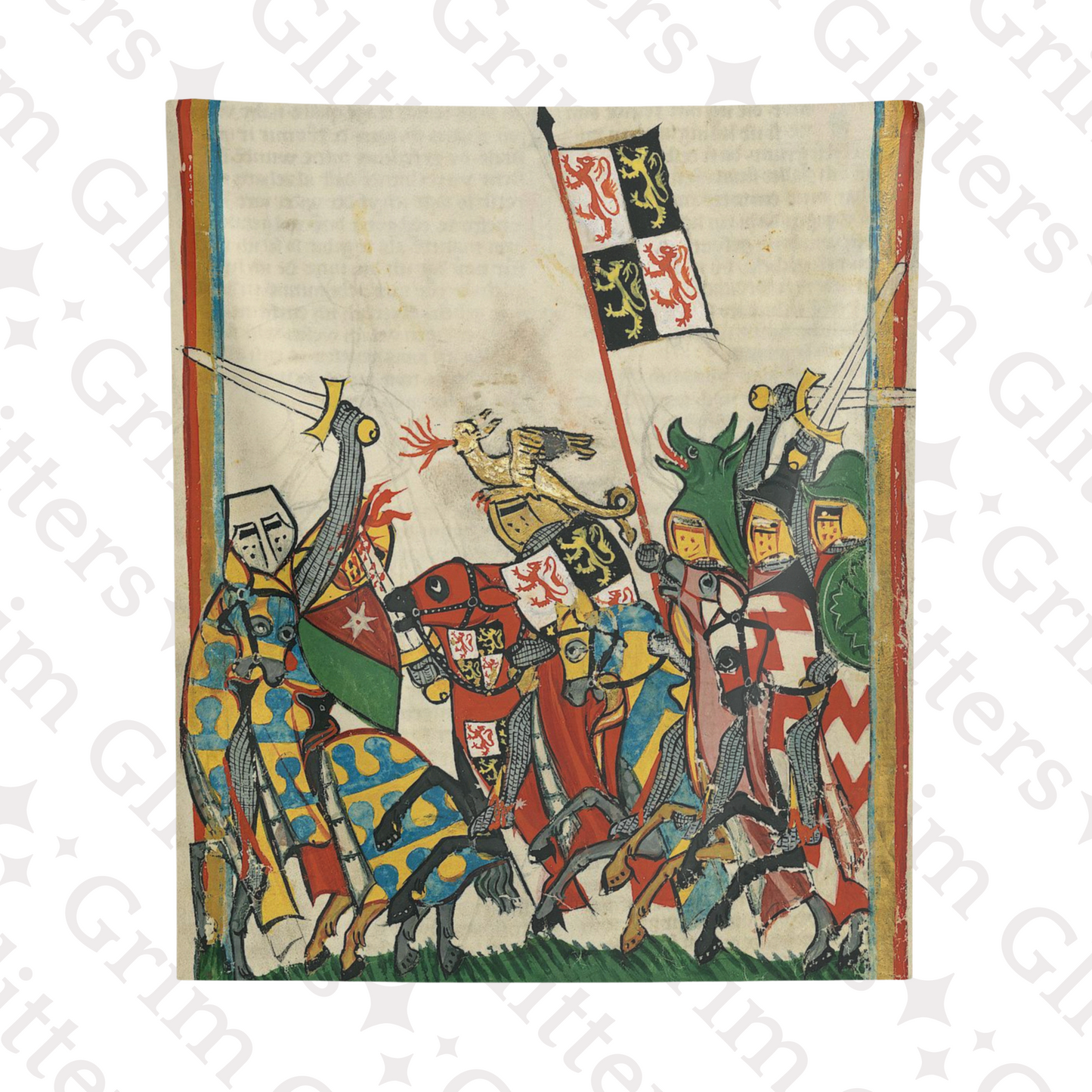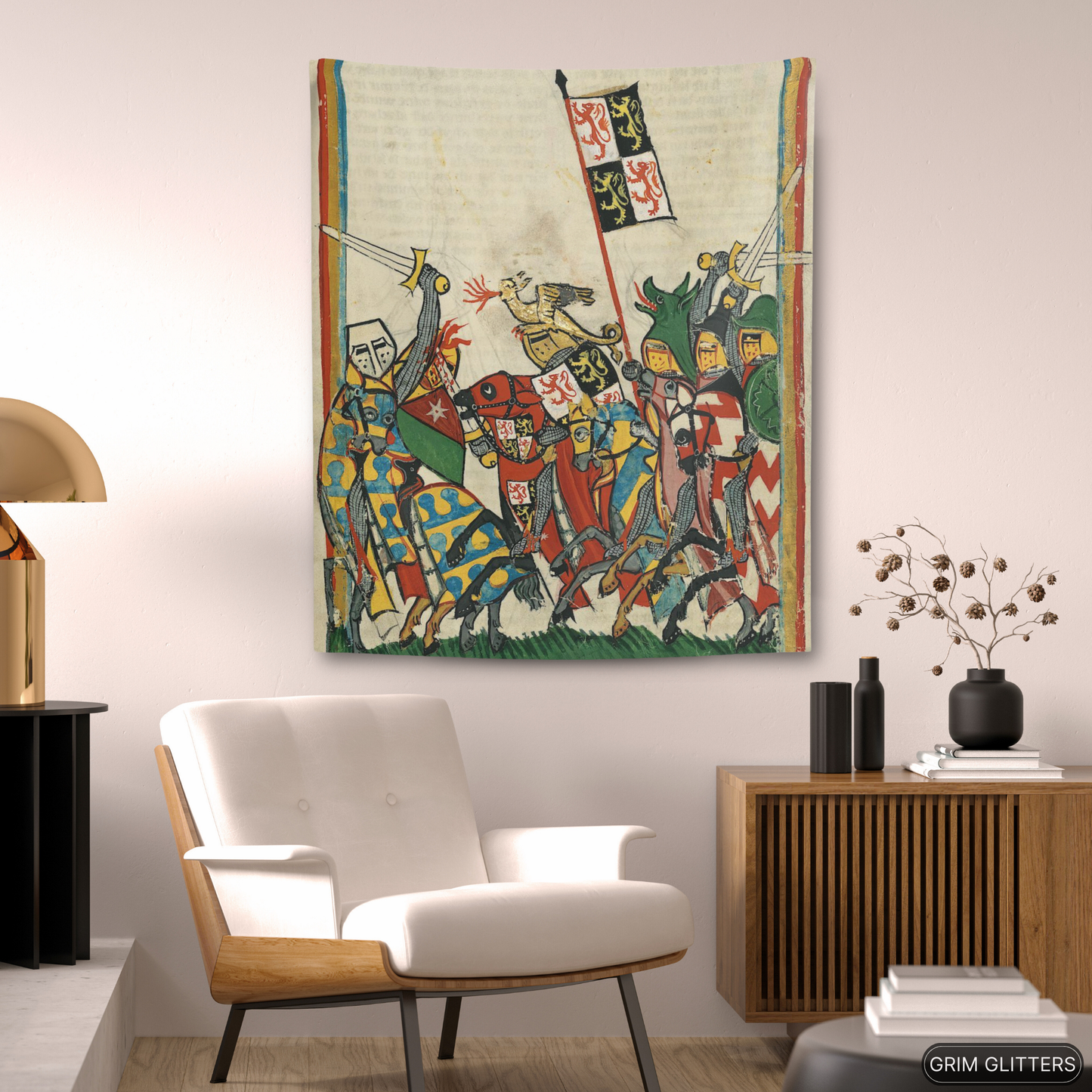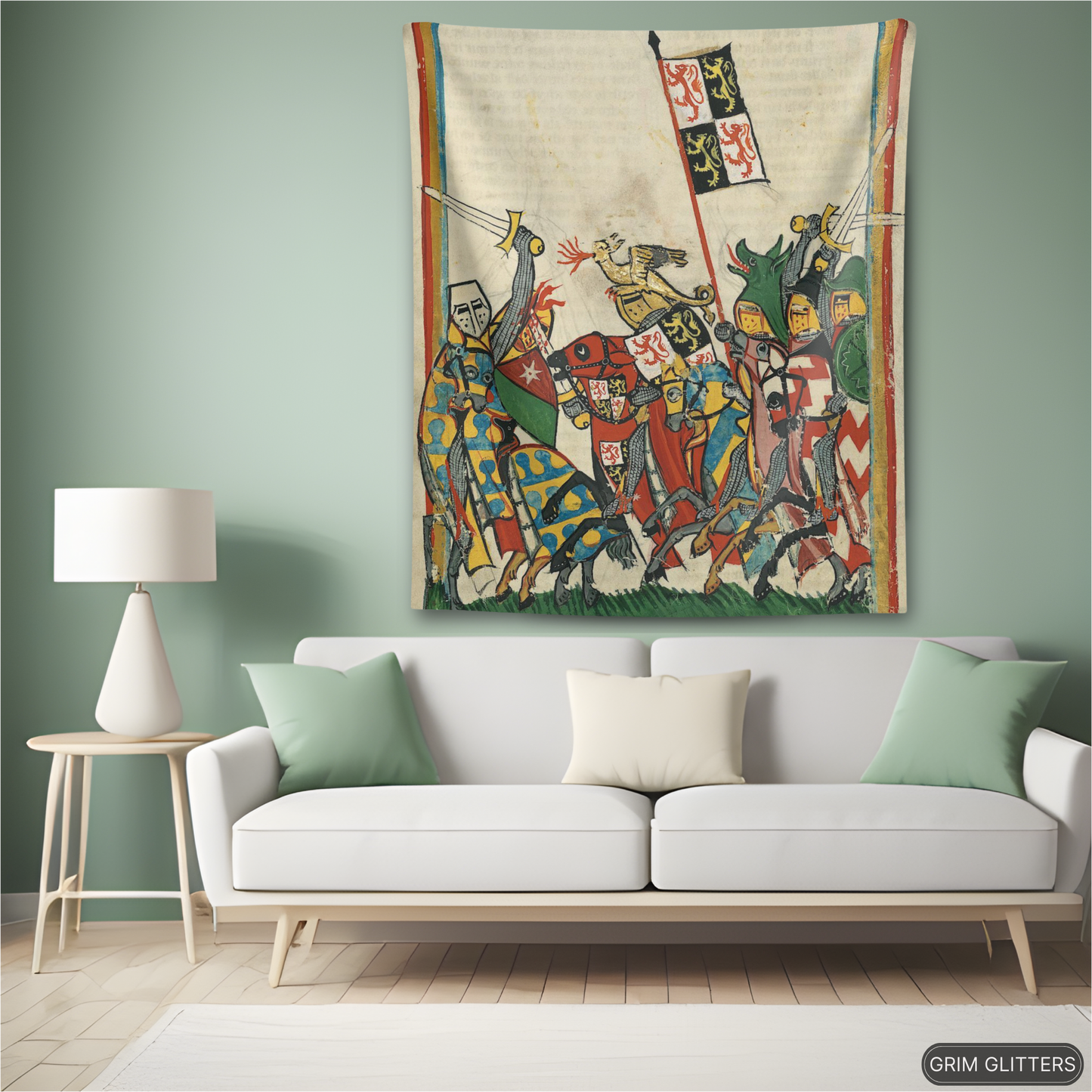 Invite the noble elegance of medieval German art into your space with our Duke Johann of Brabant Tapestry, inspired by the famed Codex Manesse. This tapestry illustrates Duke Johann of Brabant in a scene of knightly splendor, capturing the chivalric traditions of the 14th century. As part of the historic Codex Manesse, this piece celebrates the romance, bravery, and artistry of medieval nobility—ideal for history lovers and those captivated by tales of honor and grandeur.