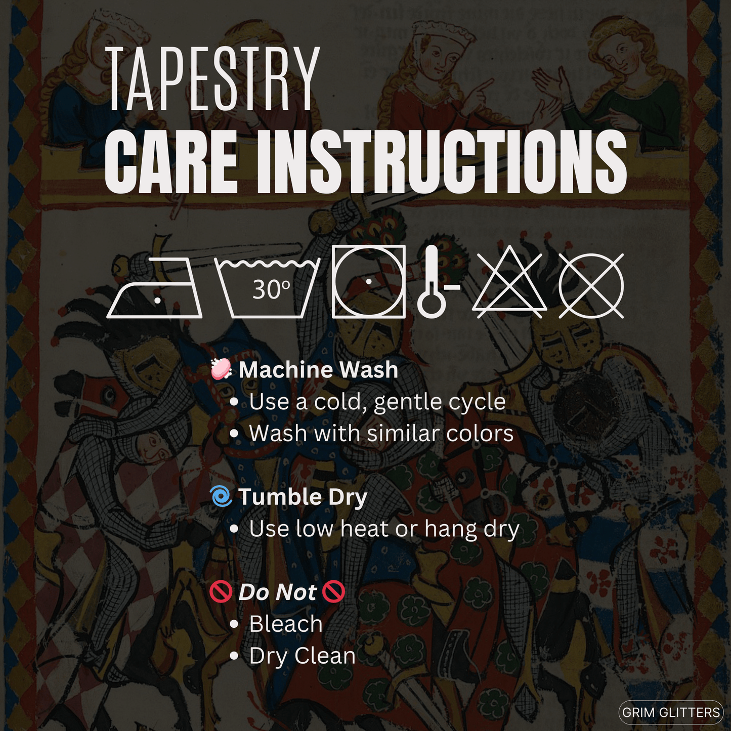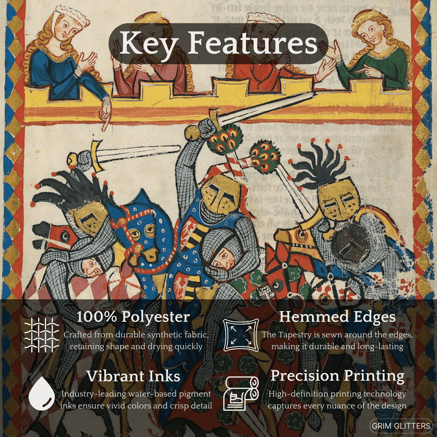 Made from high-quality polyester, this tapestry ensures vibrant colors and sharp details, faithfully capturing the intricate design of the original manuscript. The hemmed edges add a polished finish, guaranteeing its durability as a treasured piece of decor.