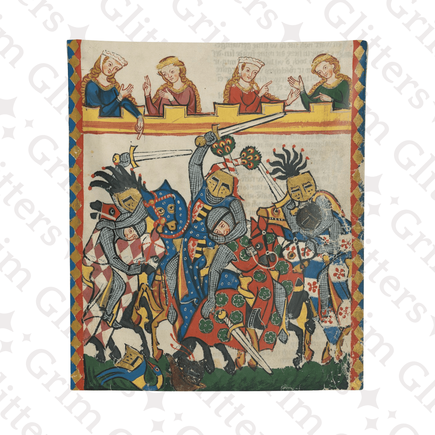 Step into the world of medieval nobility with the "Duke of Anhalt" tapestry, inspired by the illustrious Codex Manesse. This detailed artwork, originally created between 1305 and 1340 in Zürich, features the Duke of Anhalt, a noble figure from the medieval German court. The Codex Manesse is famed for its vivid illustrations and collection of Middle High German love songs, offering a window into the cultural and artistic heritage of the Holy Roman Empire. This tapestry is an ideal choice for history lovers and art enthusiasts seeking to enrich their home with a touch of historical elegance.