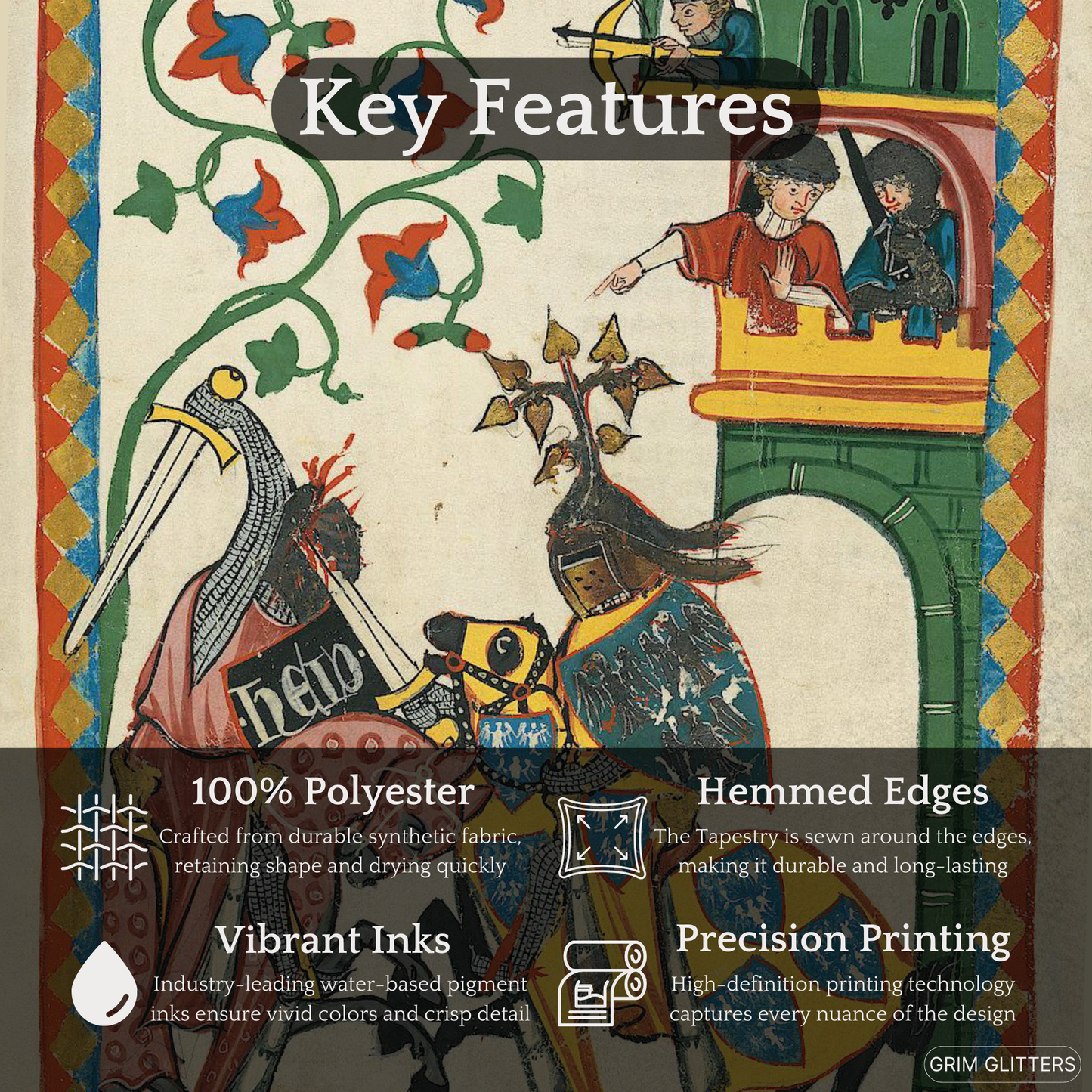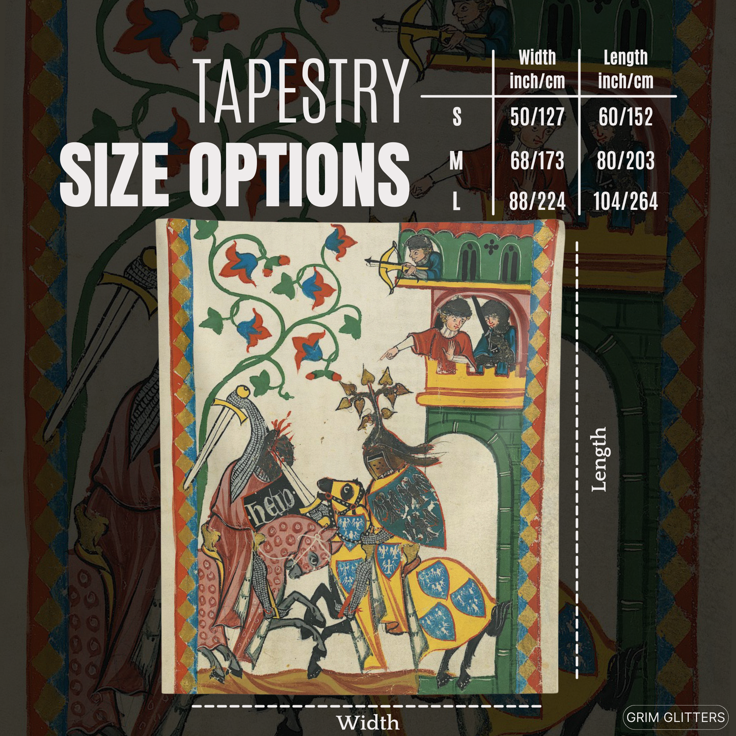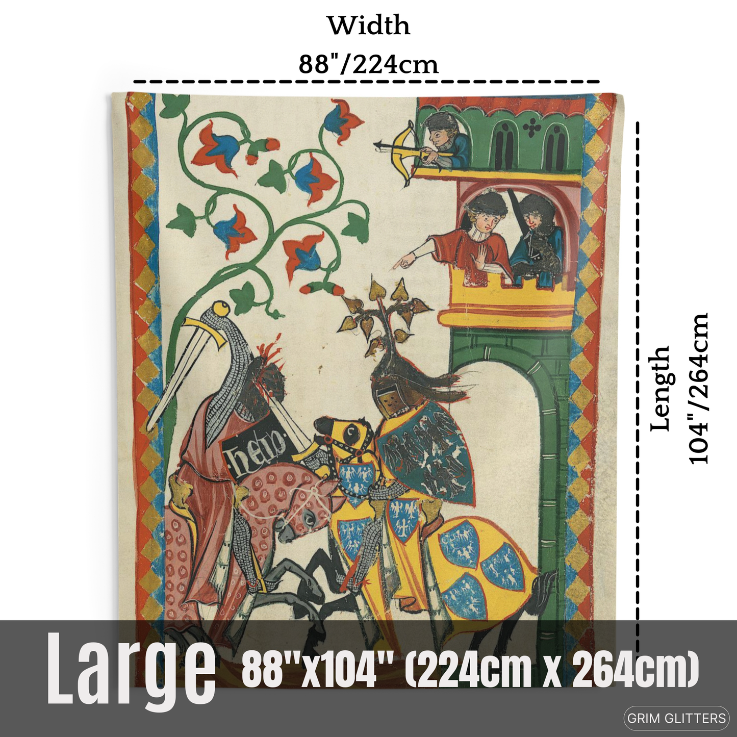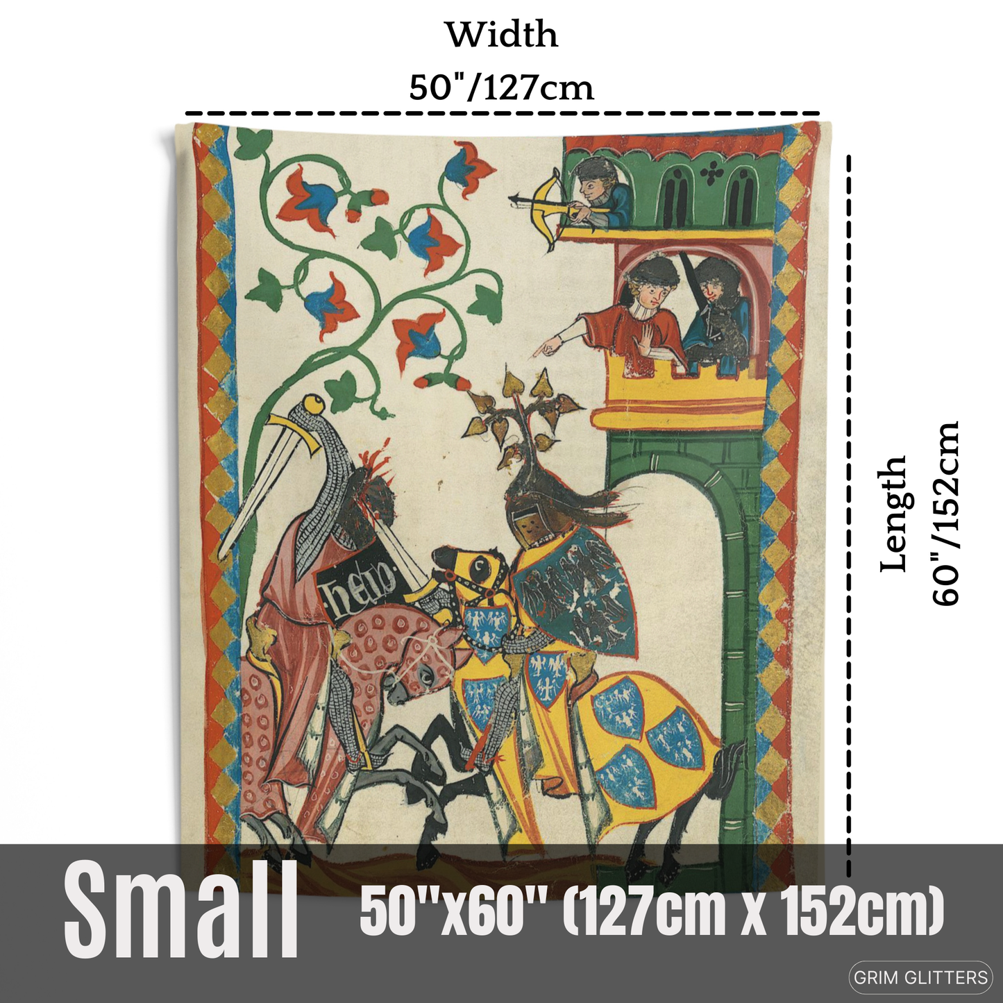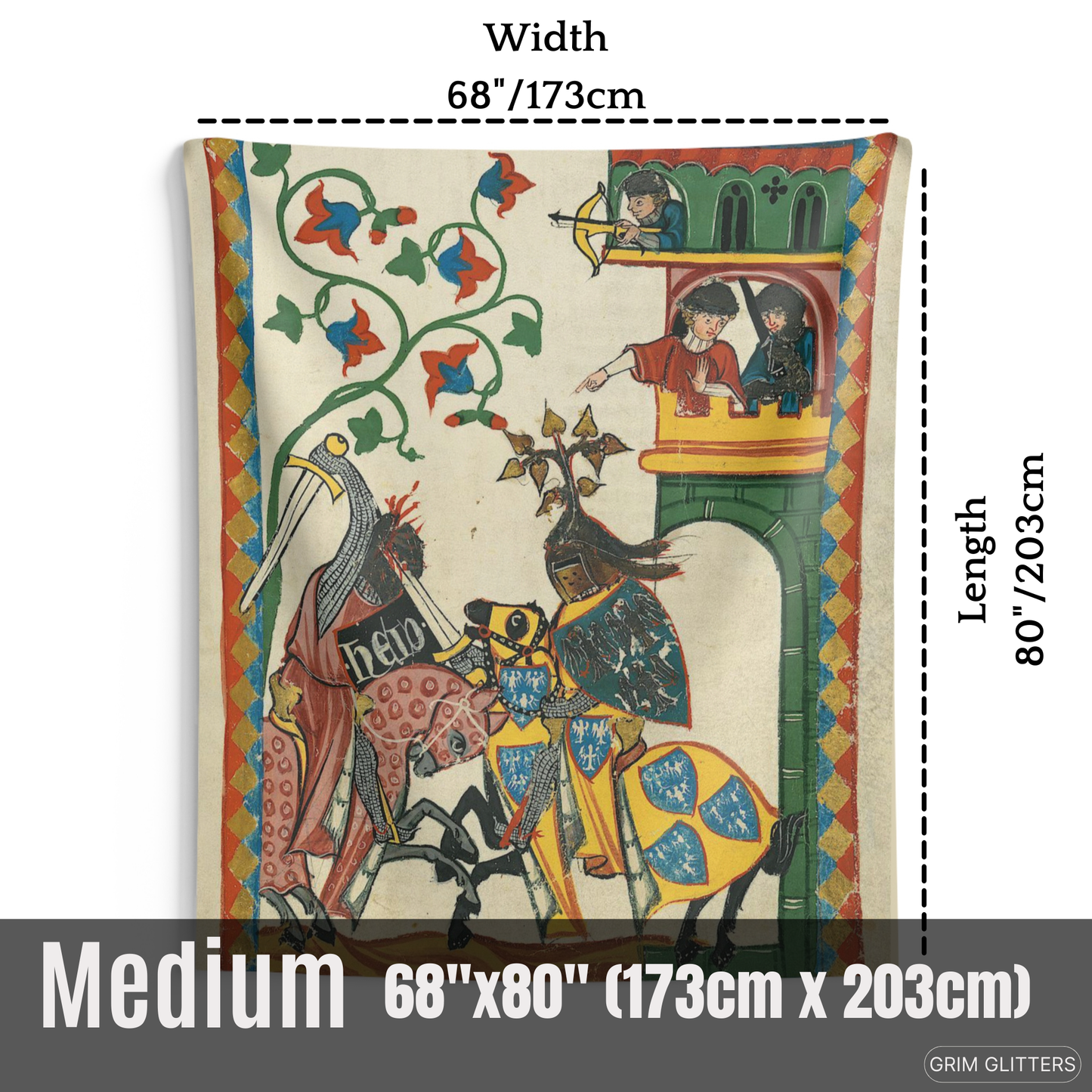 As part of the Codex Manesse collection, this tapestry is more than decor—it’s a piece of history. The manuscript, celebrated for its vivid depictions of German medieval life, is a testament to the chivalric ideals of the era, perfect for collectors, history lovers, and admirers of ancient art.