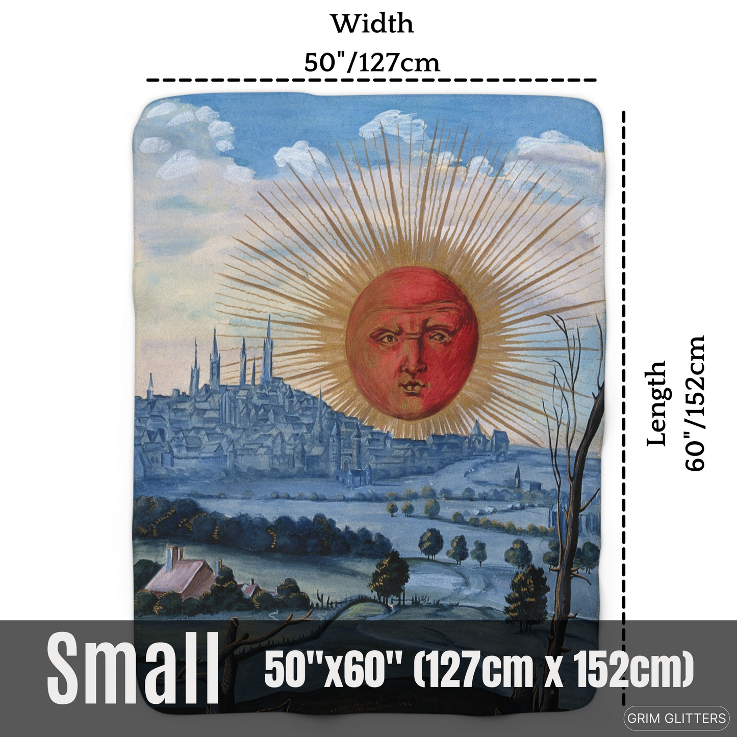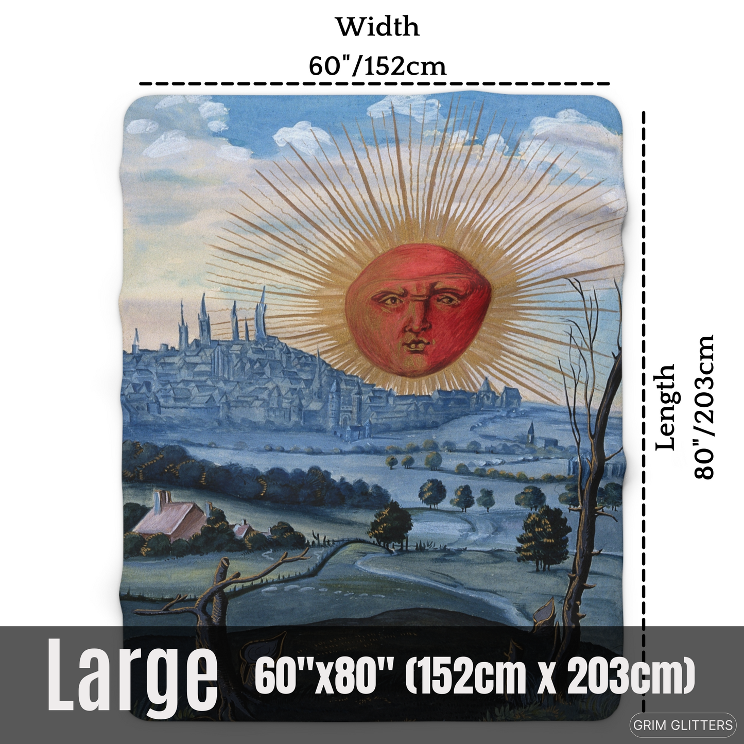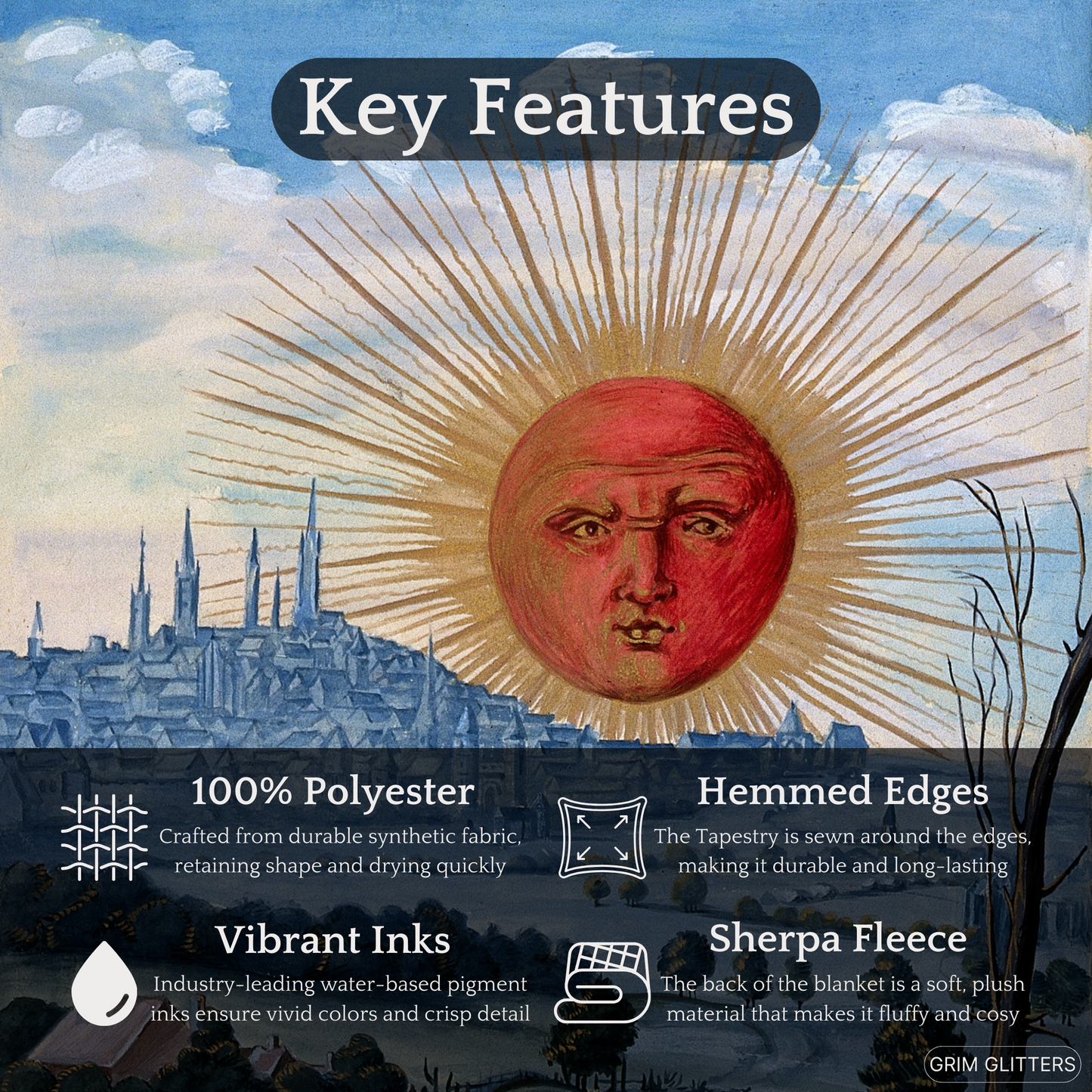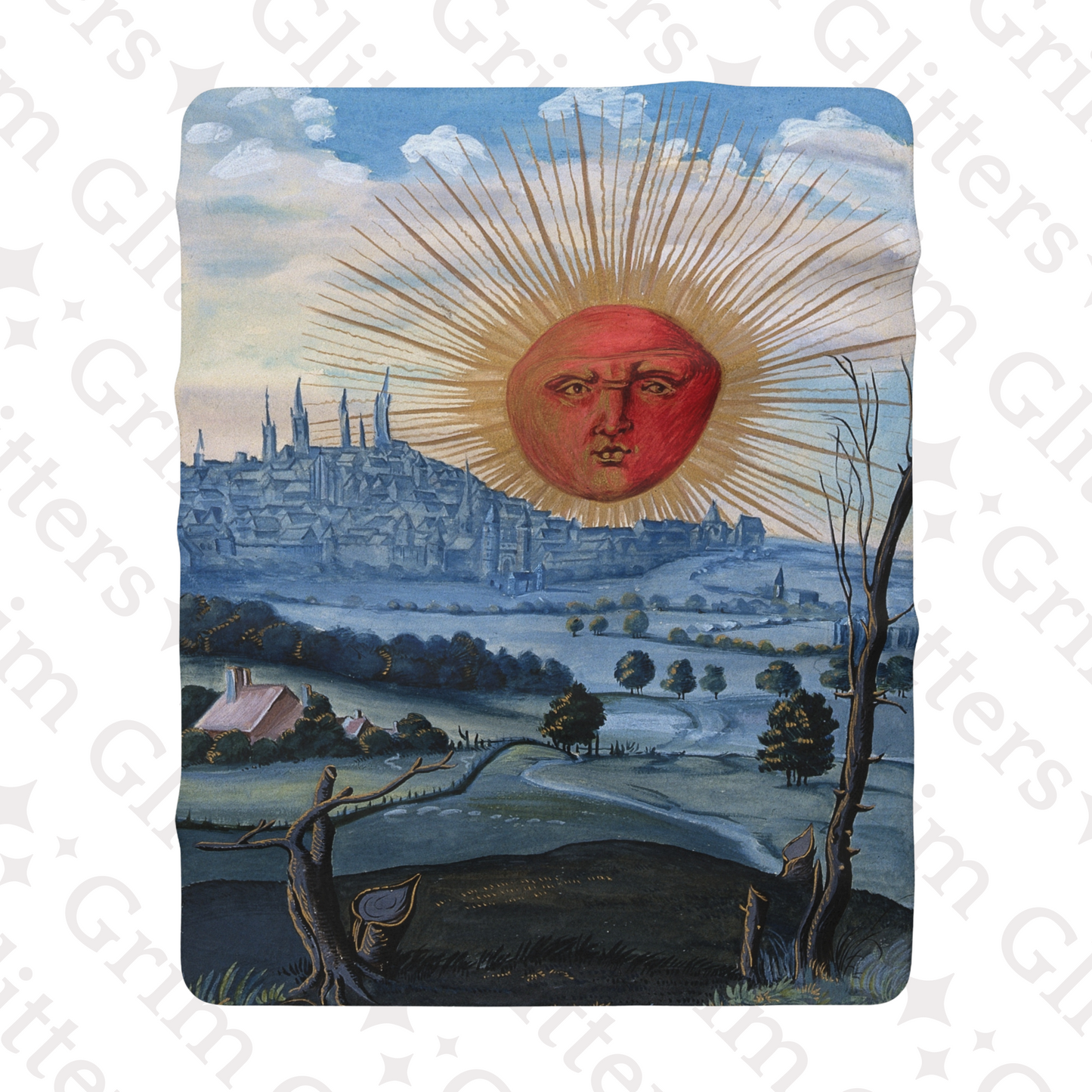 Stap in de mystieke wereld van de middeleeuwse kunst met onze Splendor Solis Sherpa Fleece Deken, met het boeiende tafereel van een opkomende rode zon. Geïnspireerd door de iconische illustratie van Splendor Solis, voegt deze deken een vleugje betovering toe aan elke ruimte.