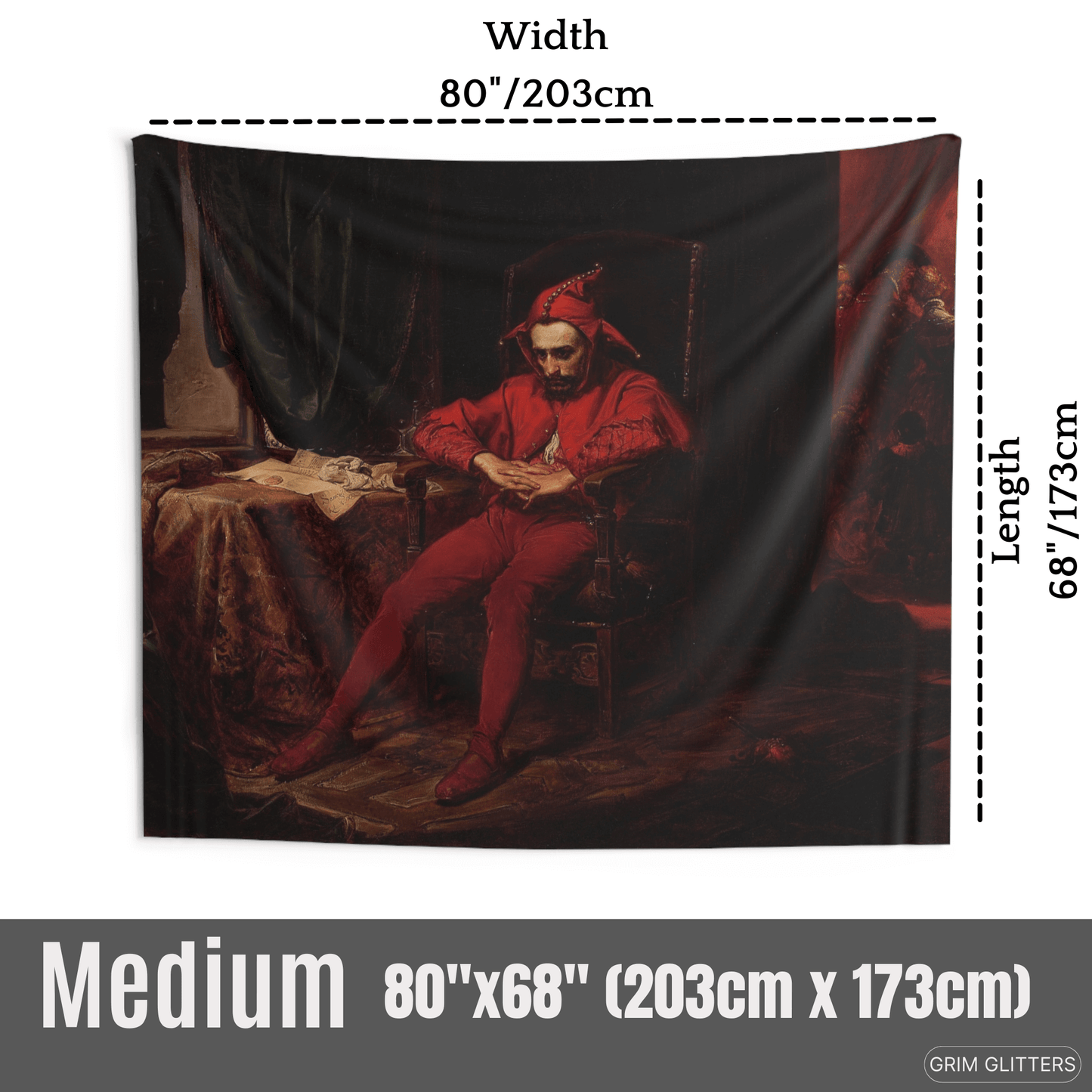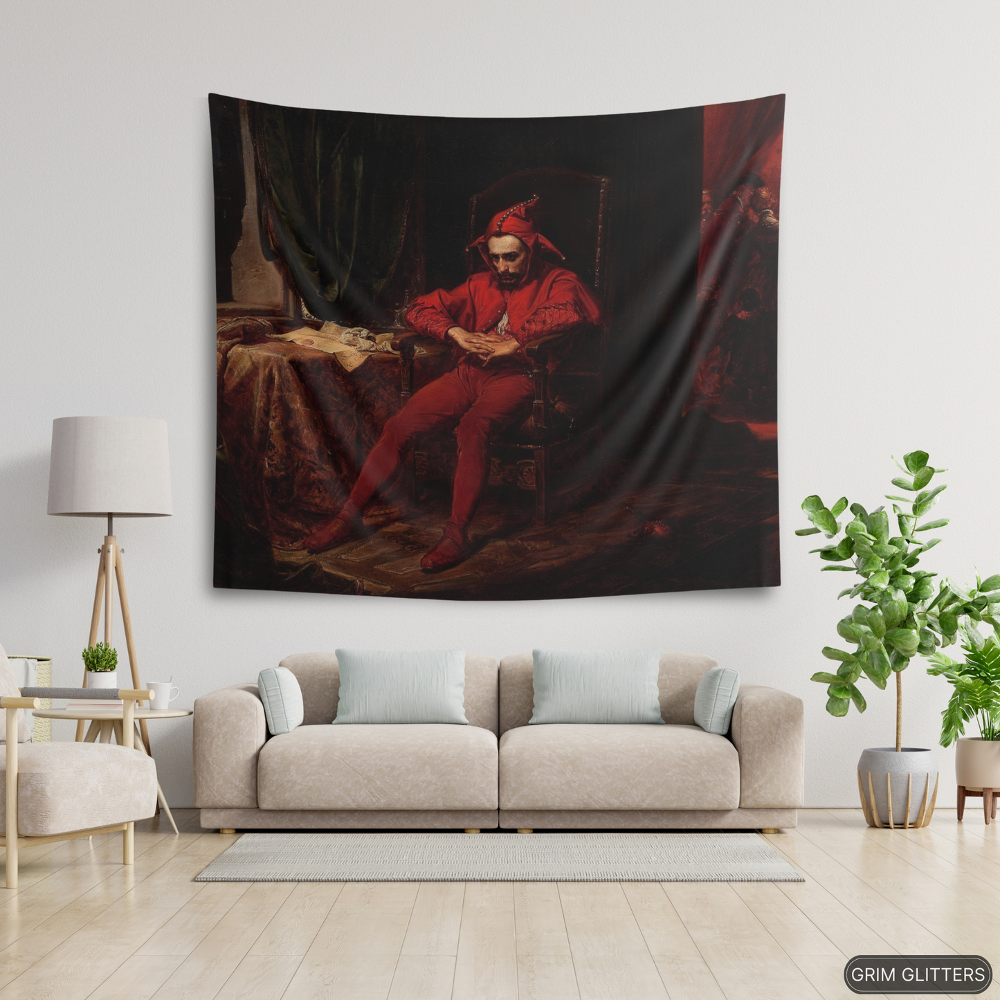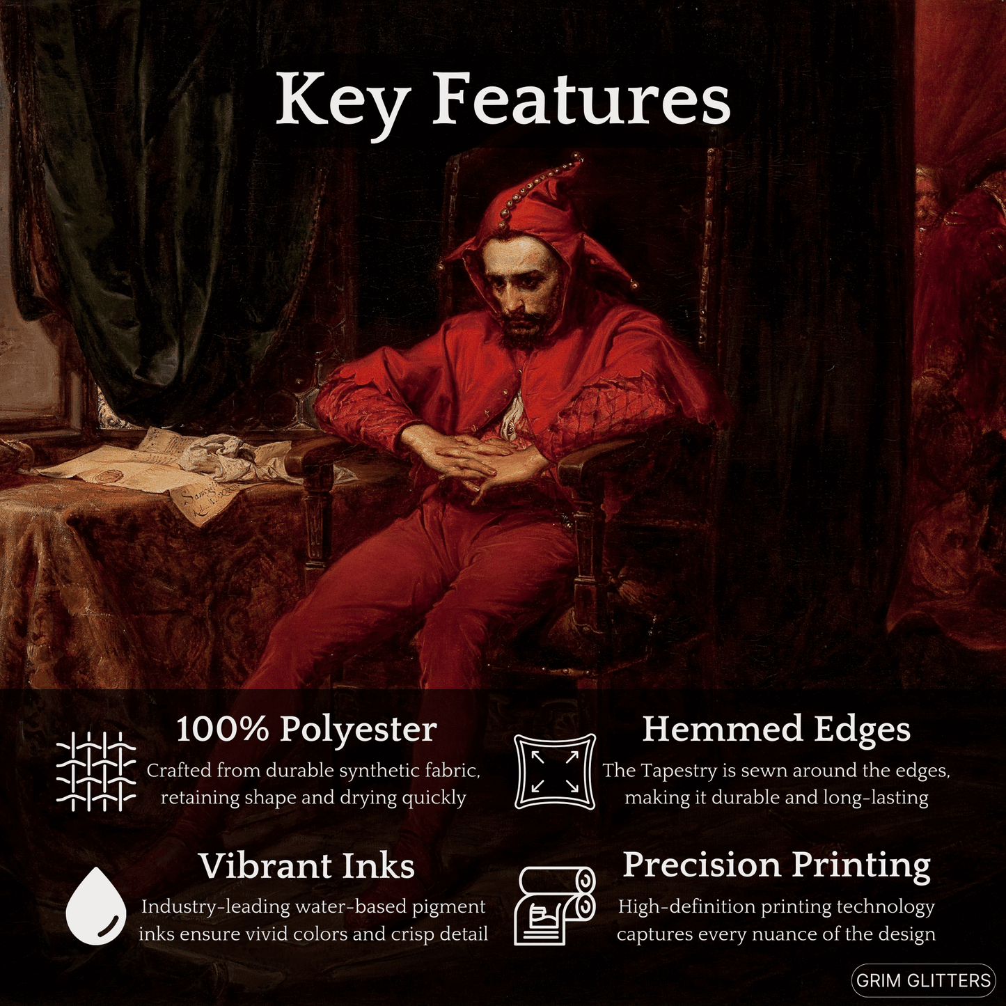 Vier het rijke culturele erfgoed van Polen met ons Stanczyk-tapijt, geïnspireerd op het iconische schilderij van Jan Matejko. Dit prachtige wandtapijt legt het aangrijpende moment vast van Stanczyk, de beroemde Poolse nar, die nadenkt over het lot van zijn natie. Dit wandtapijt is perfect om een vleugje historische diepte en culturele betekenis aan uw interieur toe te voegen en eert een geliefd figuur uit de Poolse geschiedenis.