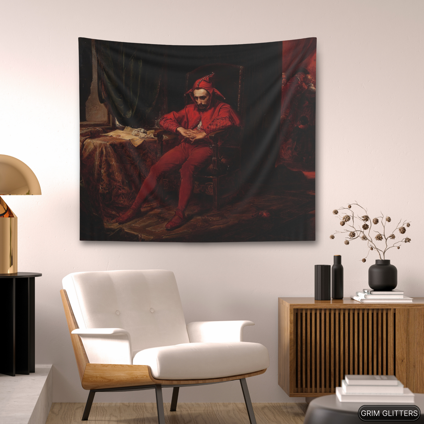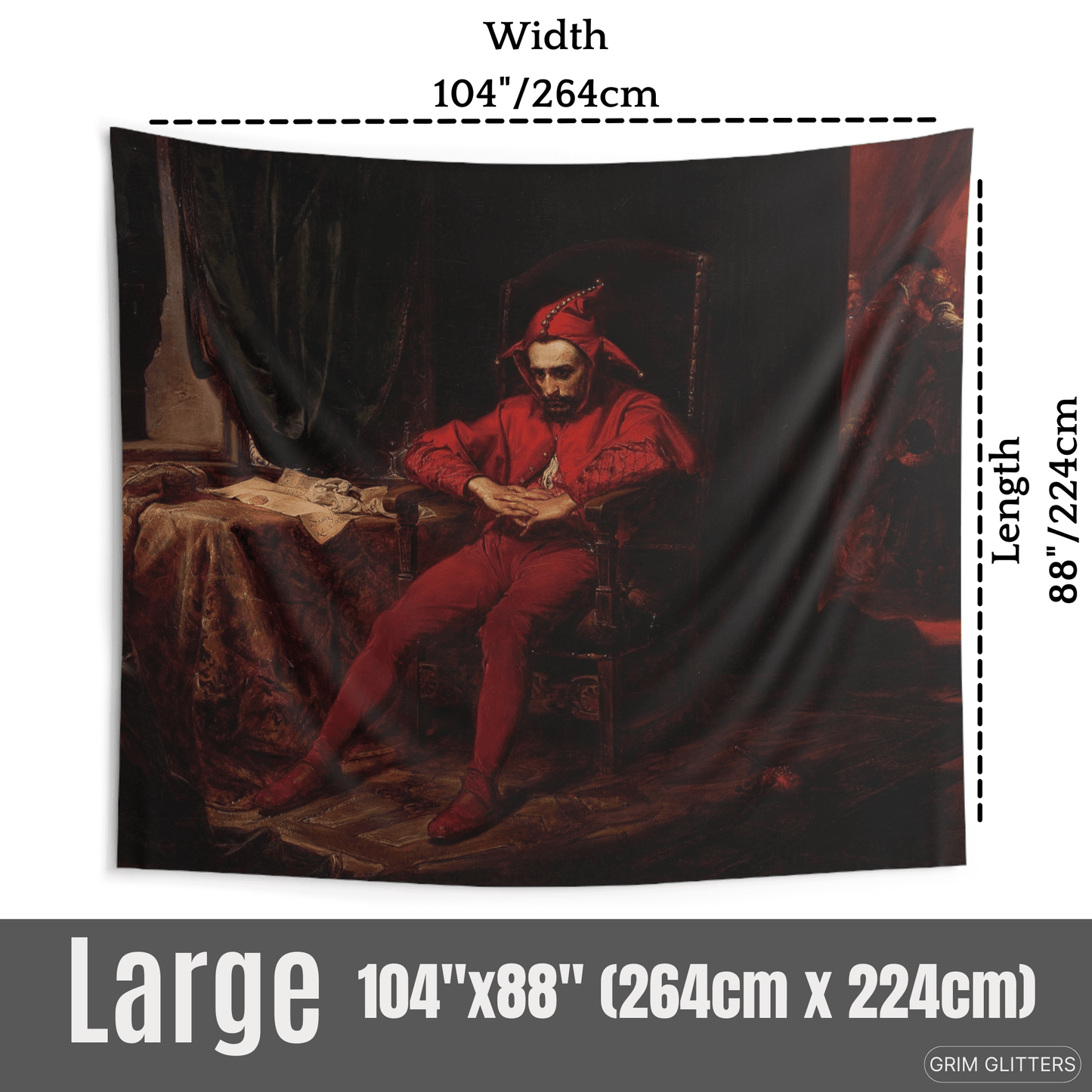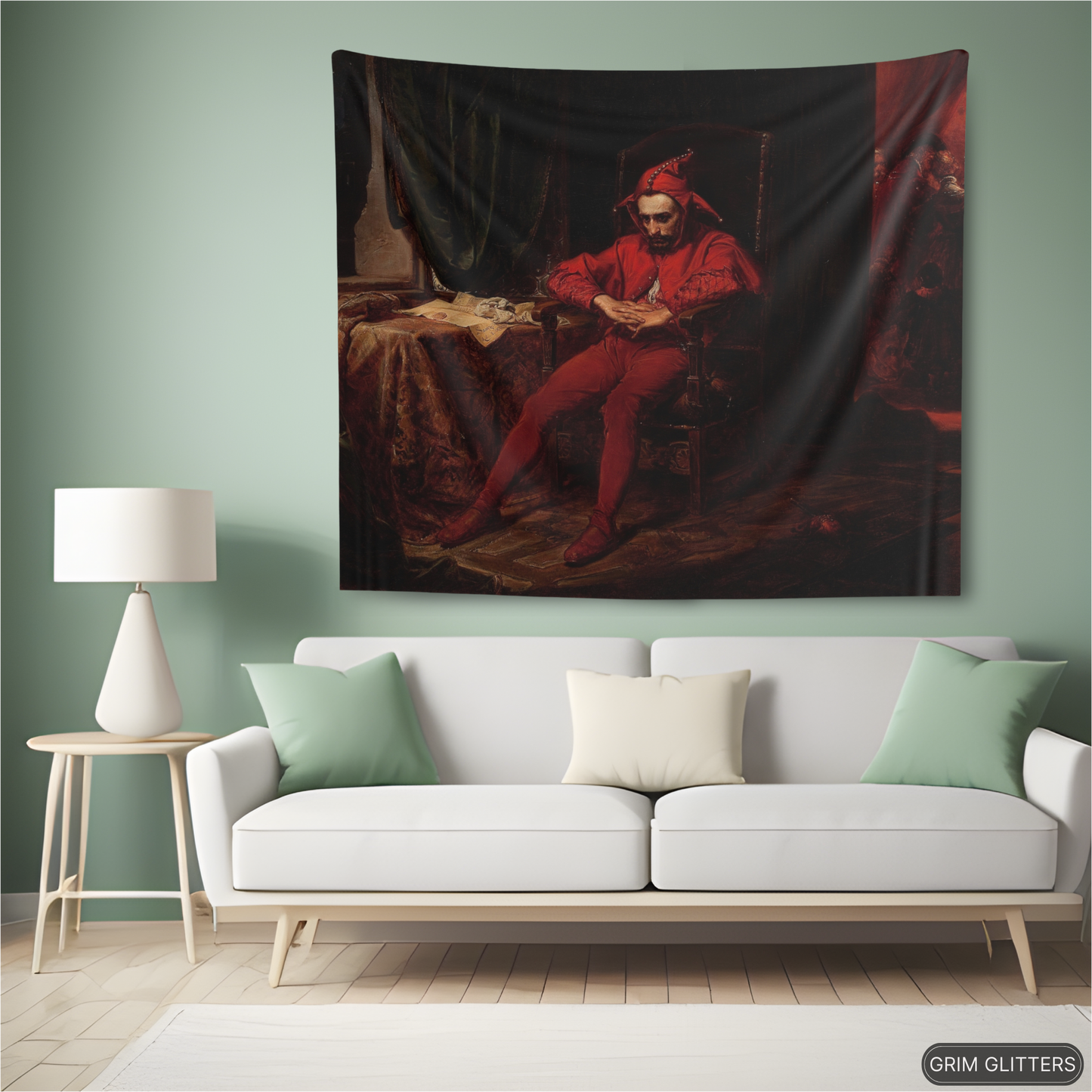 Vier het rijke culturele erfgoed van Polen met ons Stanczyk-tapijt, geïnspireerd op het iconische schilderij van Jan Matejko. Dit prachtige wandtapijt legt het aangrijpende moment vast van Stanczyk, de beroemde Poolse nar, die nadenkt over het lot van zijn natie. Dit wandtapijt is perfect om een vleugje historische diepte en culturele betekenis aan uw interieur toe te voegen en eert een geliefd figuur uit de Poolse geschiedenis.