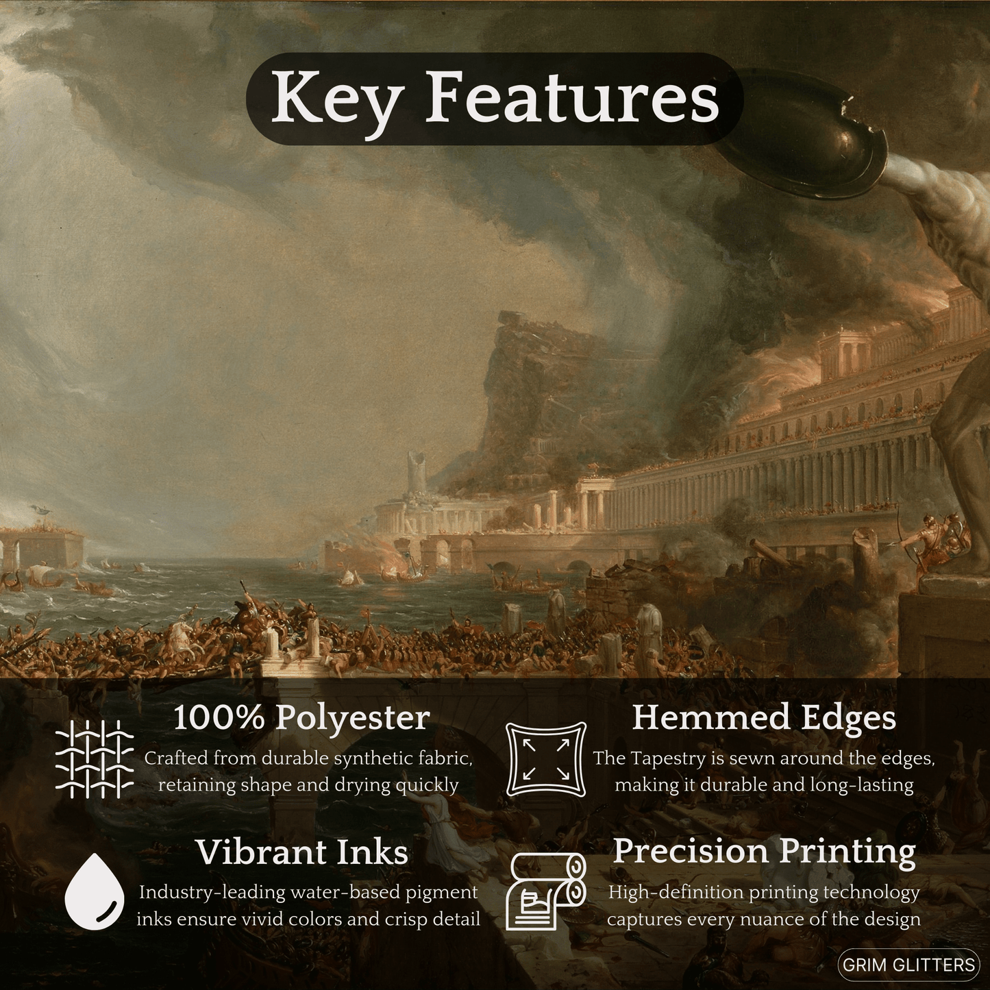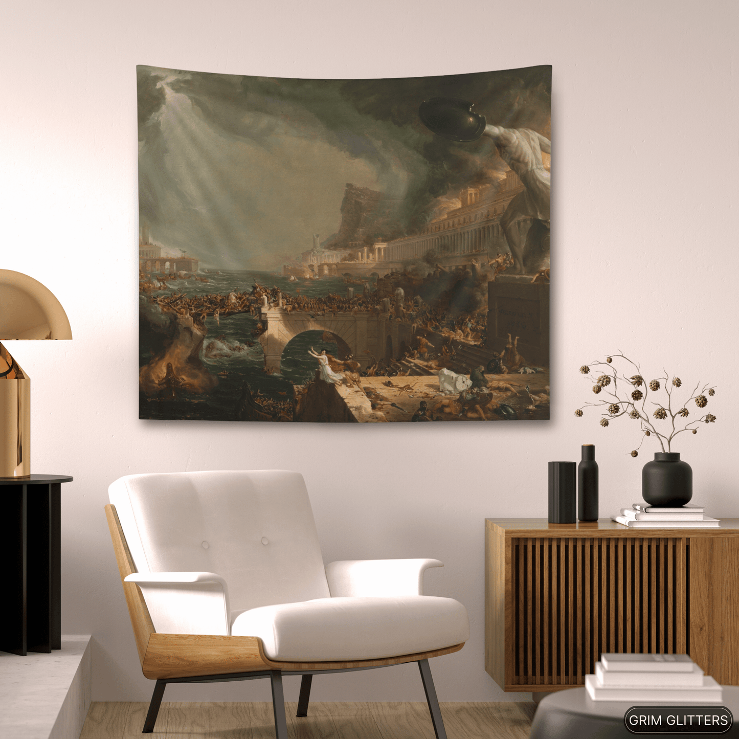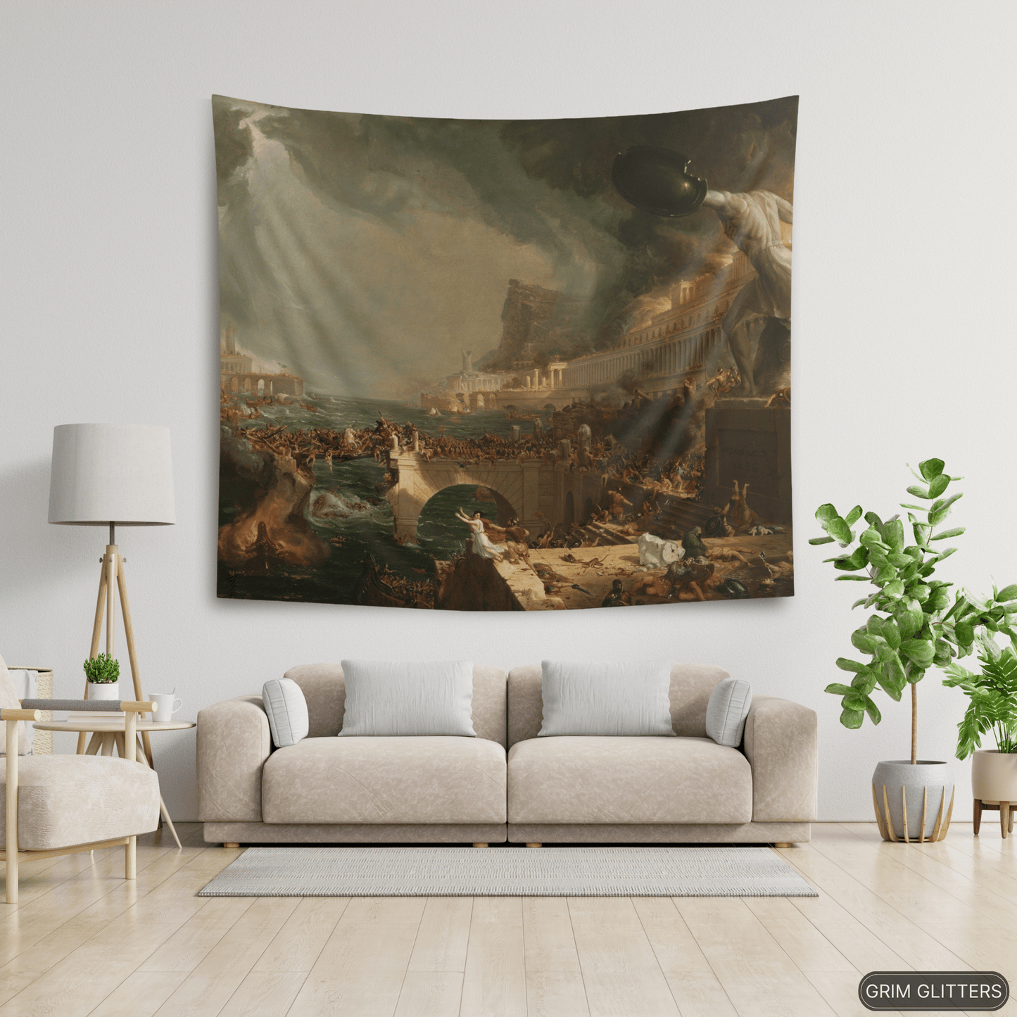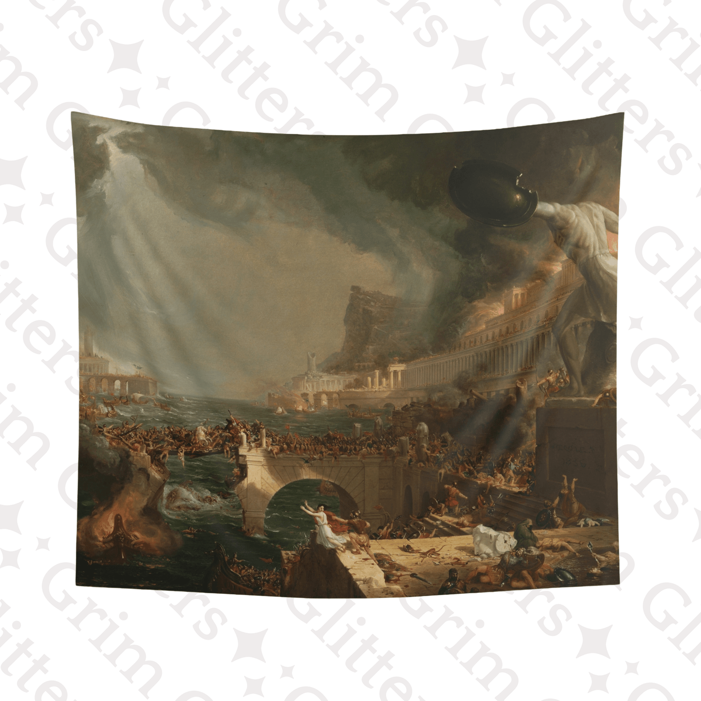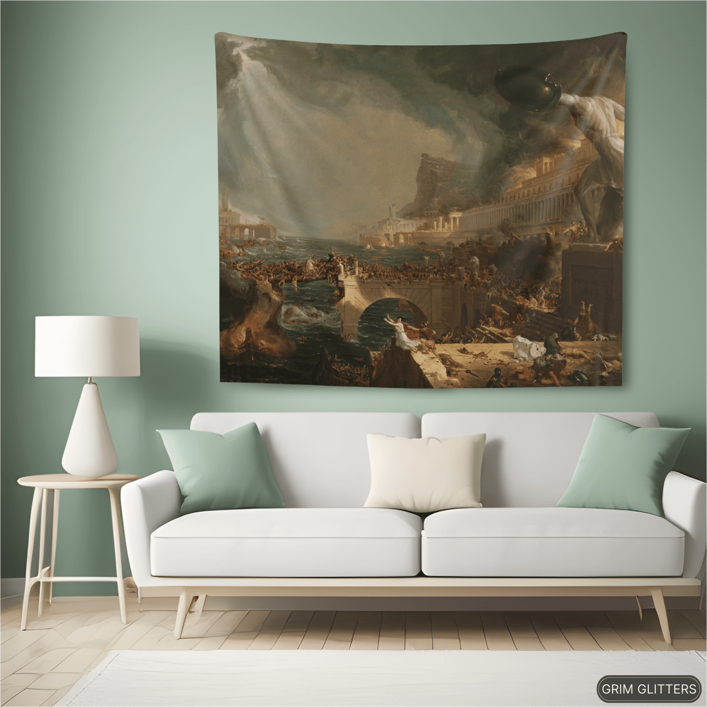 Add a profound historical and artistic statement to your decor with "The Course of Empire: Destruction" tapestry, a timeless piece that speaks to the fragility of power and the inevitable cycles of history.