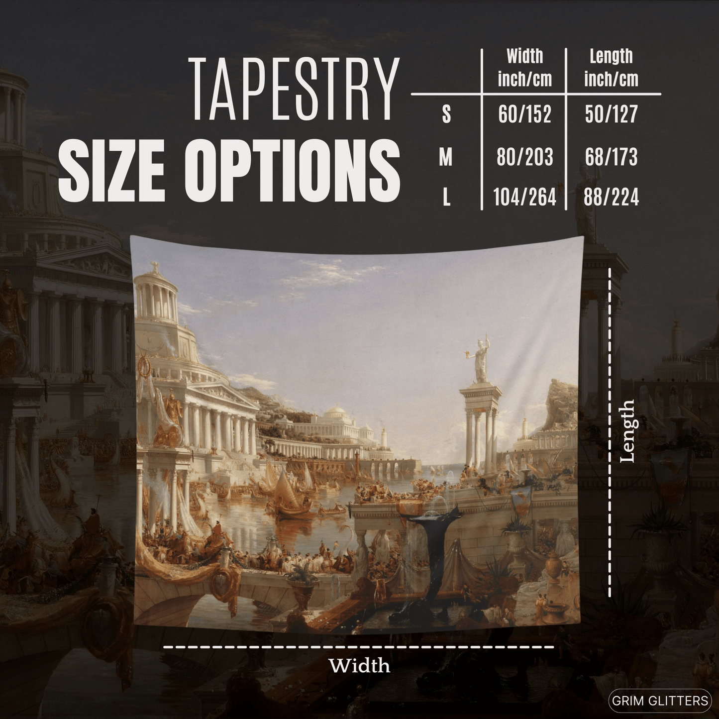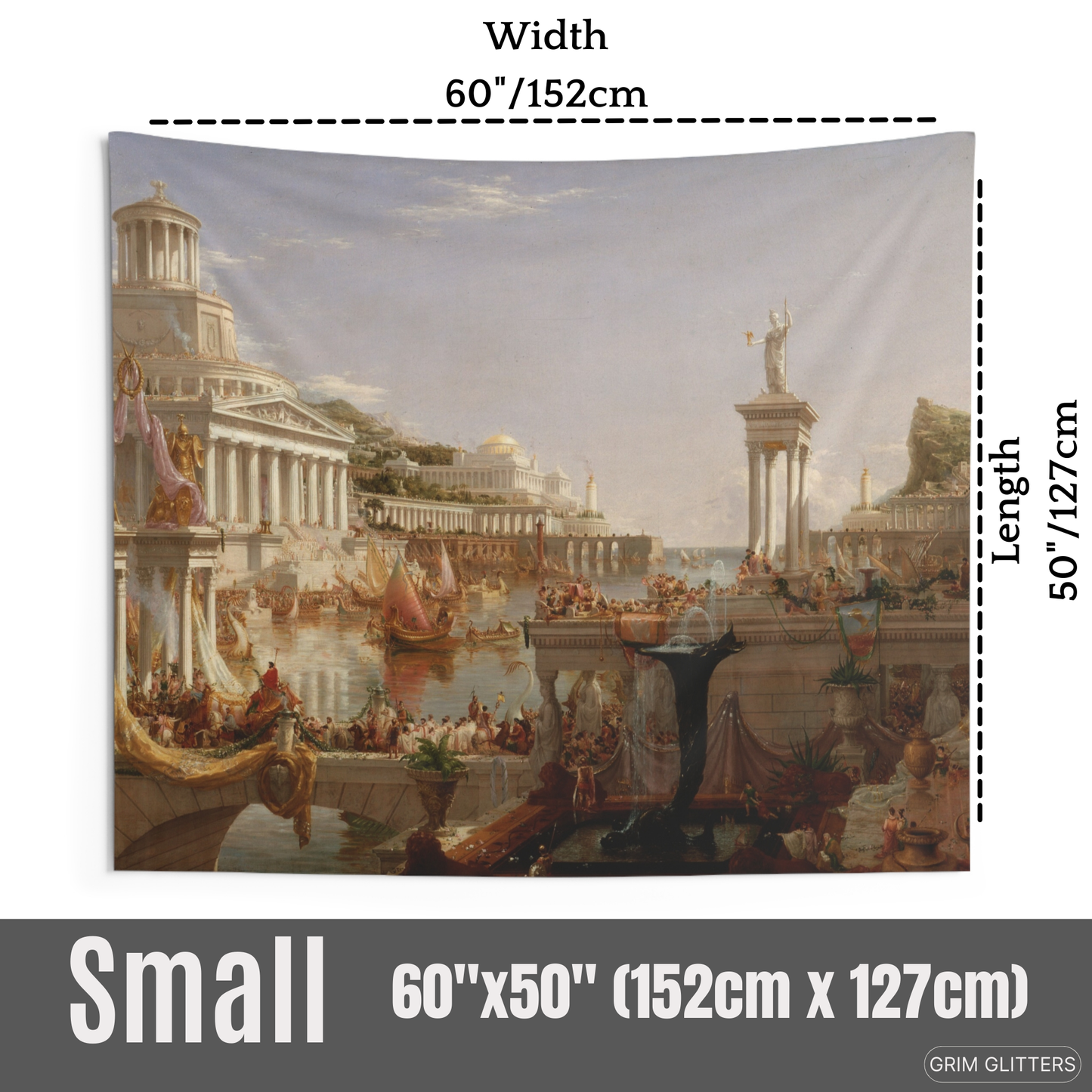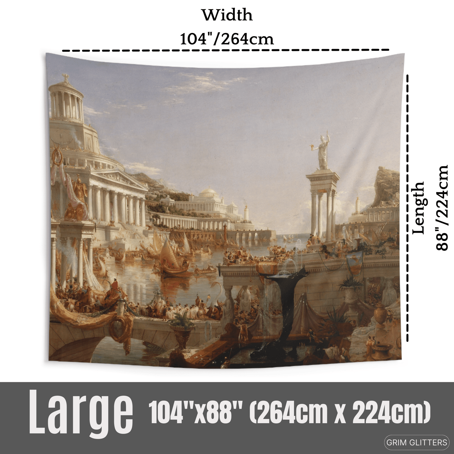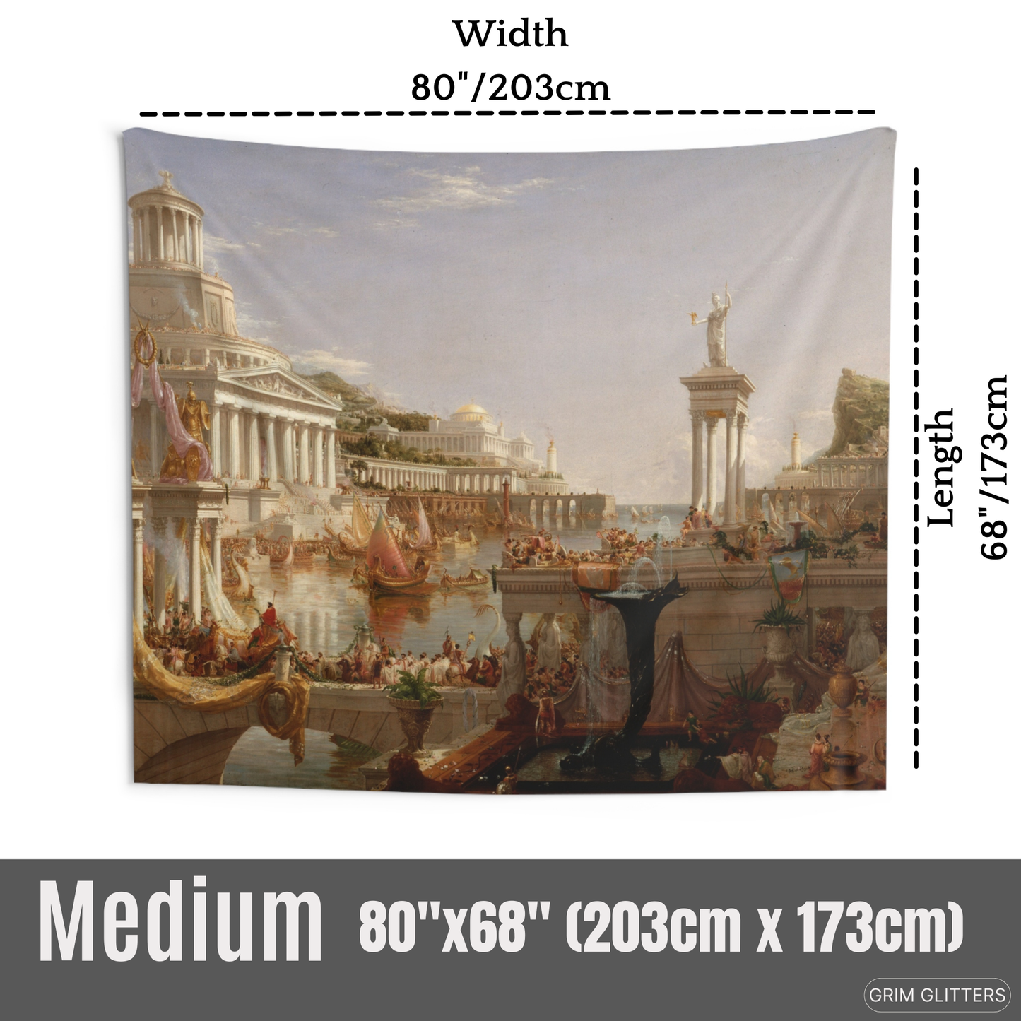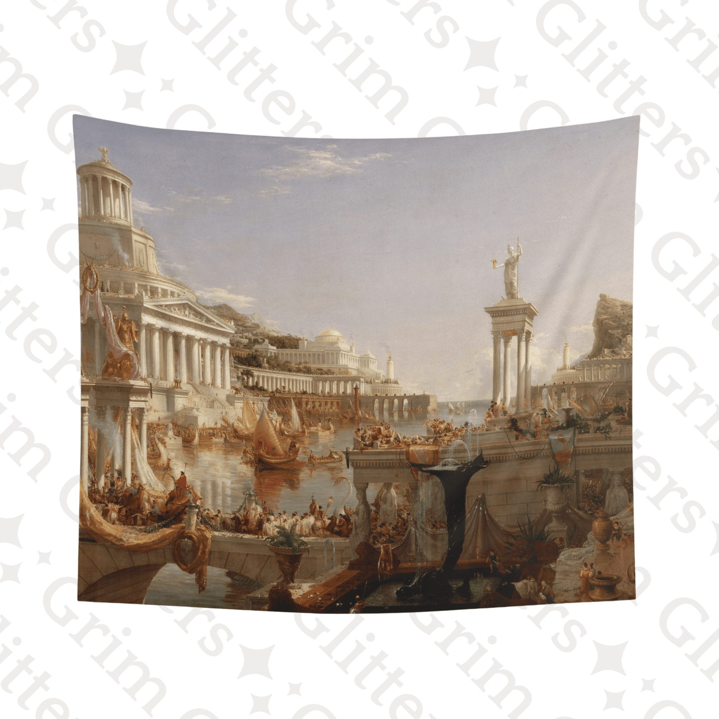 Transform your living space with the grandeur of Thomas Cole's masterpiece, "The Course of Empire: The Consummation of Empire." This stunning tapestry captures the apex of civilization in Cole's epic series, showcasing a vibrant and bustling empire at the height of its power. Perfect for lovers of classical art and Romanticism, this tapestry adds a touch of historical grandeur and artistic sophistication to any room.