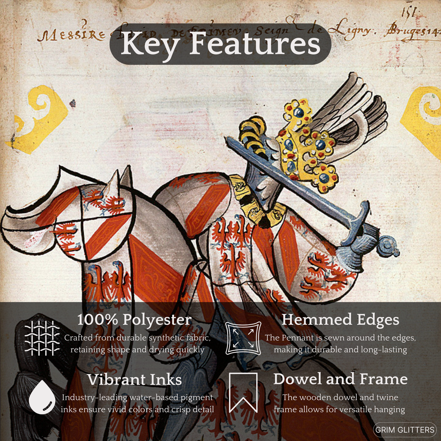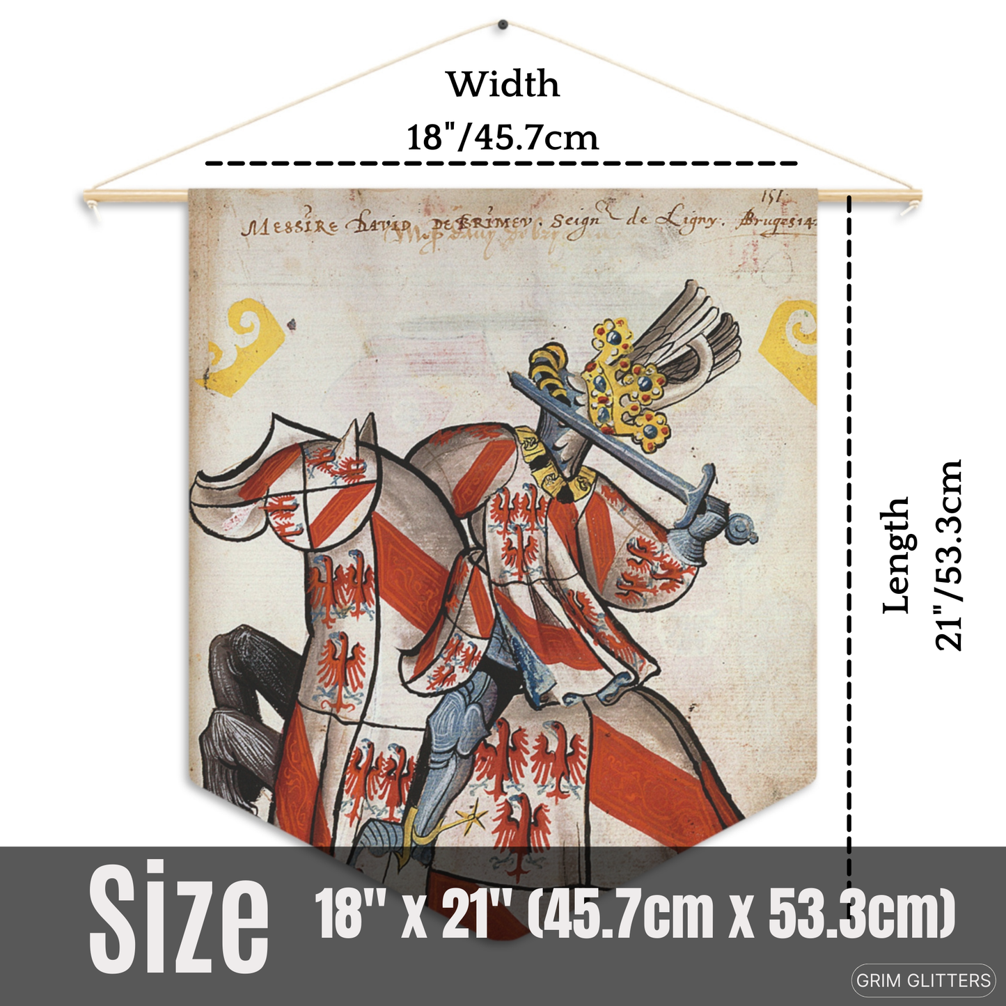 This striking pennant brings the beauty of medieval heraldry to life, making it the perfect addition for history enthusiasts, fans of Gothic decor, or admirers of chivalric tradition.