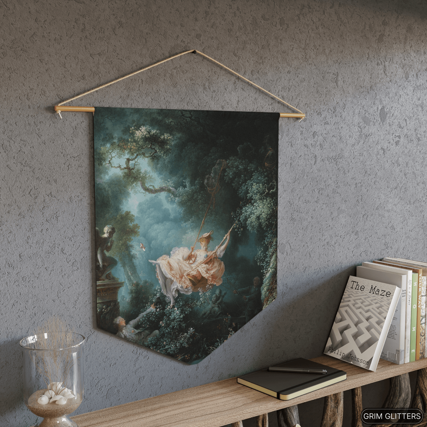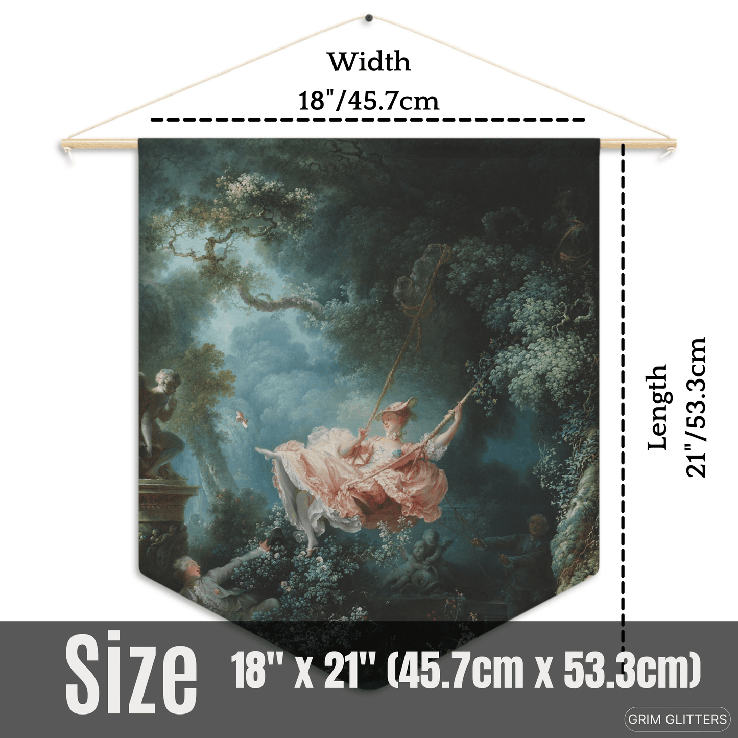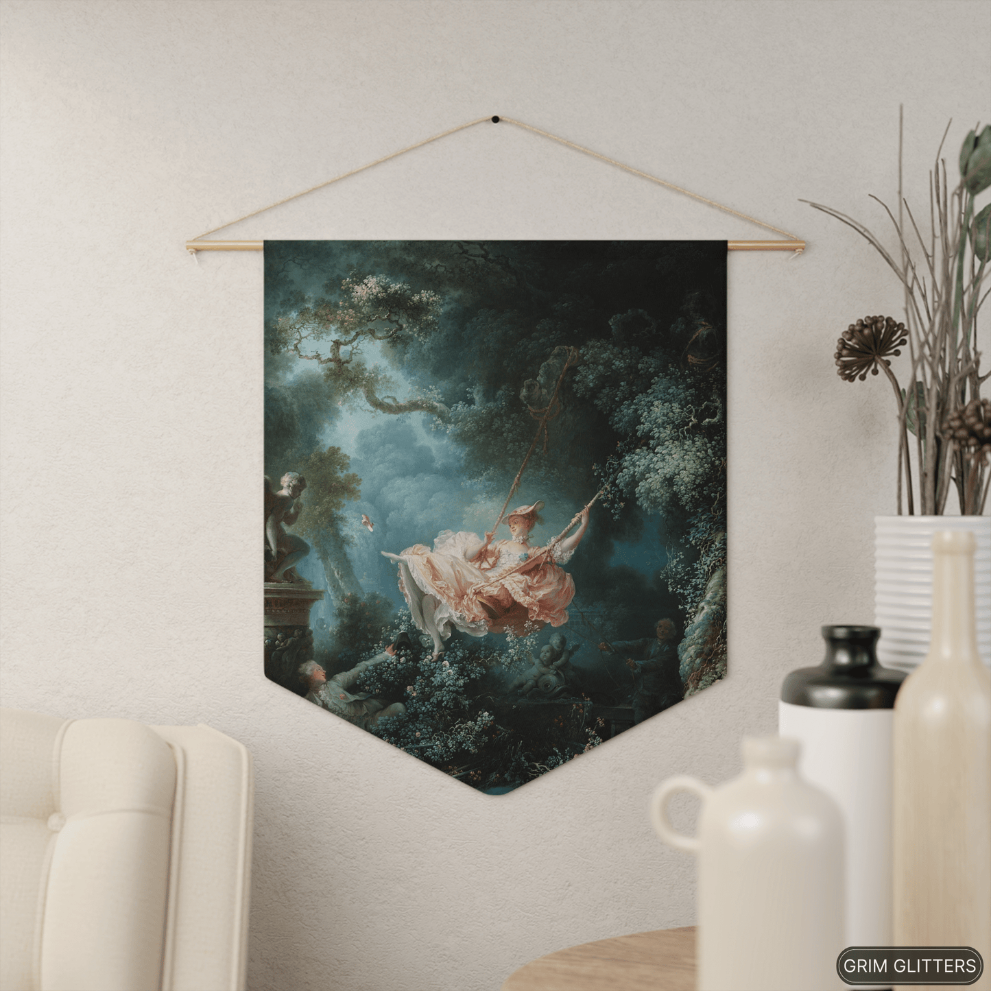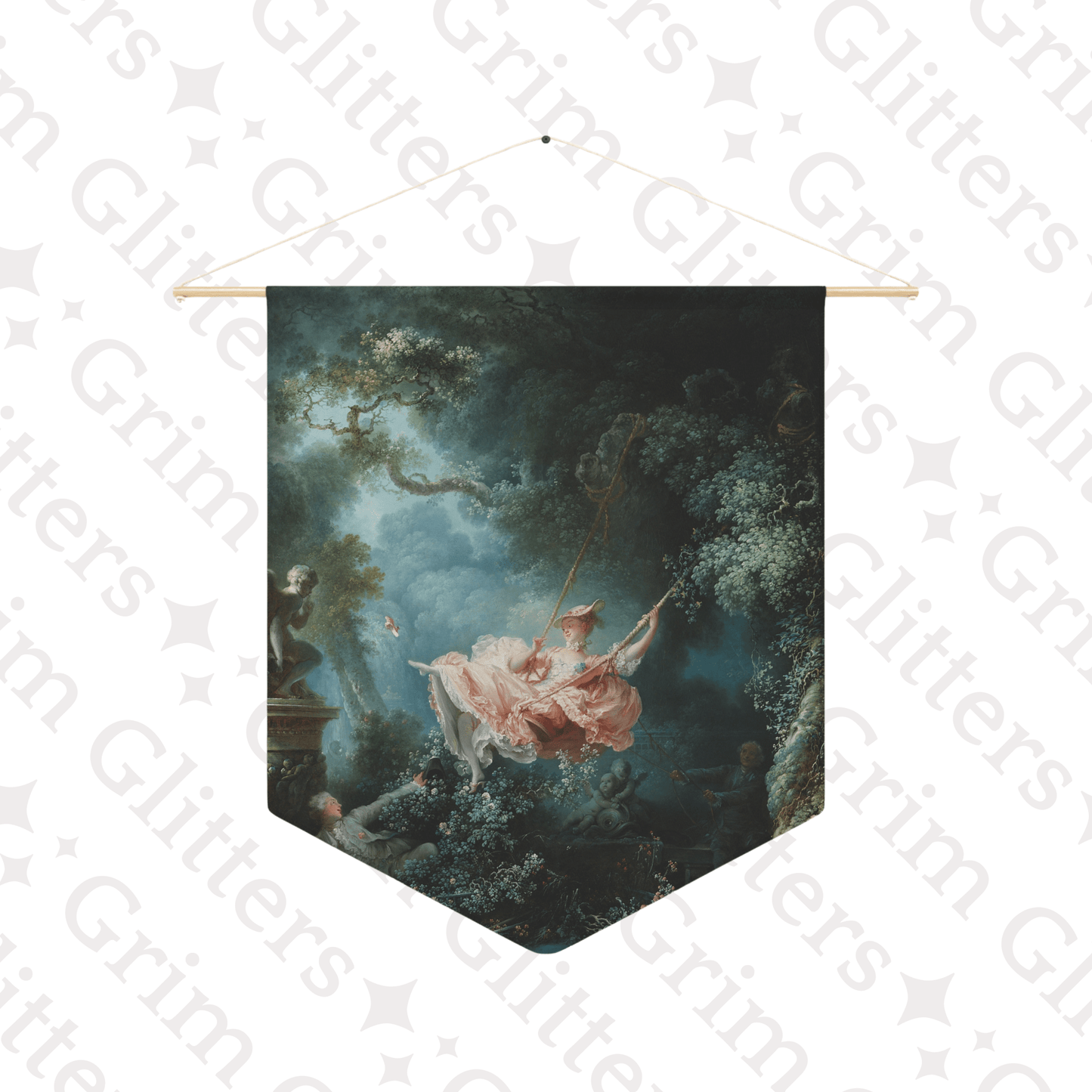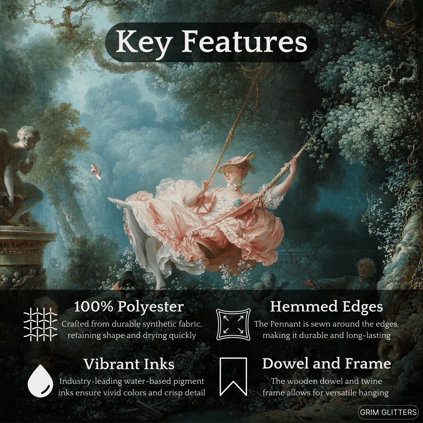 Elevate your space with the whimsical elegance of The Swing Pennant Banner, featuring the iconic artwork by Jean-Honore Fragonard. This exquisite pennant captures the playful and romantic spirit of the Rococo era, bringing a touch of timeless beauty and charm to any room. Perfect for lovers of classical art, this banner adds a sophisticated and delightful accent to your decor.