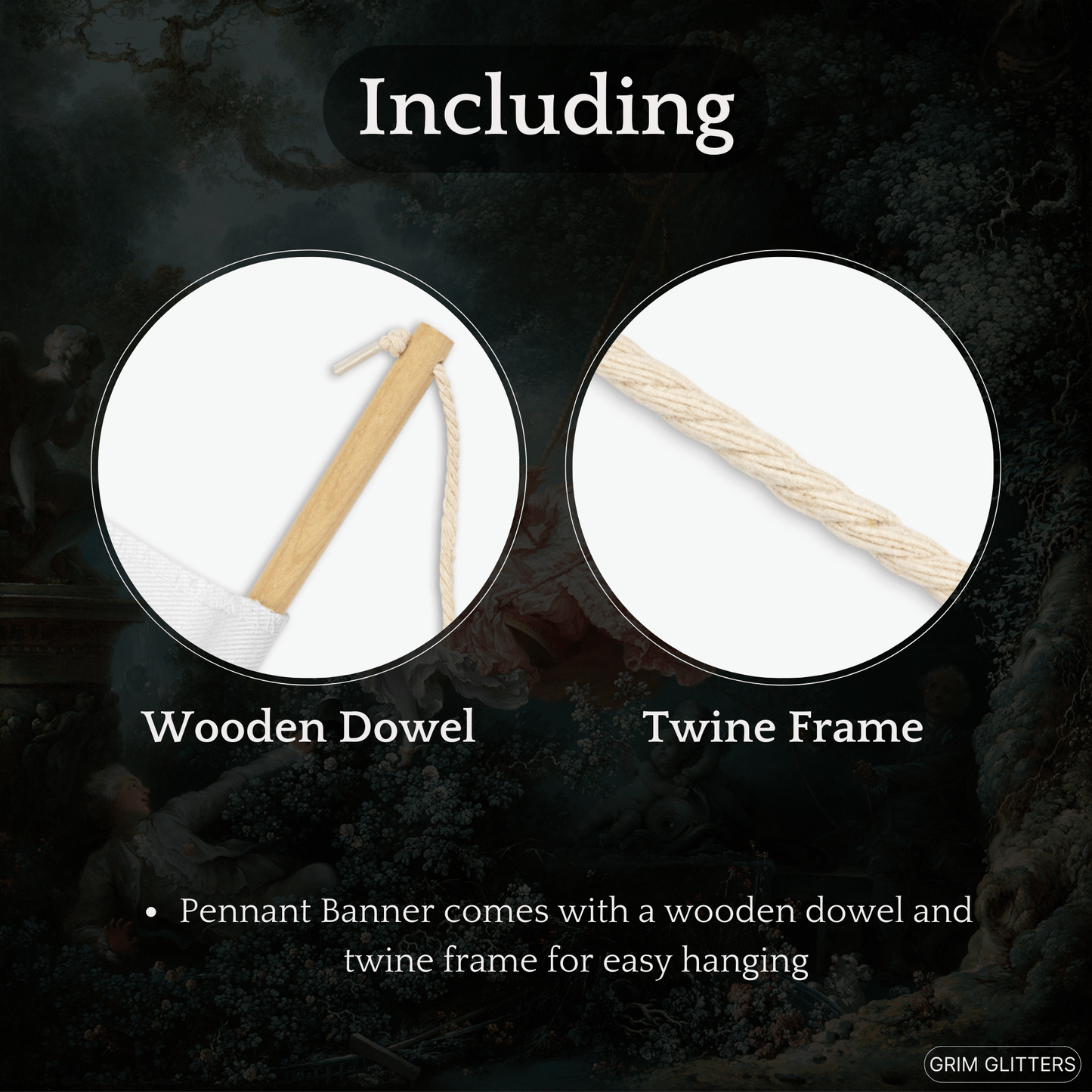 Each pennant banner comes with a wooden dowel and twine frame for easy hanging, keeping your banner neatly straightened and securely in place.