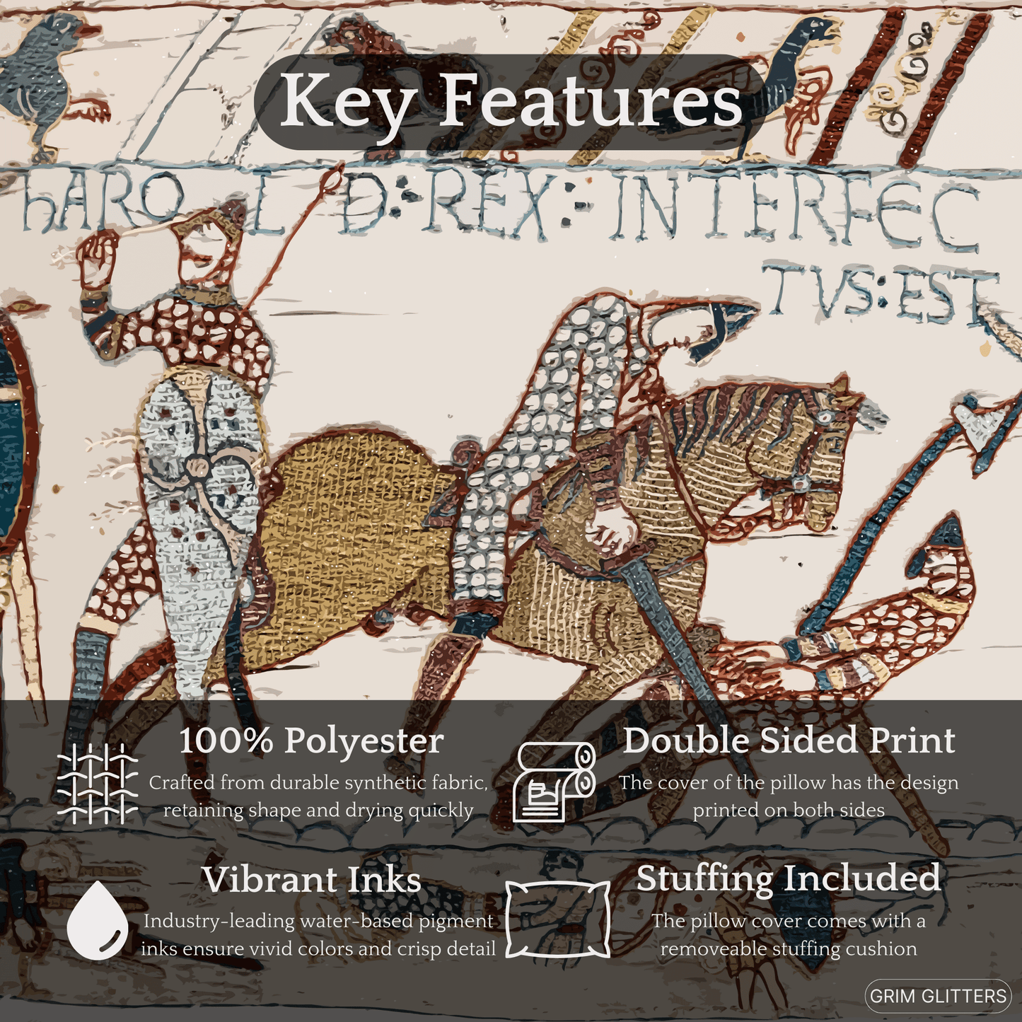 Transform your living space with the rich historical narrative of the Norman Conquest. This pillow captures the intricate details and vibrant colors of the Bayeux Tapestry, making it a stunning focal point in your home decor.