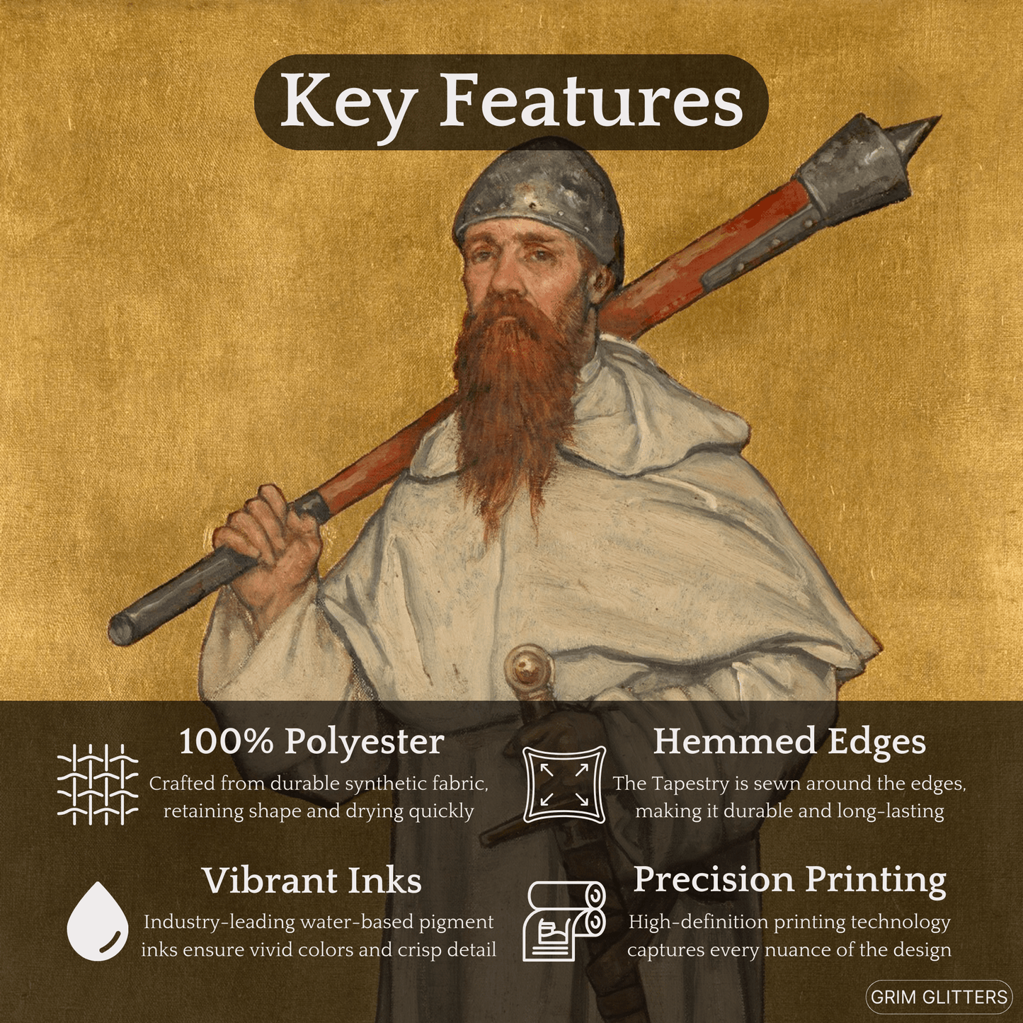 Crafted from high-quality polyester, this tapestry ensures durability while maintaining the vibrant hues and intricate details of the original artwork. The hemmed edges provide a polished finish, making it a lasting addition to your home.