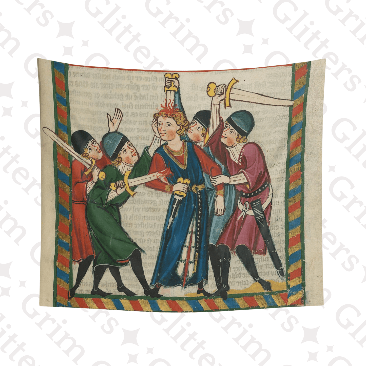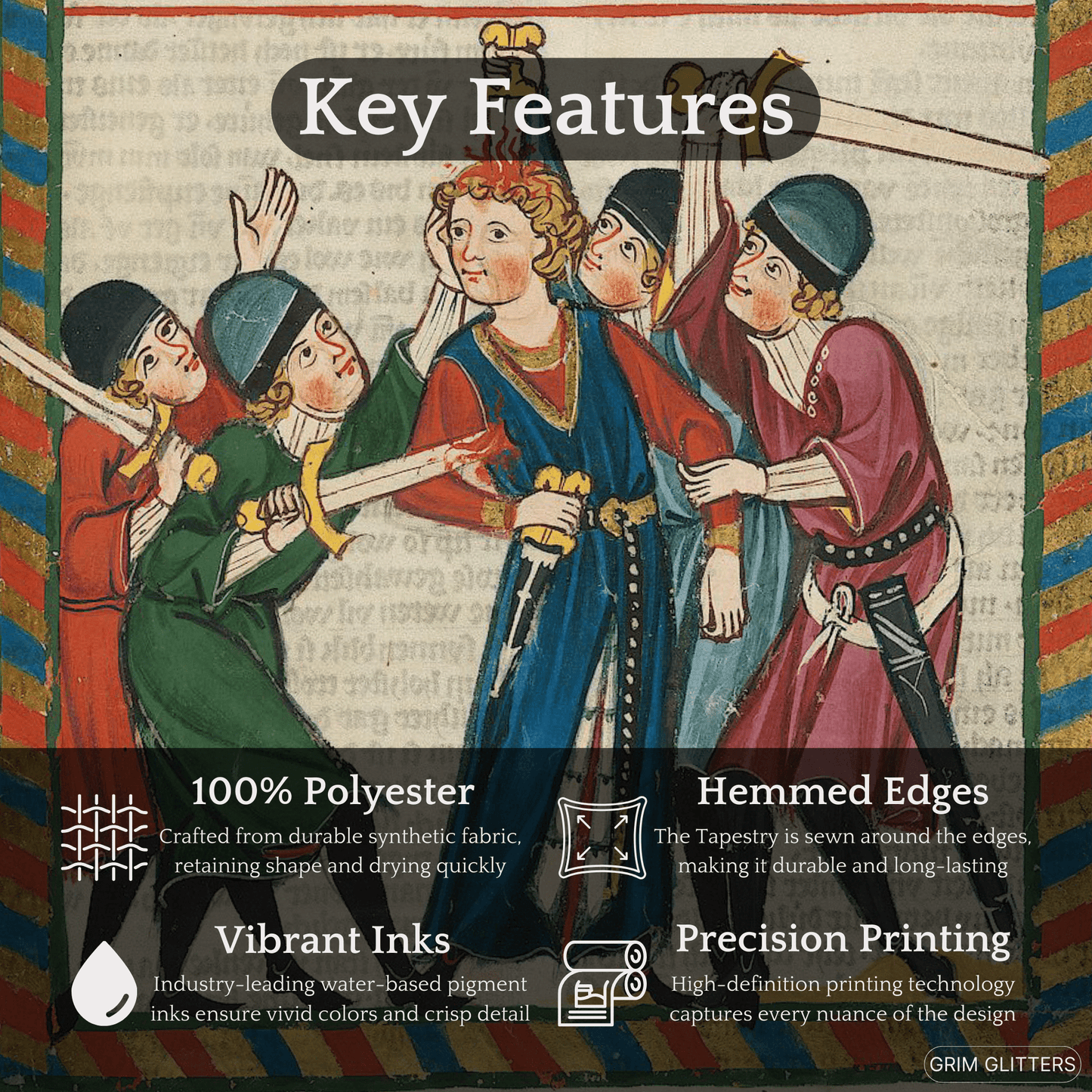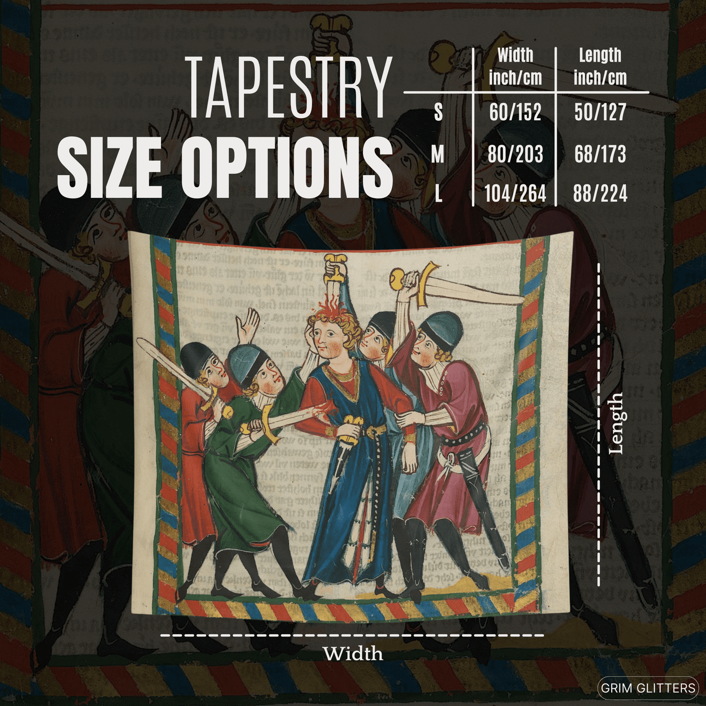 Crafted from high-quality polyester, this tapestry ensures vibrant colors and intricate details, faithfully reproducing the original artwork from the Codex Manesse. Hemmed edges provide a polished finish, ensuring durability and elegance in your home.