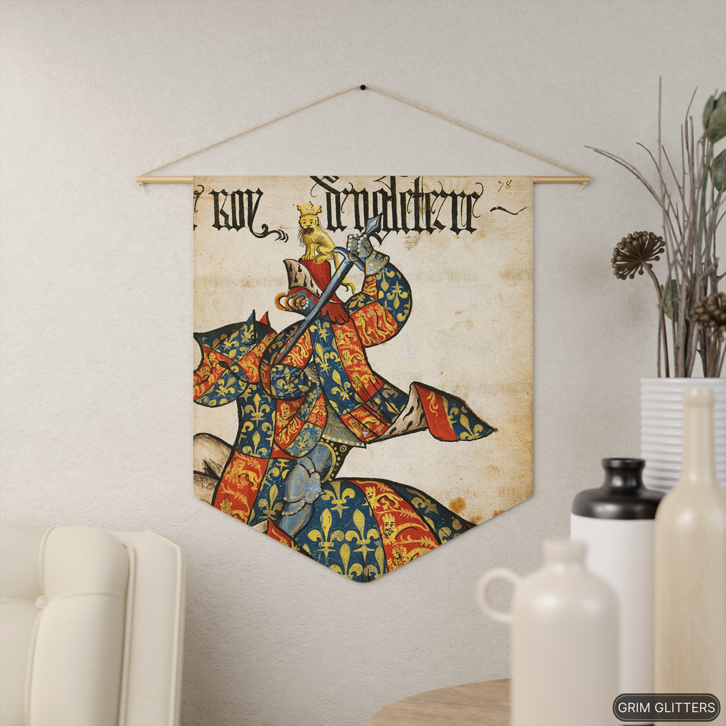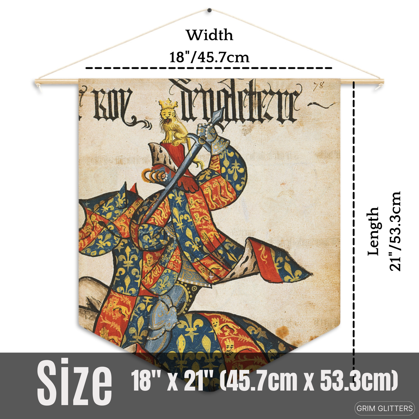 The vibrant colors and intricate heraldic details make this pennant a captivating addition to any space. Whether for historic-themed rooms or fantasy-inspired decor, this banner evokes the splendor of medieval England.
