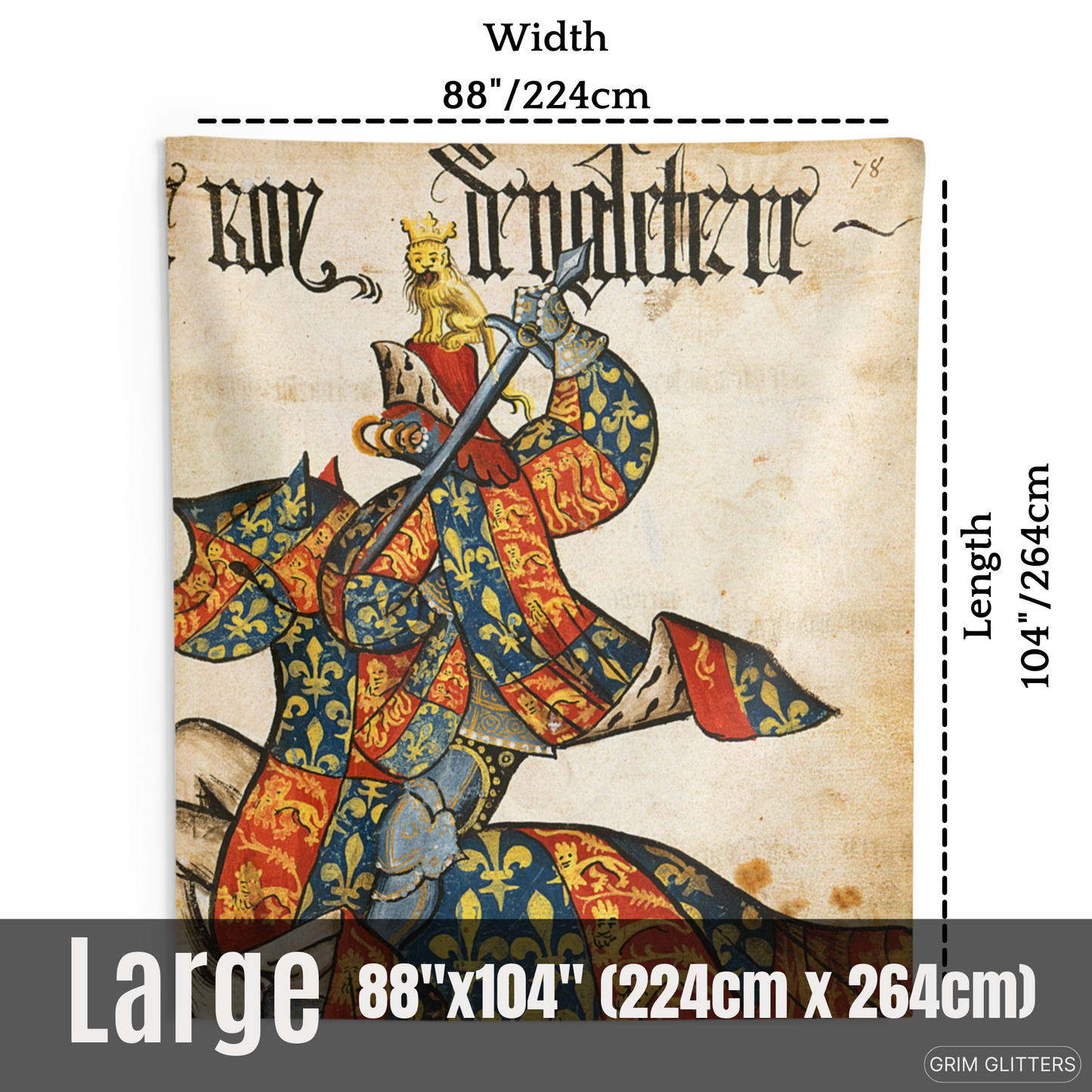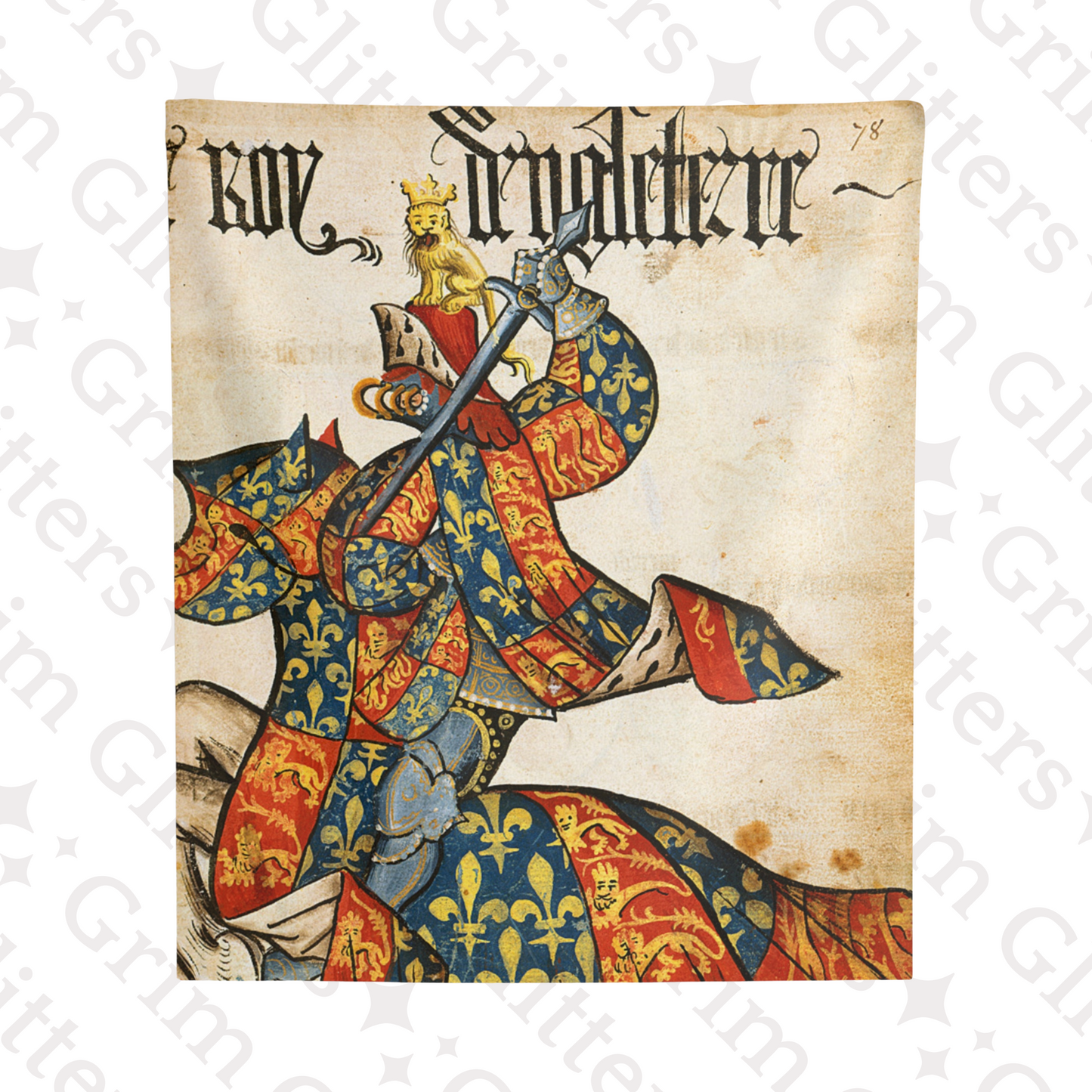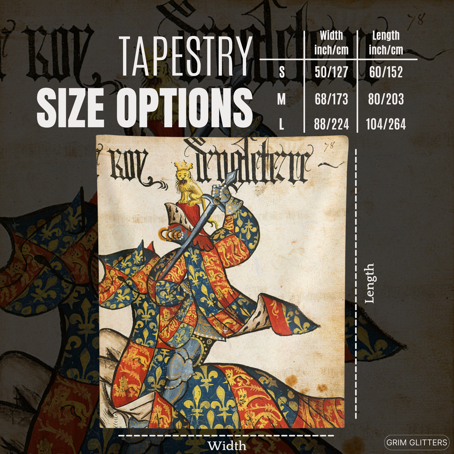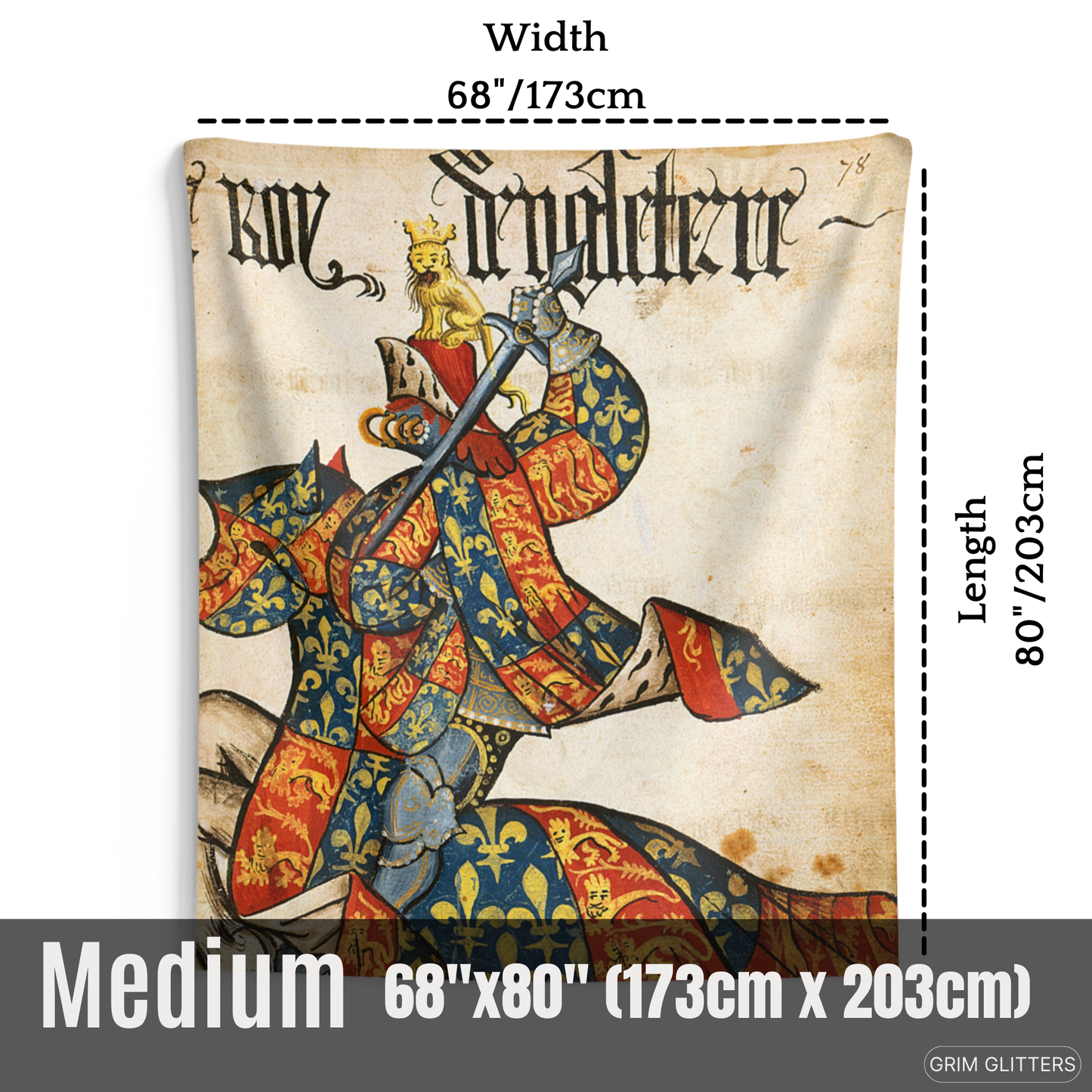 This tapestry pays tribute to medieval kingship, chivalric tournaments, and the authority of the English crown. Whether displayed in a study, library, or grand hall, it adds timeless majesty and historical depth to your decor.