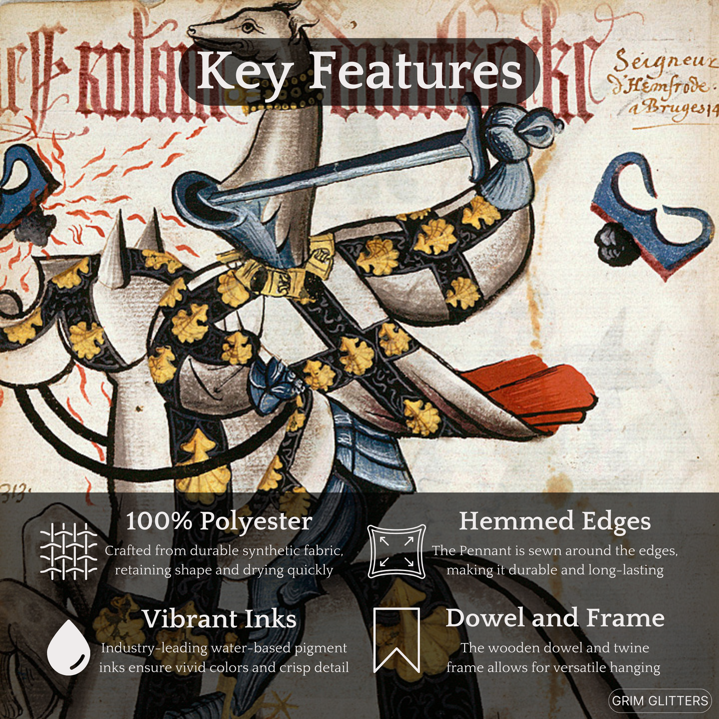 Perfect for history enthusiasts and admirers of heraldic artistry, this banner is an elegant addition to historic or fantasy-inspired decor.