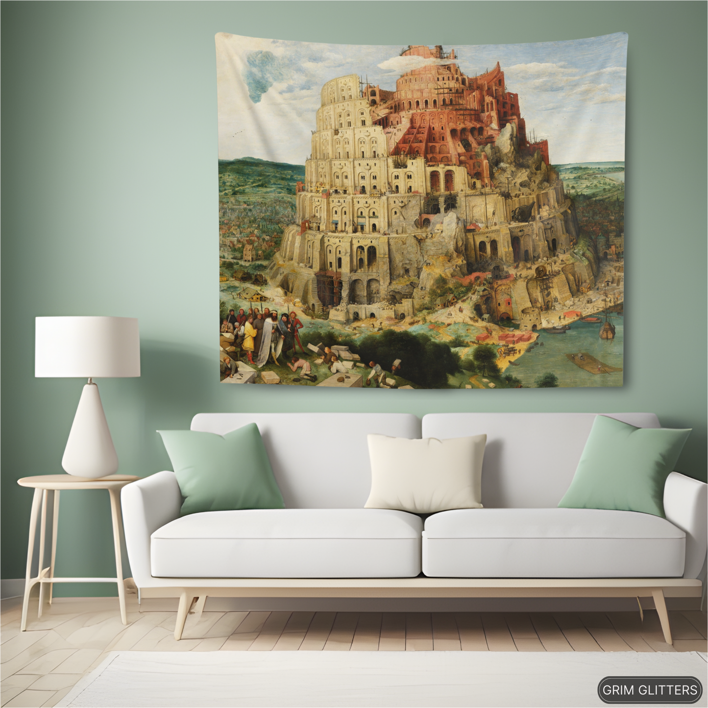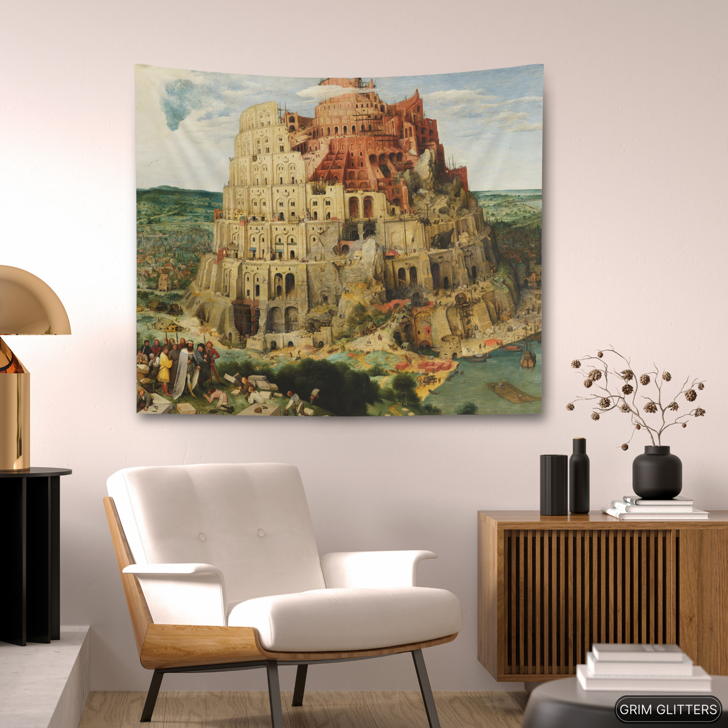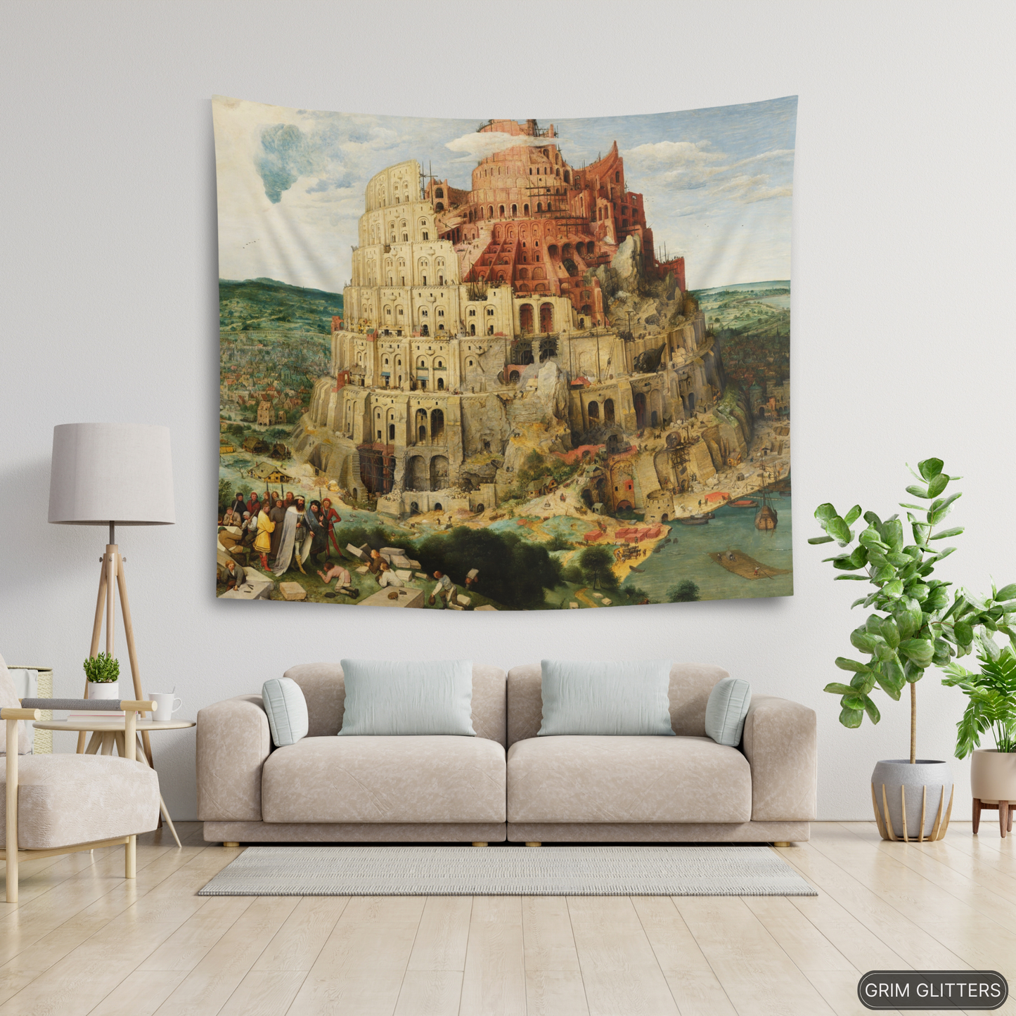 Bring the timeless beauty of Pieter Bruegel the Elder's Tower of Babel into your home with our exquisite tapestry and let its captivating charm enchant your space.