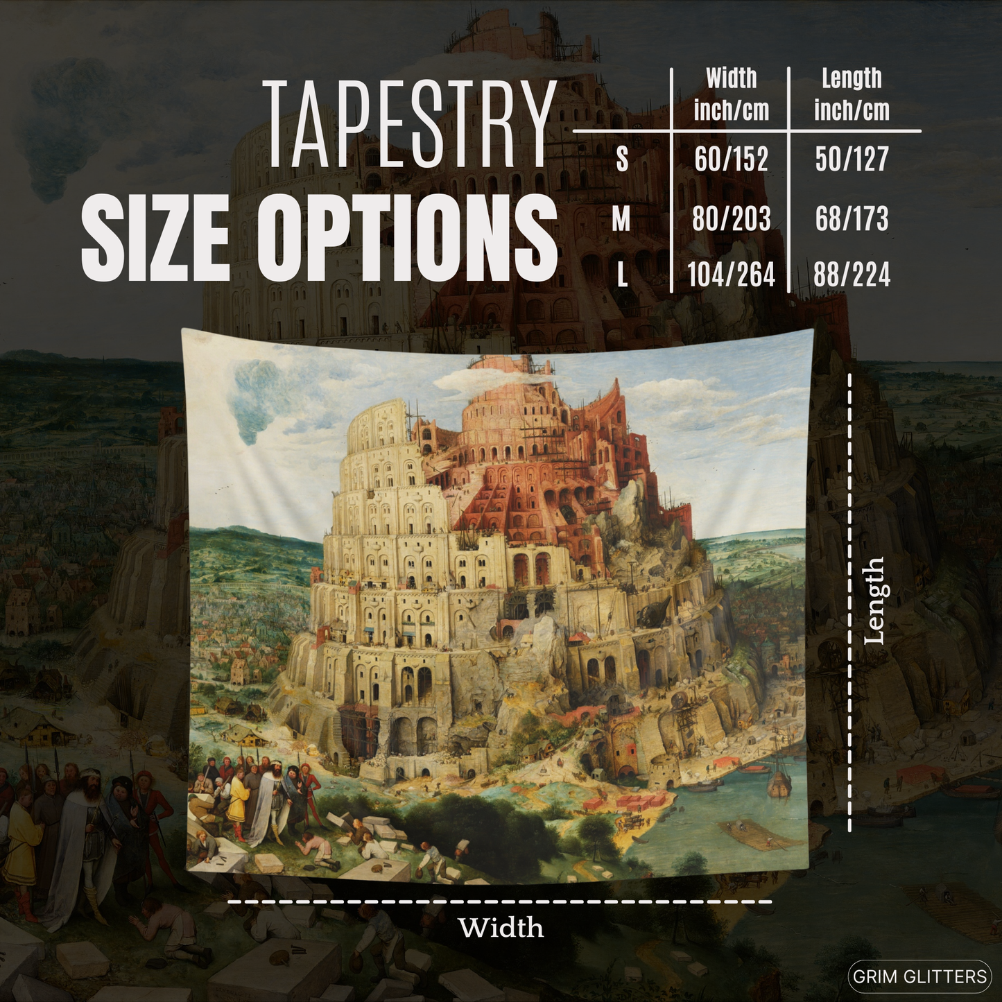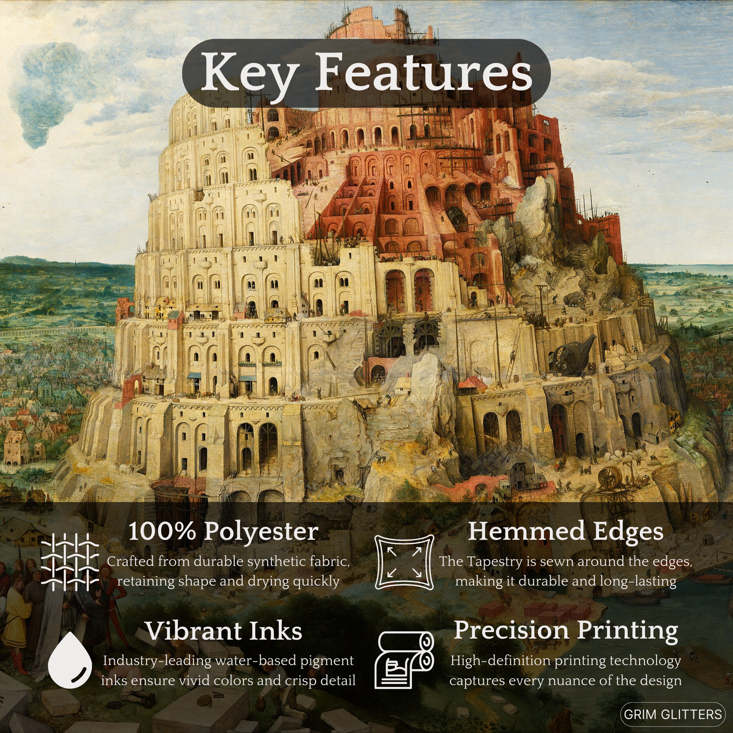 Step into the mesmerizing world of medieval art with our Tower of Babel Tapestry, inspired by Pieter Bruegel the Elder's renowned masterpiece. This captivating tapestry brings to life the iconic scene of the Tower of Babel, offering a glimpse into the artist's interpretation of this biblical tale.