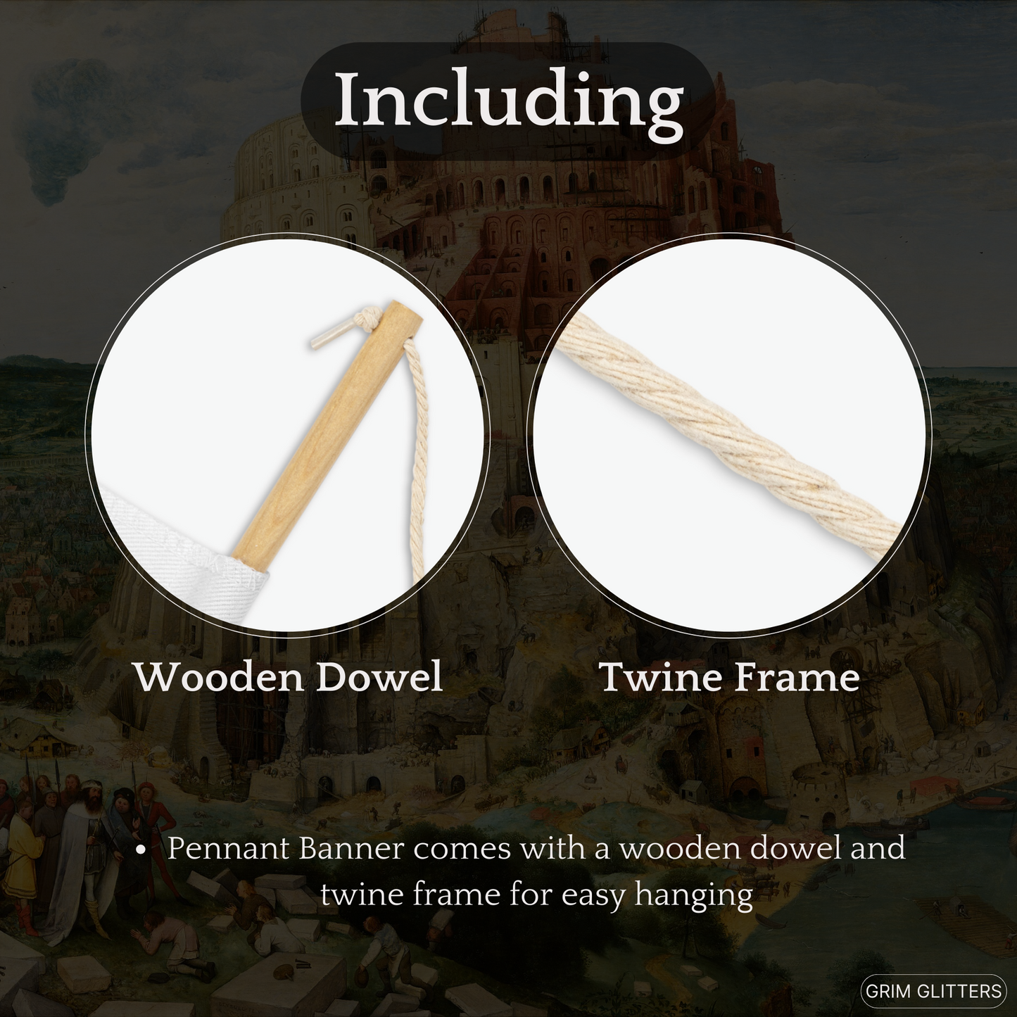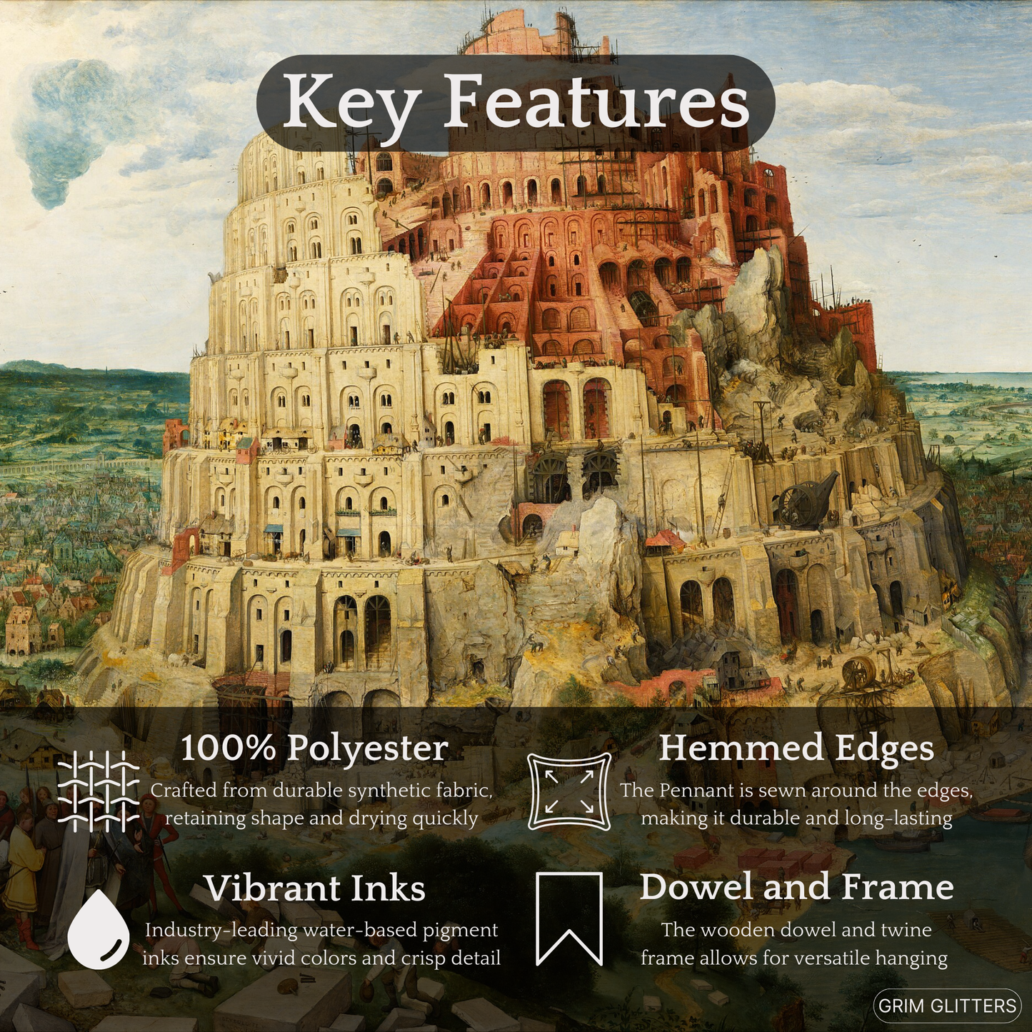 Embark on a journey through biblical history with our 'Tower of Babel' Pennant Banner. Inspired by Pieter Bruegel the Elder's iconic masterpiece, this banner brings to life the awe-inspiring architectural marvel and the timeless tale of human ambition.