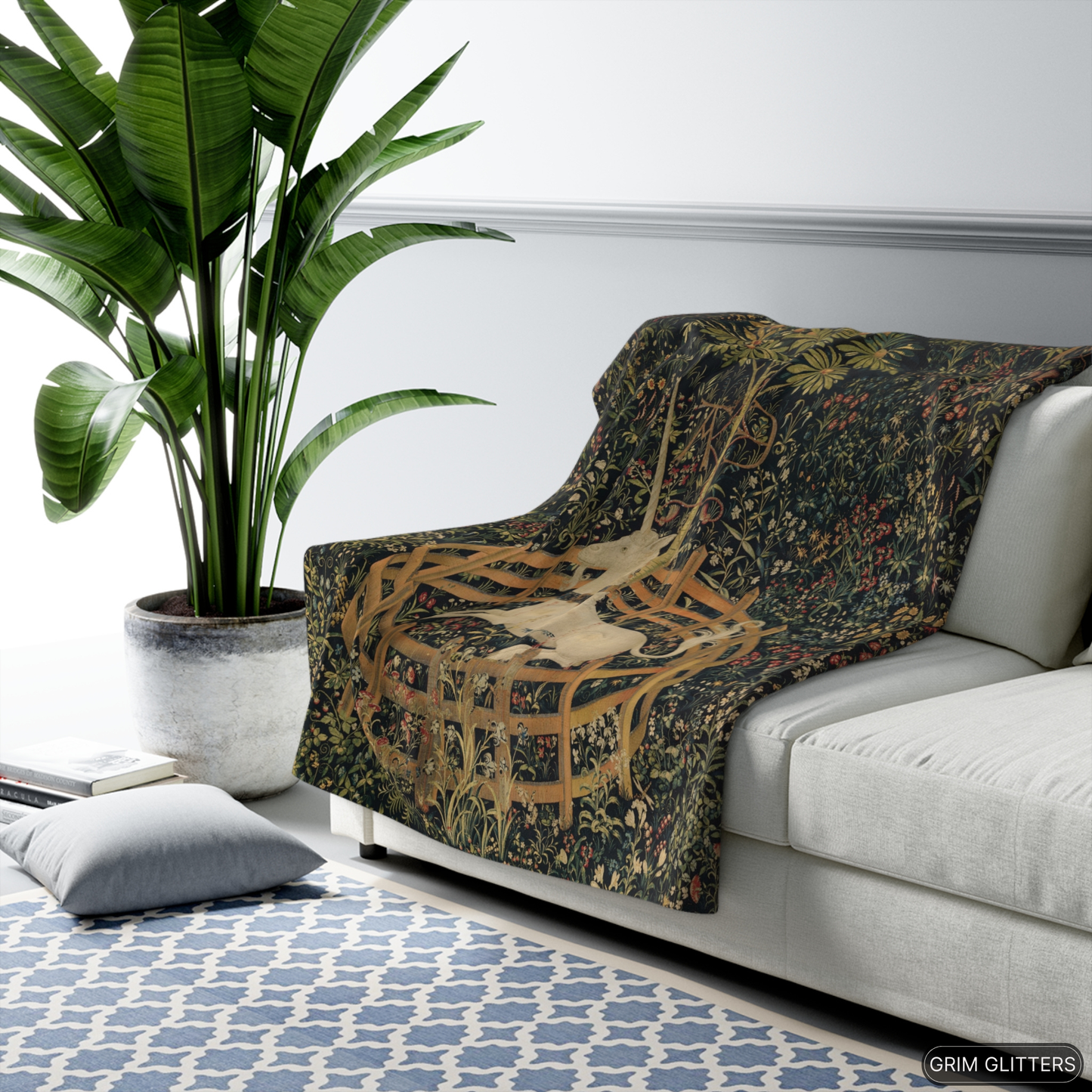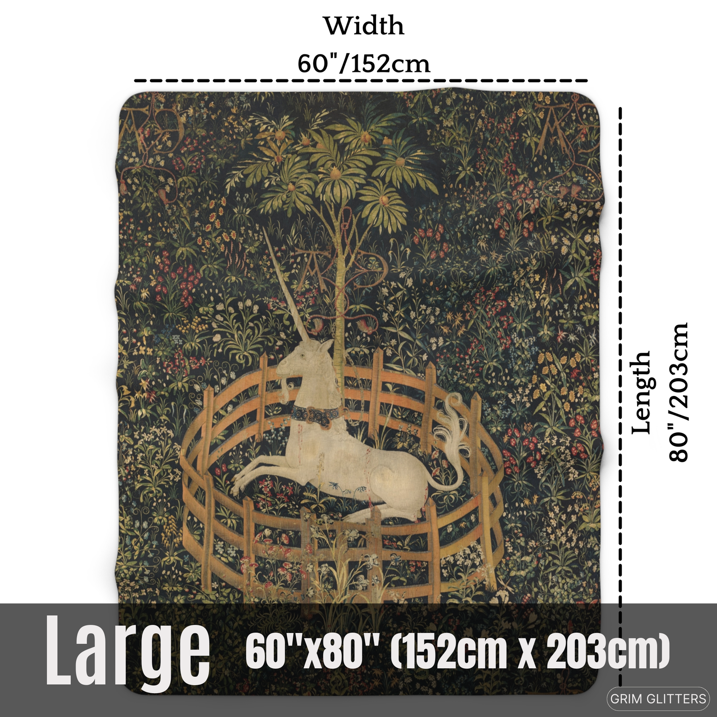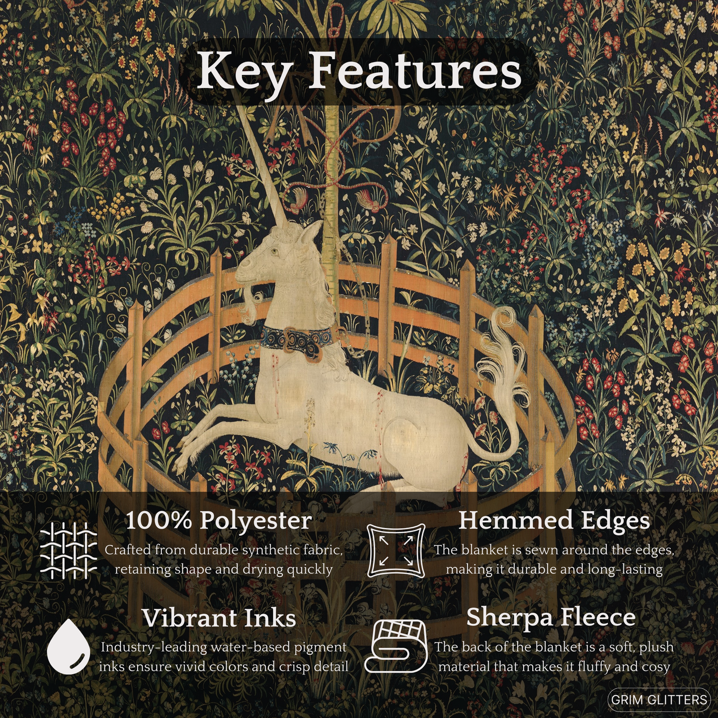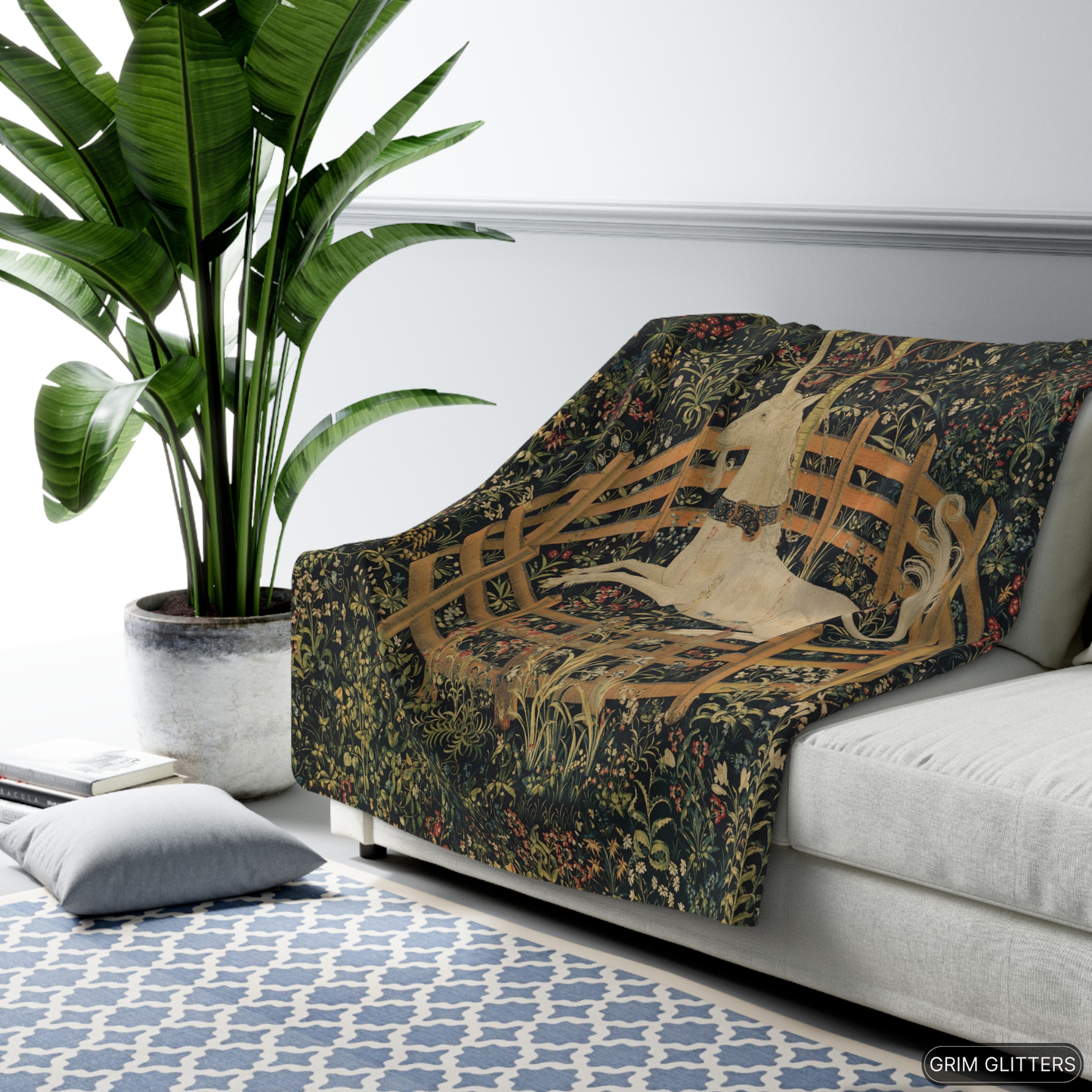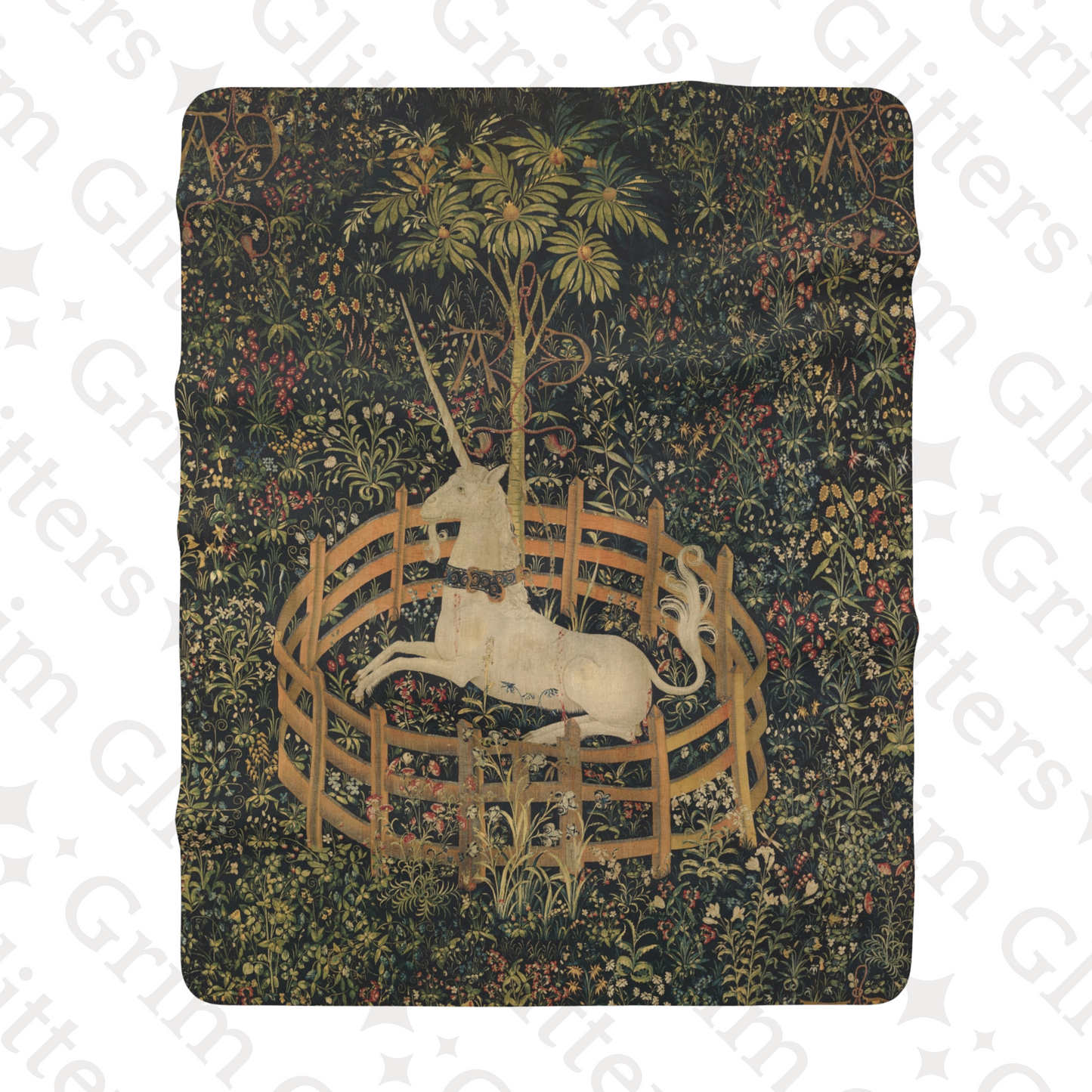 Experience the magic of the medieval era with our Unicorn in Captivity Sherpa Fleece Blanket, a cozy companion for all your relaxing moments. ✨🦄