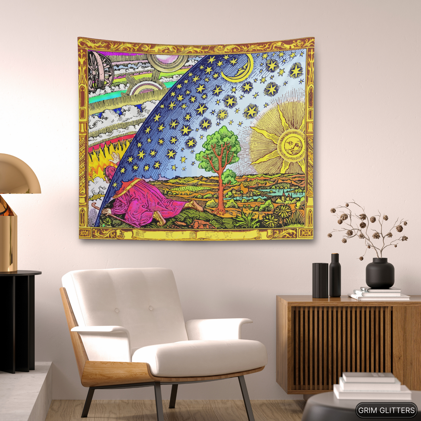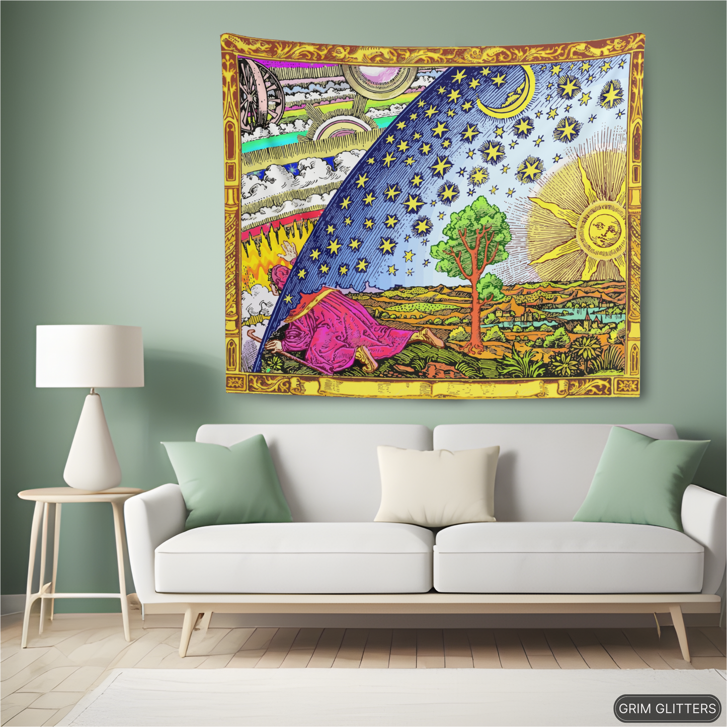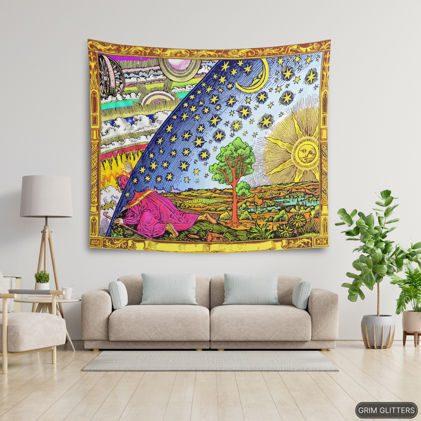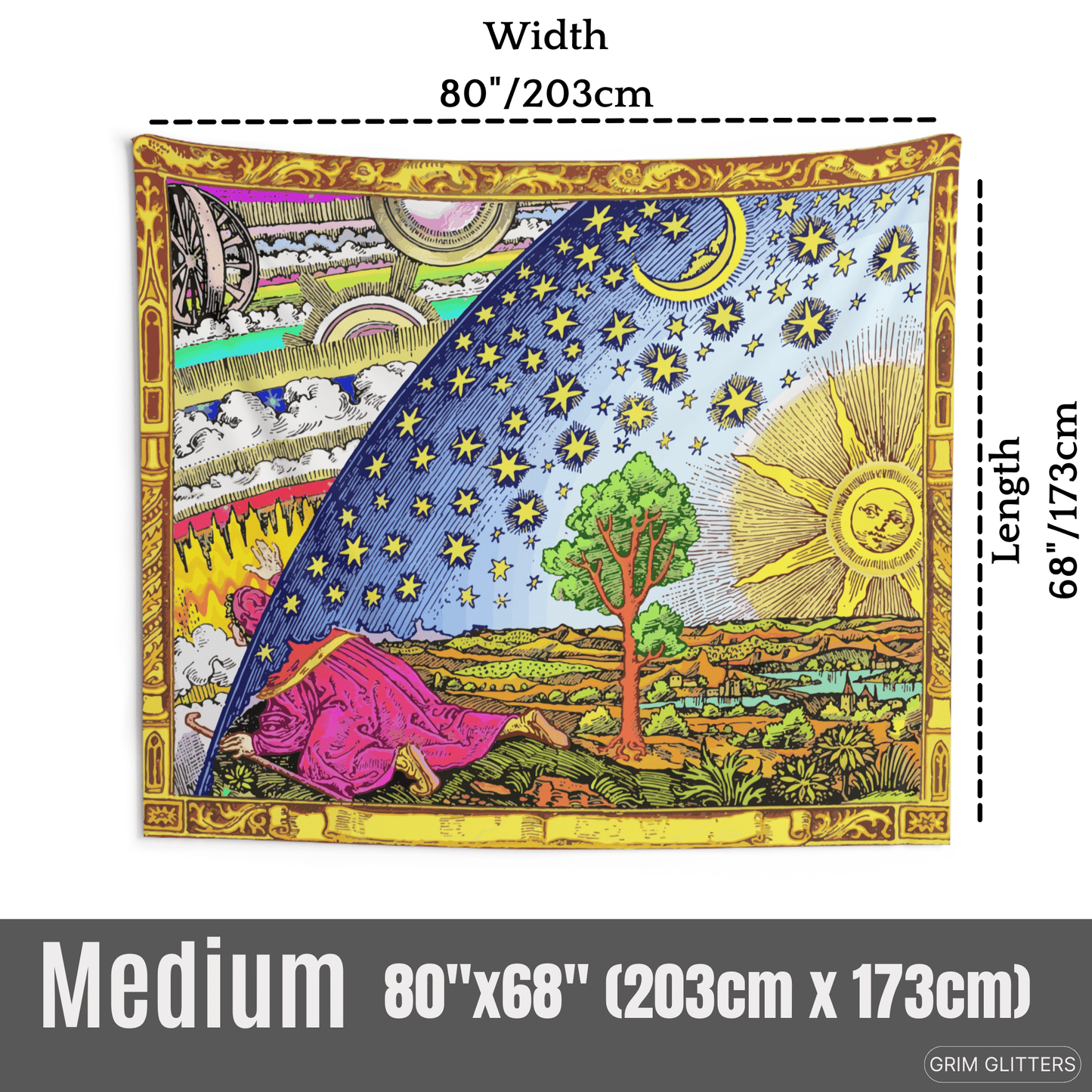 Whether hung in your living room, meditation space, or study, this tapestry adds a touch of cosmic inspiration to any environment. Let its transcendent beauty serve as a focal point for contemplation, meditation, and spiritual reflection.
