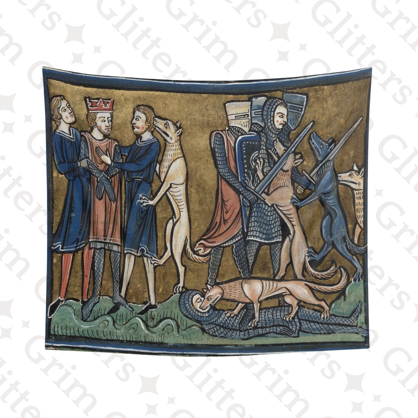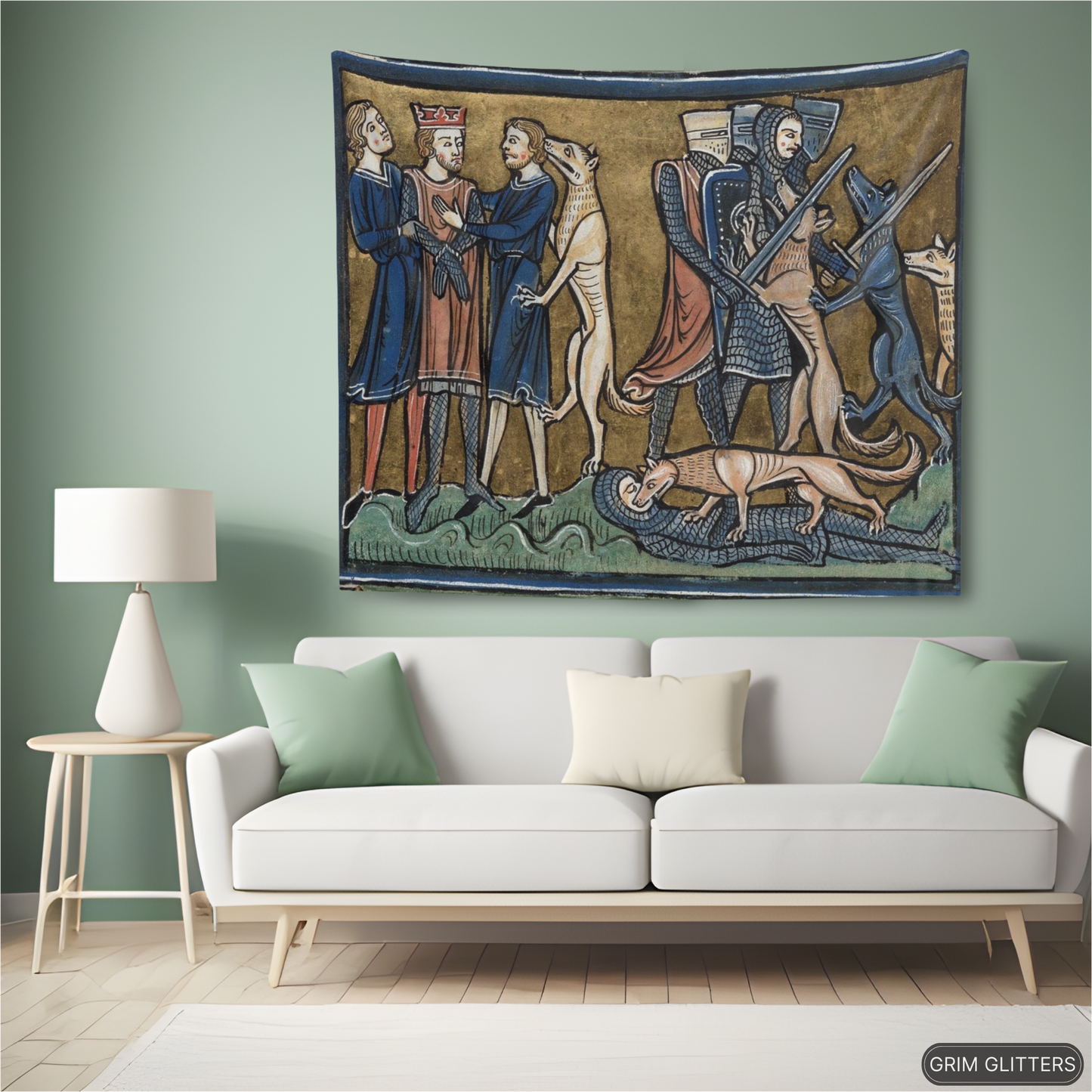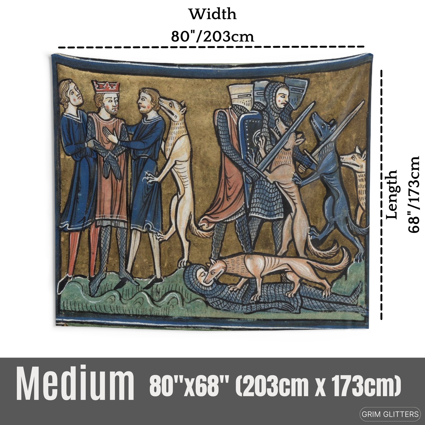 Transform your home with the King Garamantes Rescued by His Dogs tapestry, inspired by the rich illustrations of the Rochester Bestiary, a 13th-century illuminated manuscript. This stunning artwork captures the legendary moment when King Garamantes is saved by his loyal dogs, a story from the world of medieval symbolism and lore. The tapestry’s intricate design brings to life the storytelling traditions of the Middle Ages, making it the perfect addition for anyone who appreciates historic art and mythical tales.