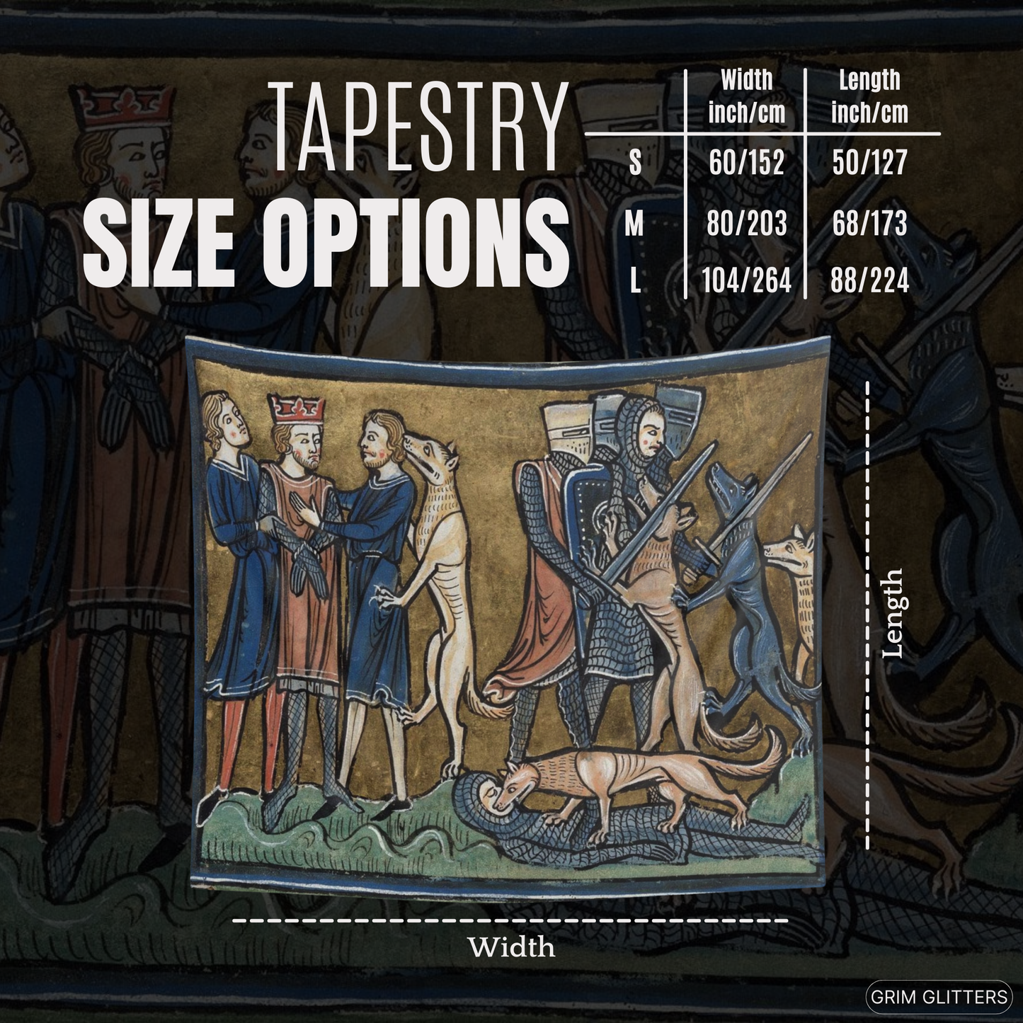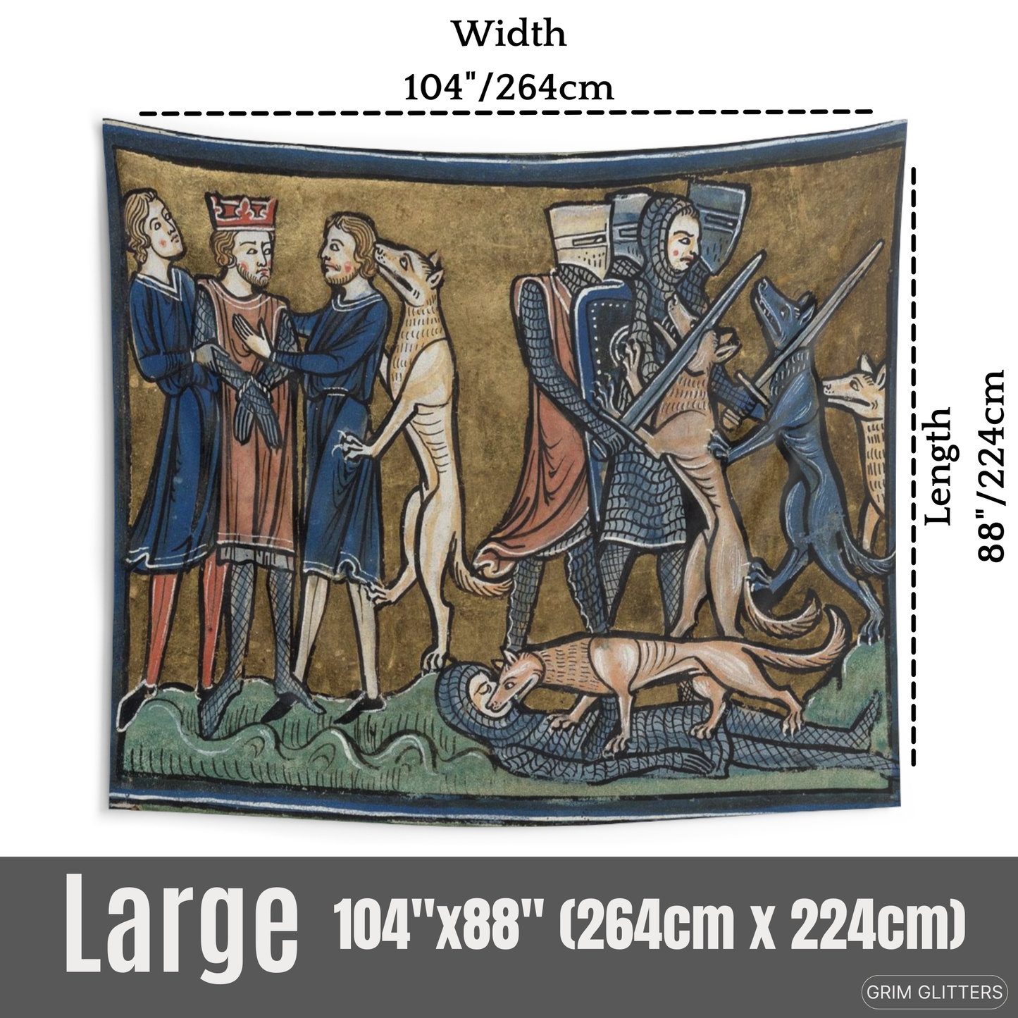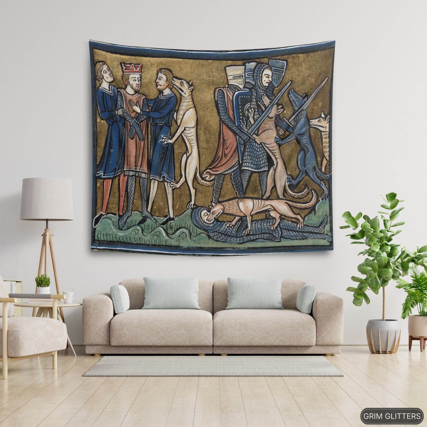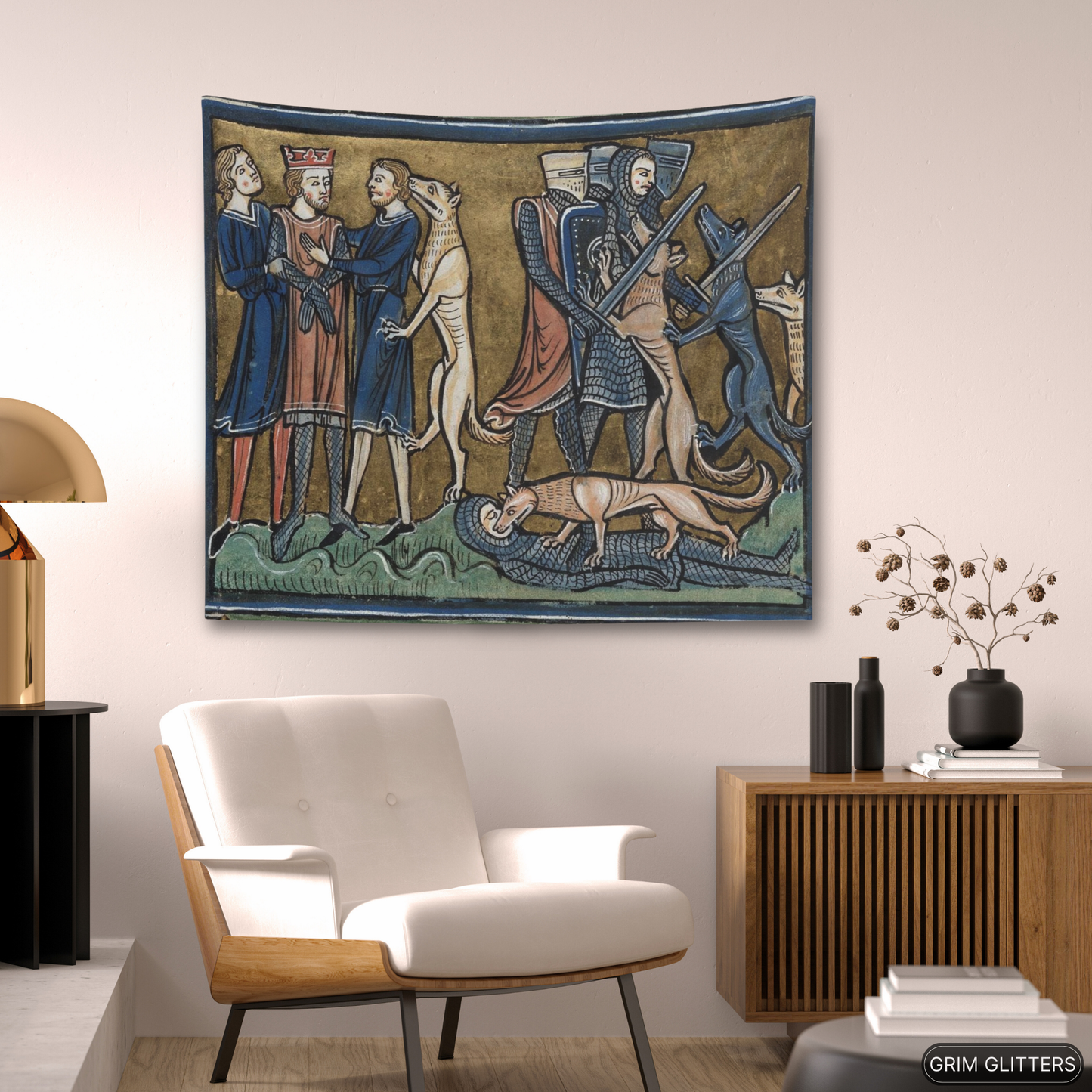 Transform your home with the King Garamantes Rescued by His Dogs tapestry, inspired by the rich illustrations of the Rochester Bestiary, a 13th-century illuminated manuscript. This stunning artwork captures the legendary moment when King Garamantes is saved by his loyal dogs, a story from the world of medieval symbolism and lore. The tapestry’s intricate design brings to life the storytelling traditions of the Middle Ages, making it the perfect addition for anyone who appreciates historic art and mythical tales.