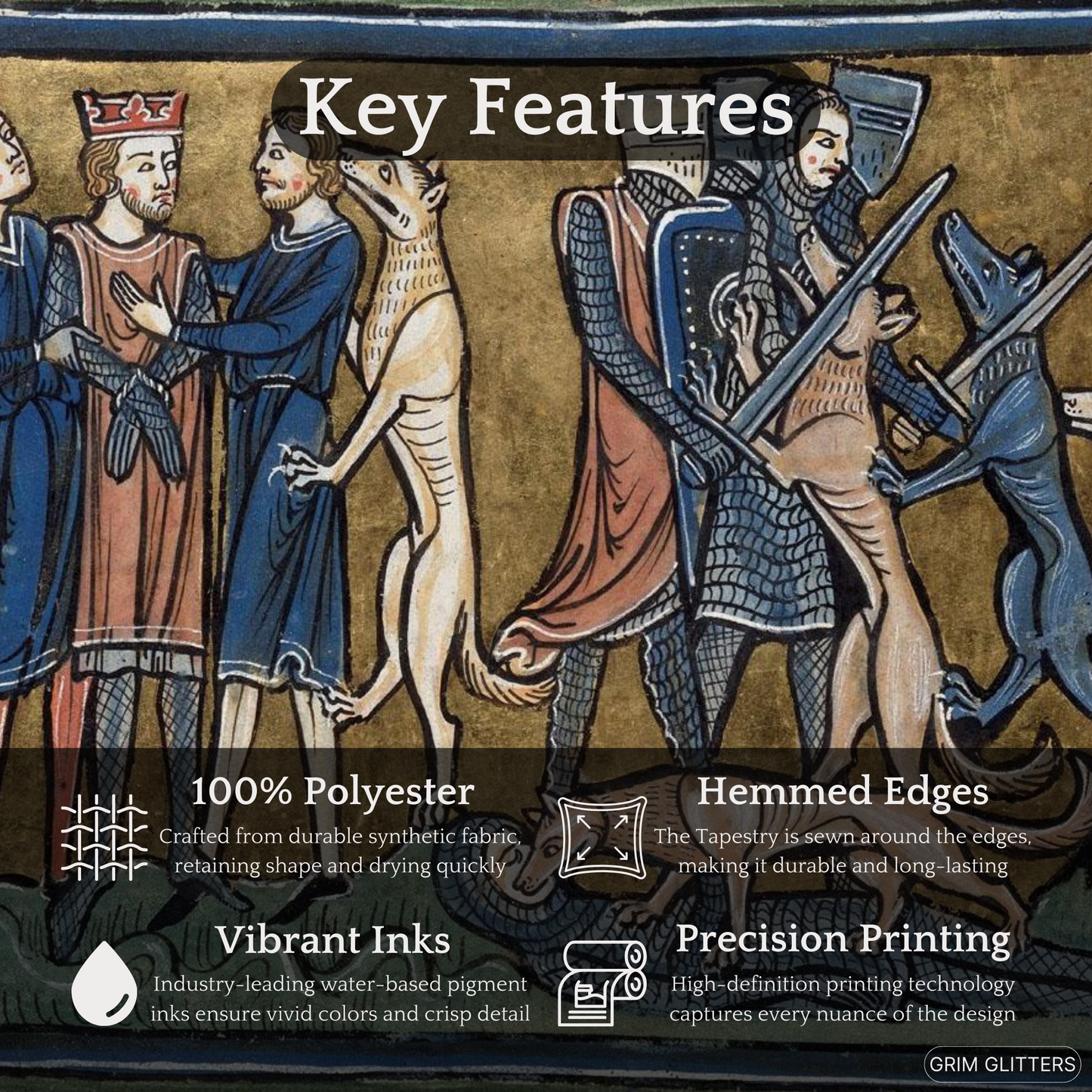 Celebrate the beauty and mystery of early medieval manuscripts with this magnificent tapestry, and let the legends of the Rochester Bestiary add a unique touch to your home.