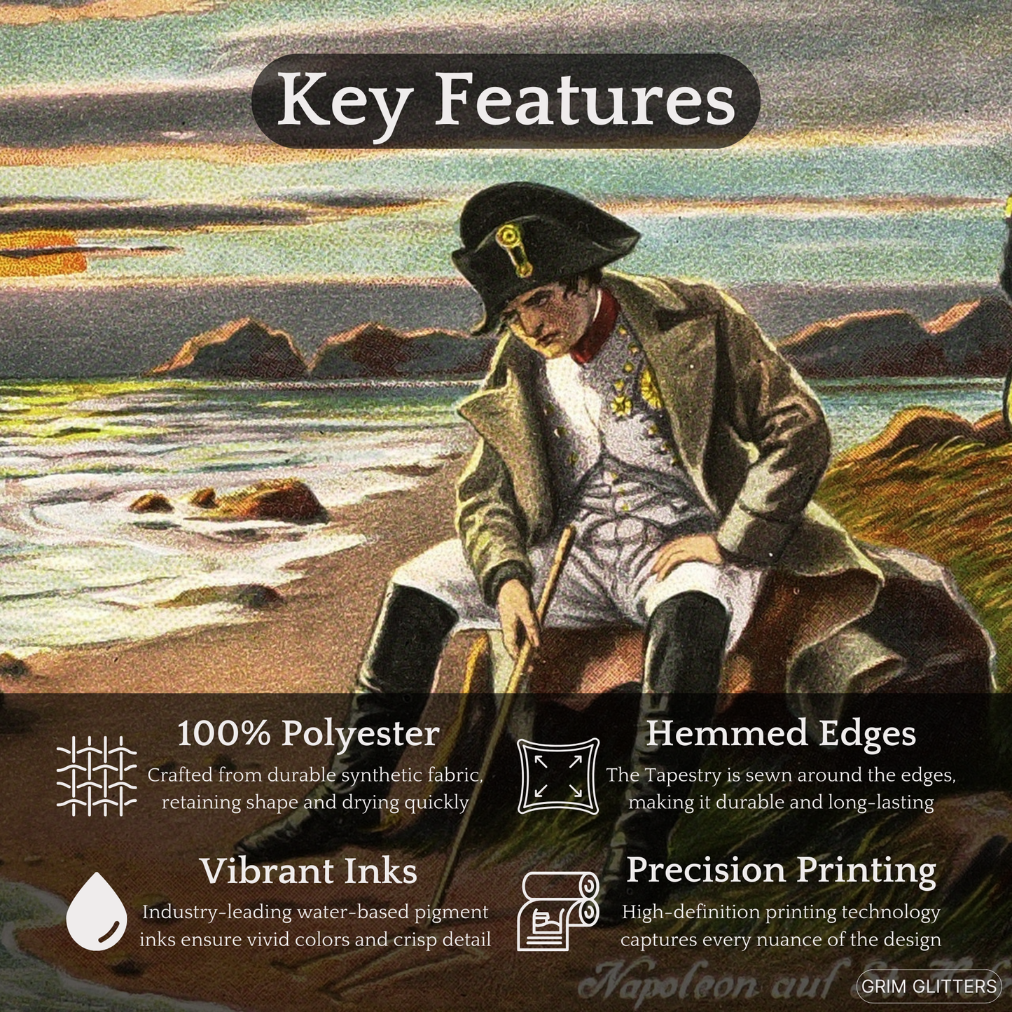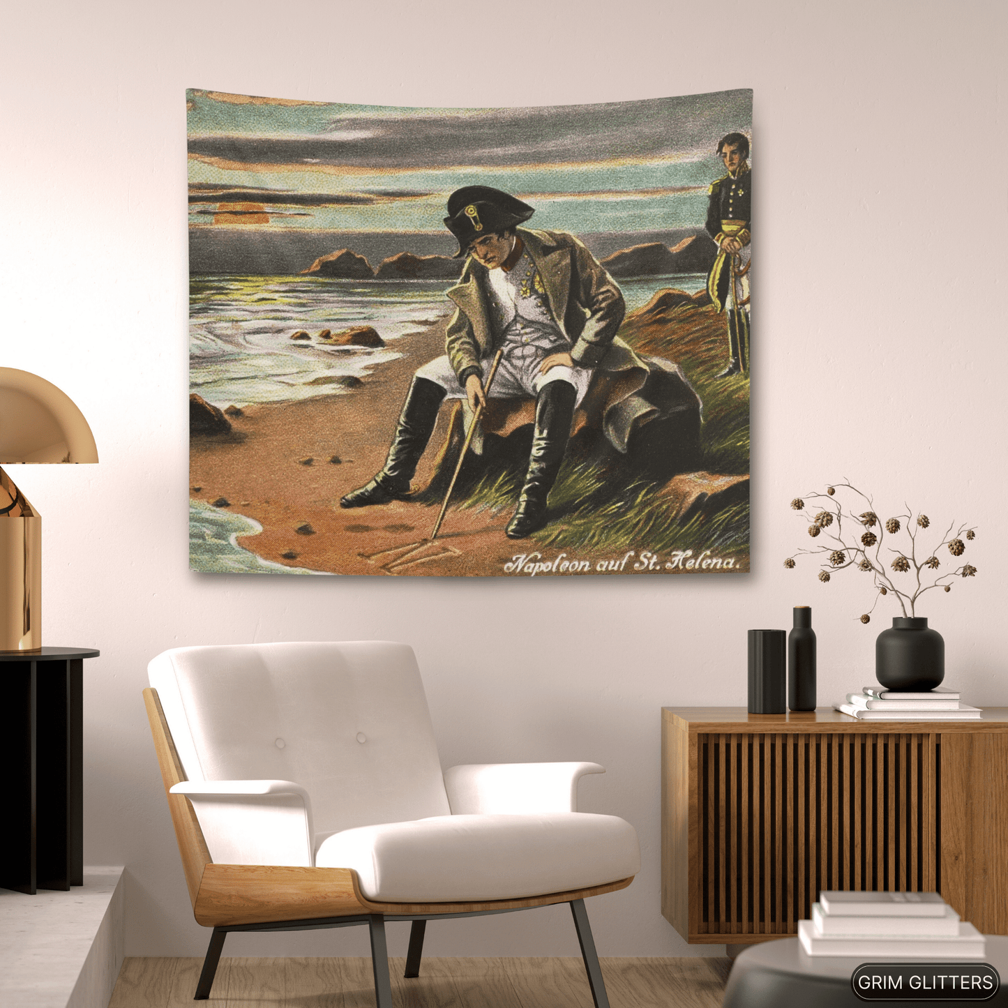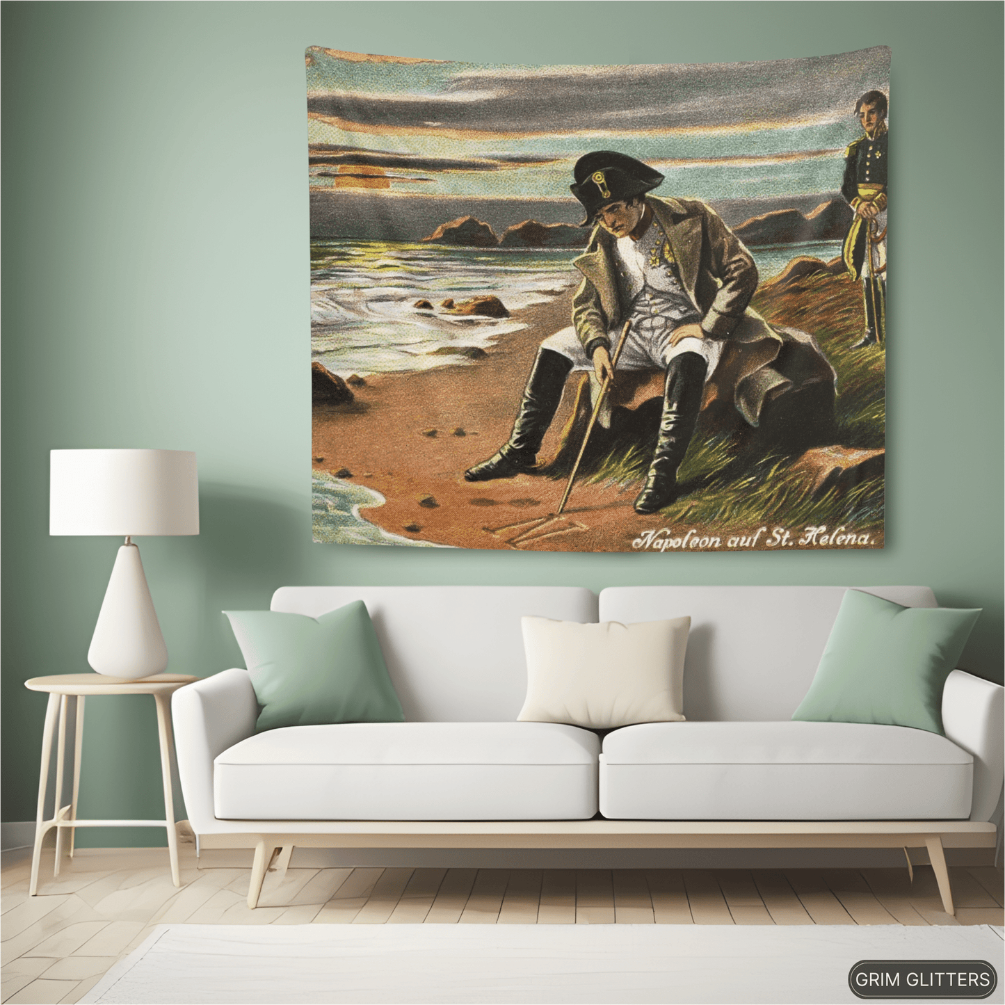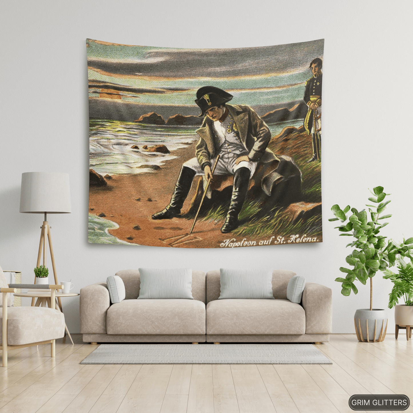 Capture a poignant moment in history with our Napoleon "There Is Nothing We Can Do" Tapestry. This evocative painting depicts Napoleon in exile on Saint Helena, reflecting on his fate. Perfect for history enthusiasts, this tapestry adds a touch of timeless elegance to your decor.