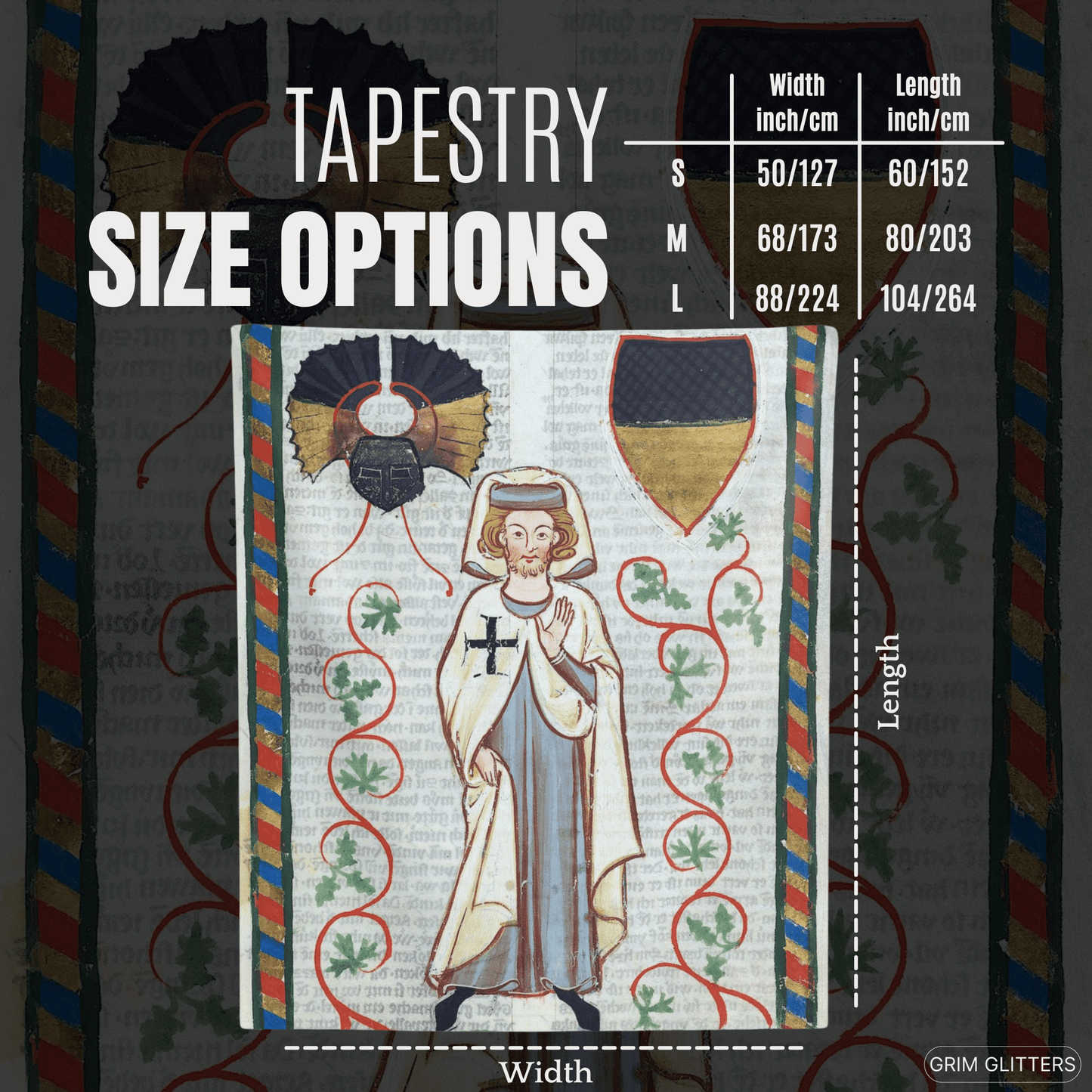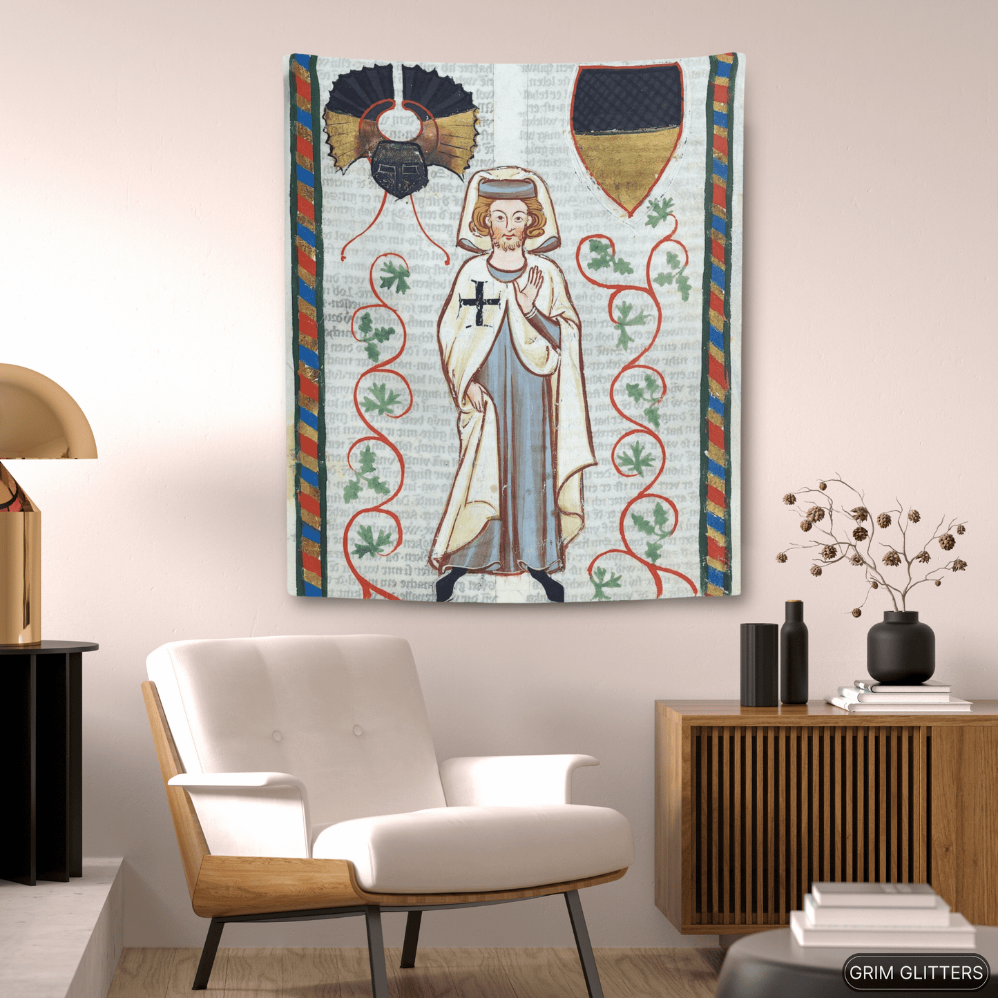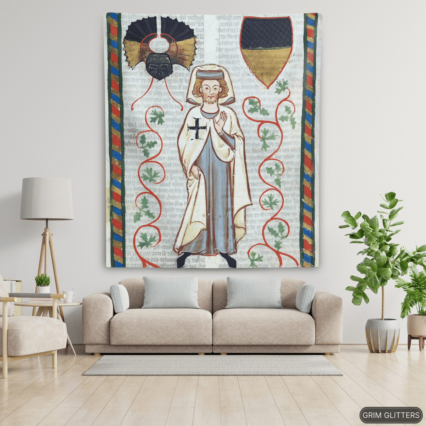 Step into the legendary world of medieval knighthood with the "Tannhauser" tapestry, inspired by the Codex Manesse. This exquisite piece features the iconic knight Tannhauser, who was associated with the Teutonic Order, a prominent medieval military order known for its role in the Crusades and Germanic history. The Codex Manesse, created between 1305 and 1340 in Zürich, is celebrated for its detailed illustrations and Middle High German poetry, capturing the cultural essence of medieval Germany. Perfect for history buffs and art lovers alike, this tapestry brings a piece of the past into your home with elegance and style.