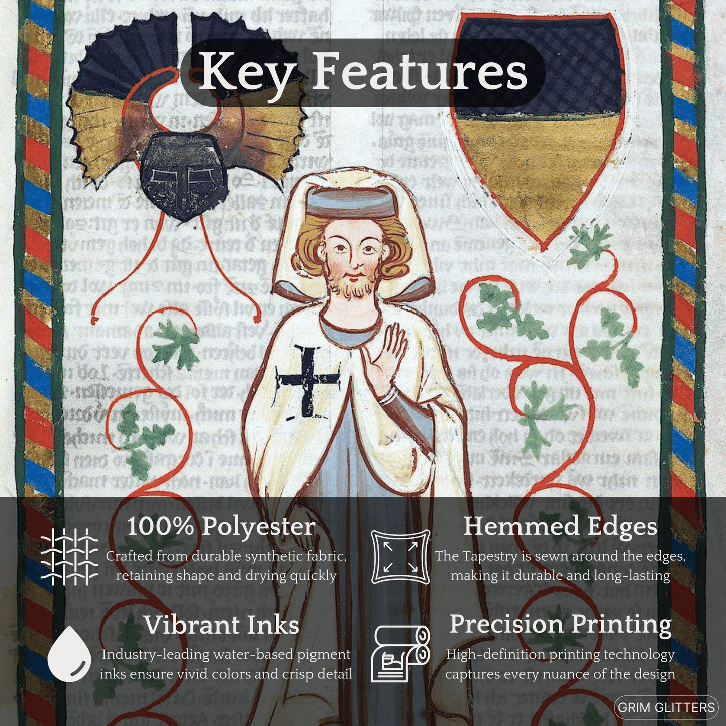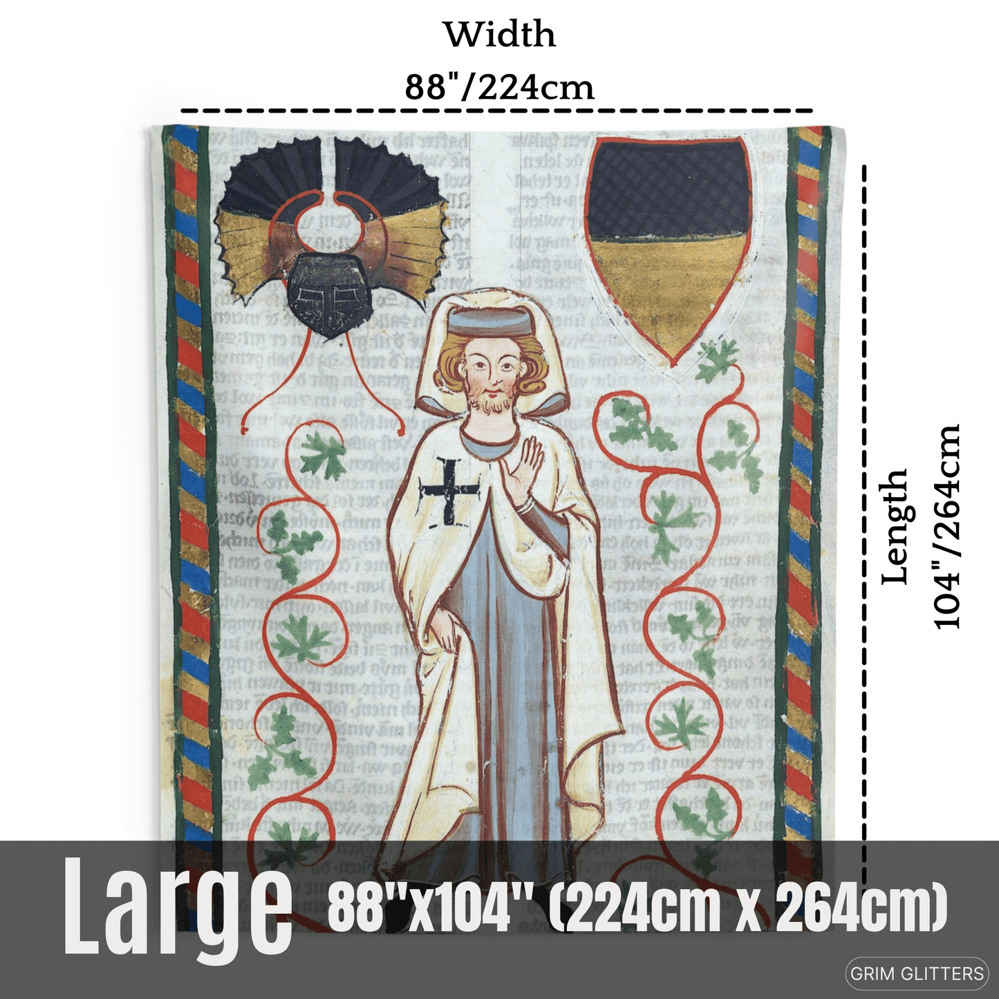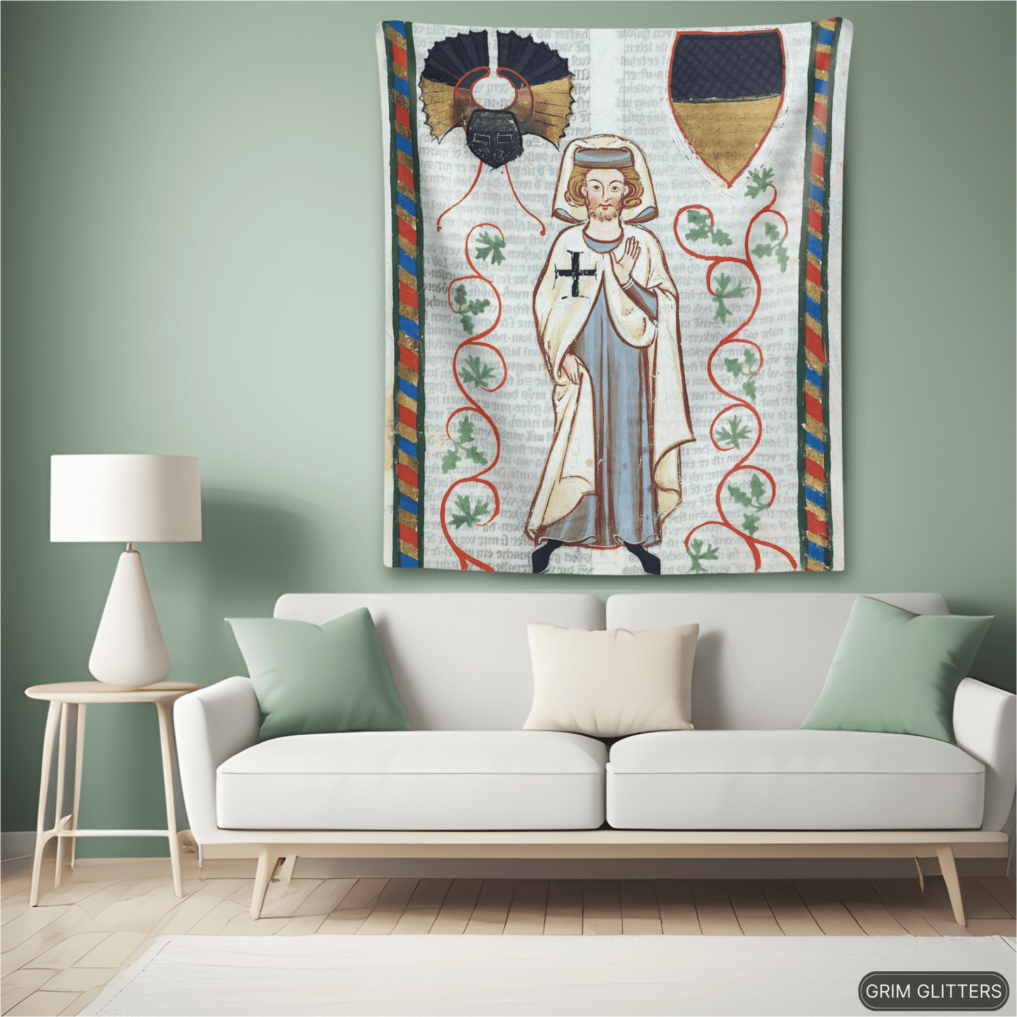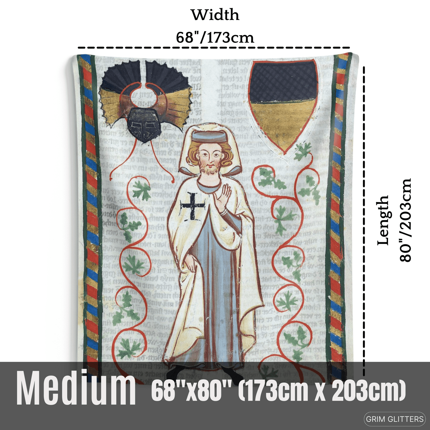 Step into the legendary world of medieval knighthood with the "Tannhauser" tapestry, inspired by the Codex Manesse. This exquisite piece features the iconic knight Tannhauser, who was associated with the Teutonic Order, a prominent medieval military order known for its role in the Crusades and Germanic history. The Codex Manesse, created between 1305 and 1340 in Zürich, is celebrated for its detailed illustrations and Middle High German poetry, capturing the cultural essence of medieval Germany. Perfect for history buffs and art lovers alike, this tapestry brings a piece of the past into your home with elegance and style.
