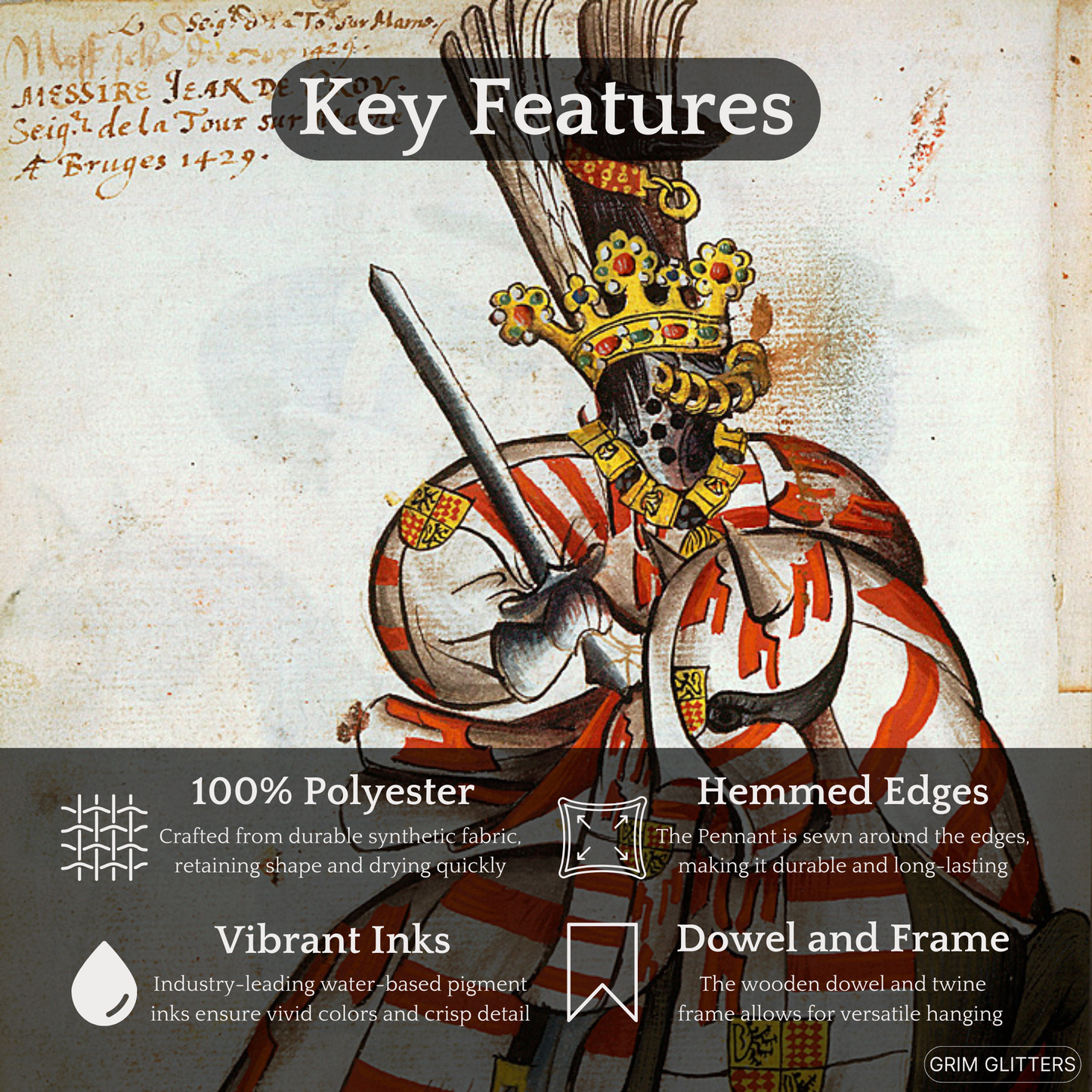 Honor the legacy of Jean de Croÿ and the timeless heritage of medieval chivalry with this beautifully crafted pennant banner.
