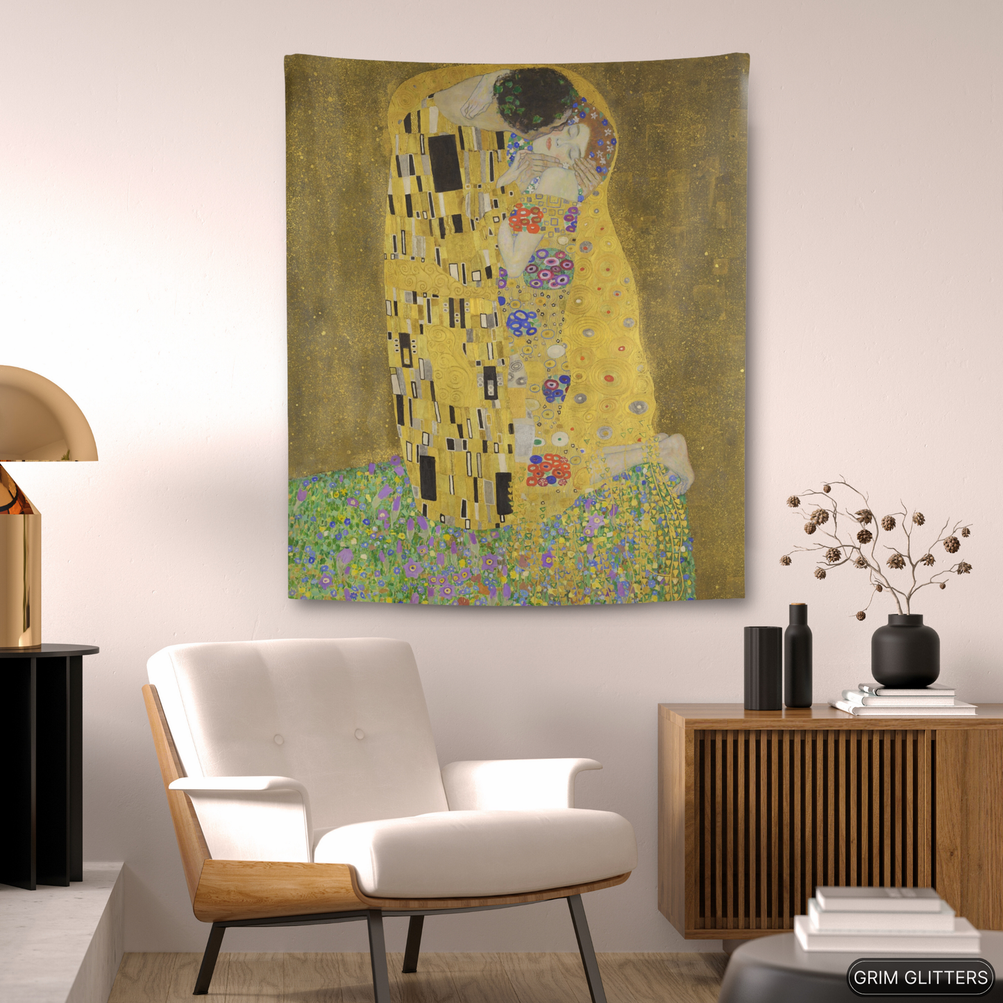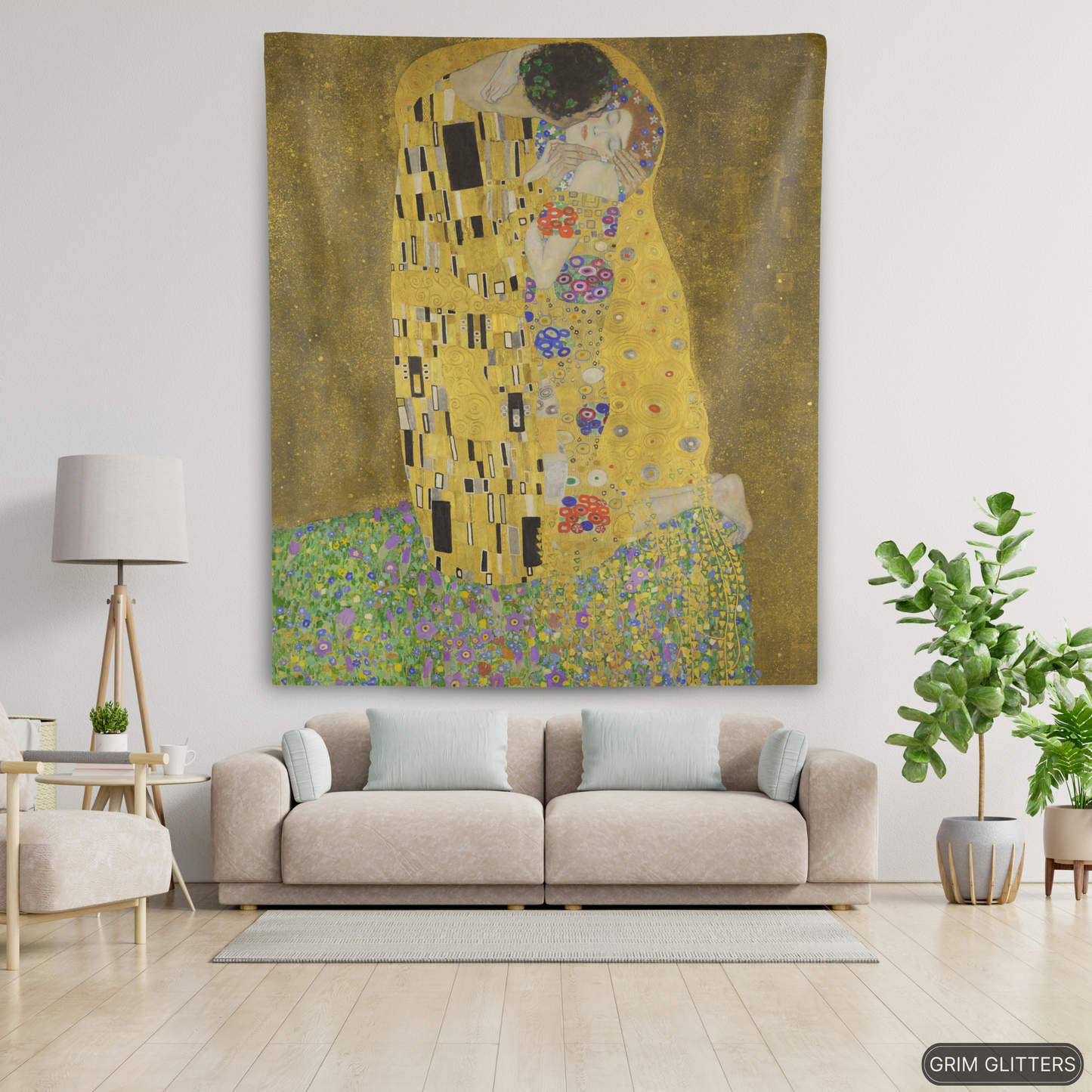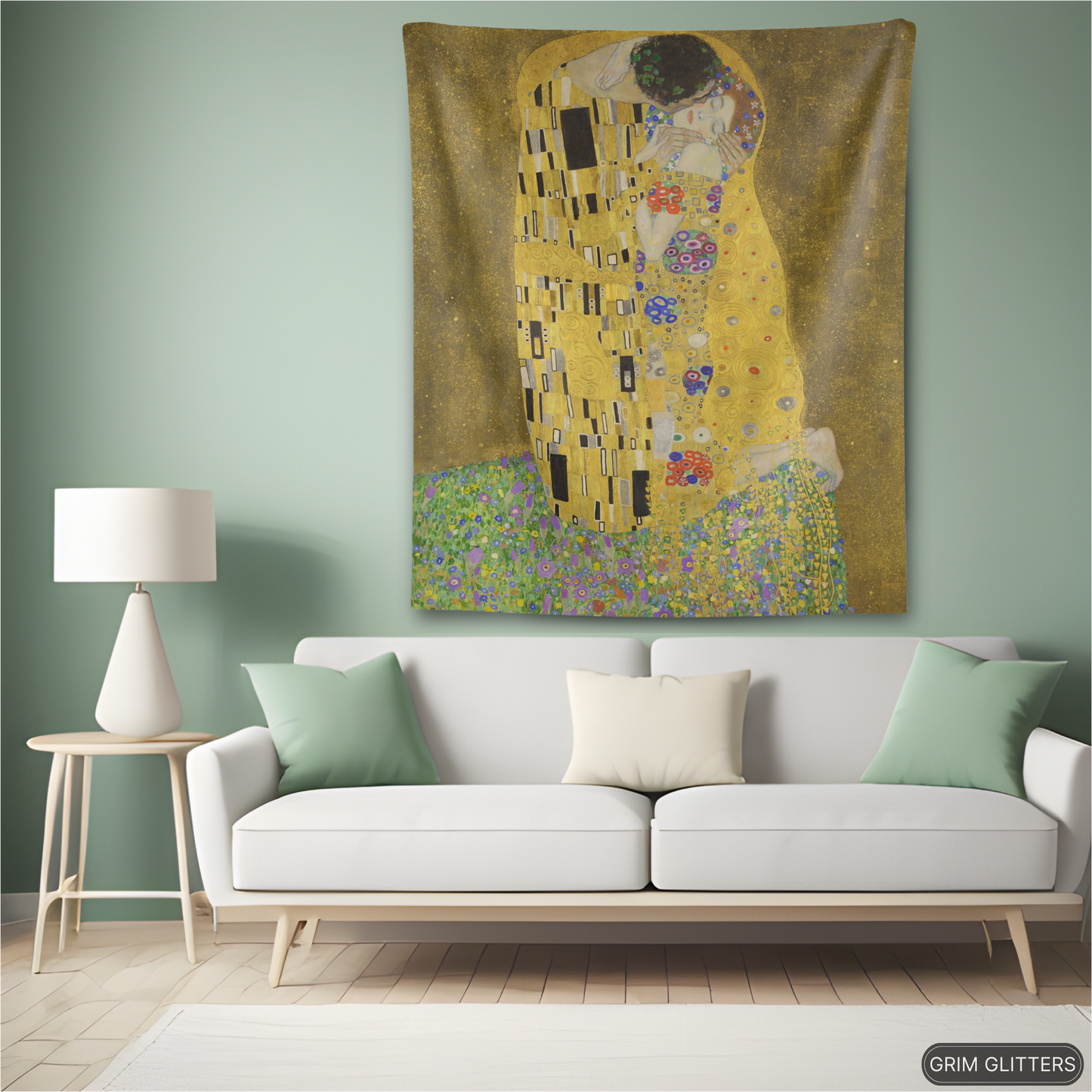 Embrace the allure of Gustav Klimt's art with our "The Kiss" Tapestry, and let its romantic charm and intricate beauty grace your home.