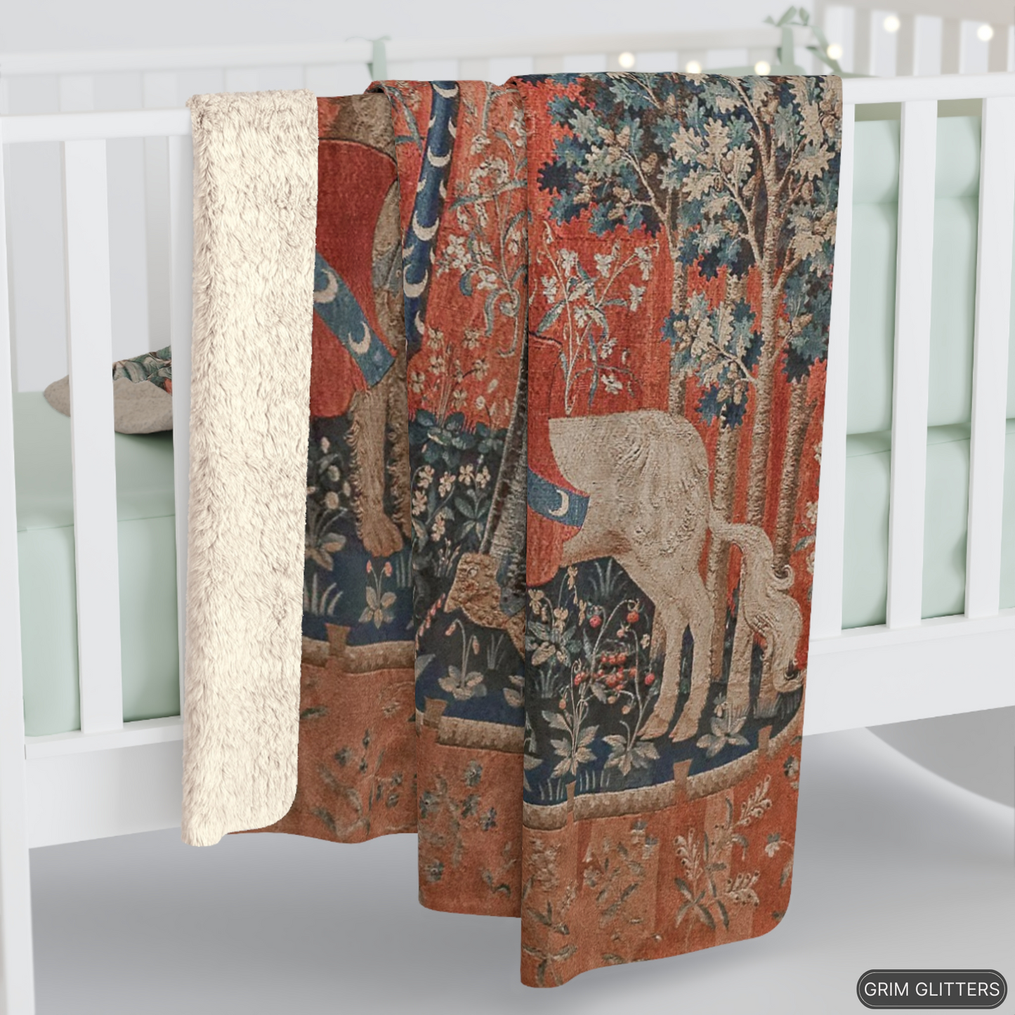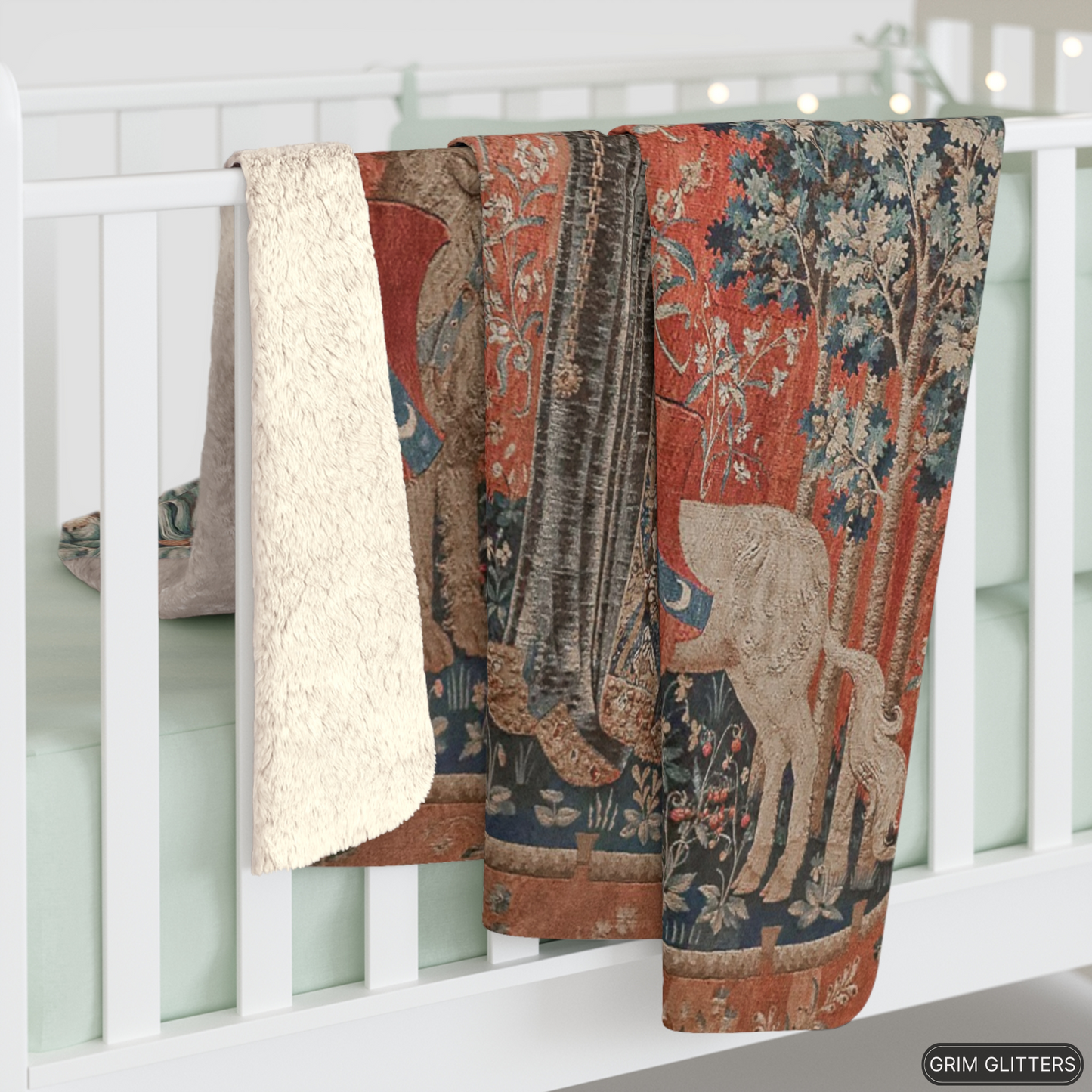 The Lady and the Unicorn (Touch) Sherpa Fleece Blanket - Unicorn Tapestry