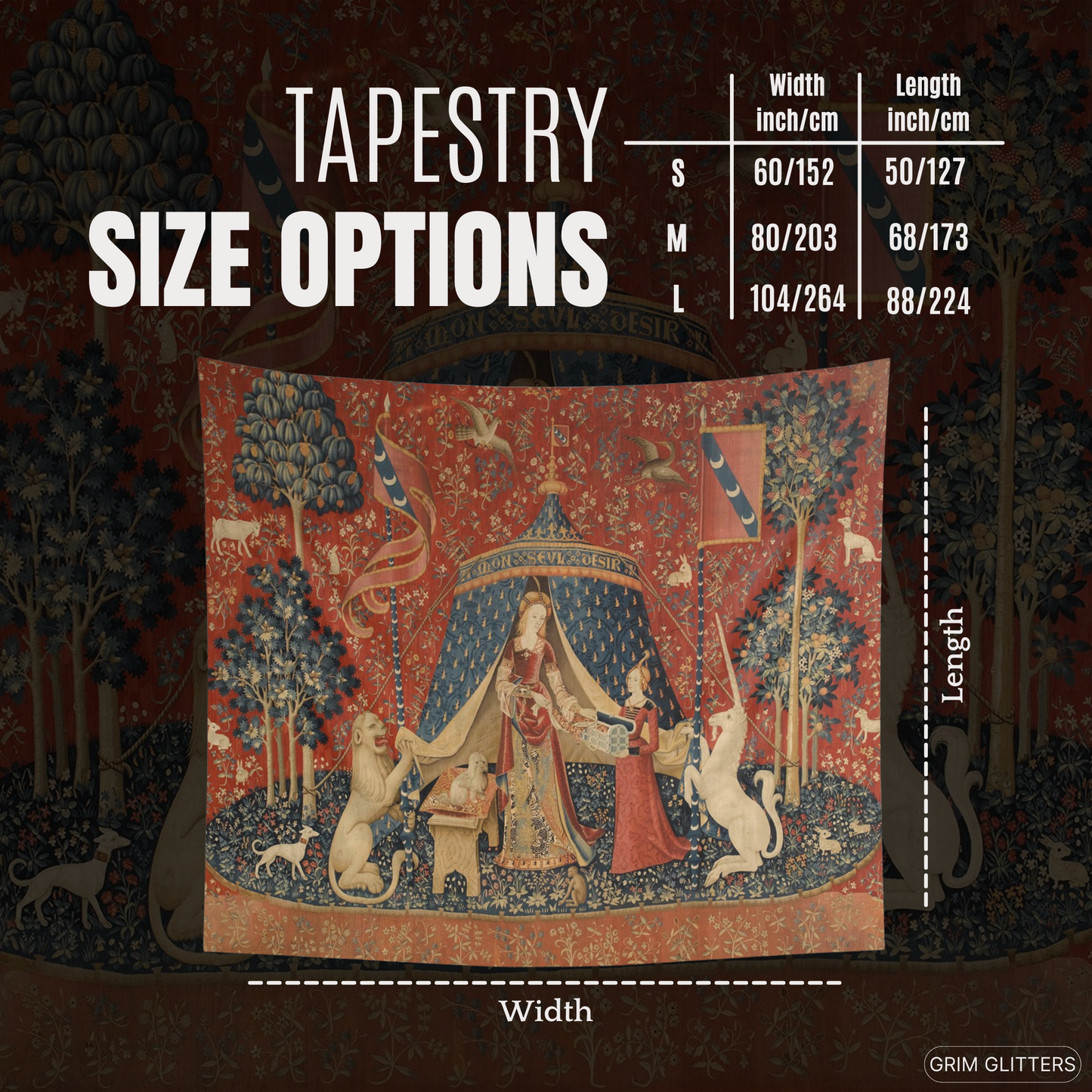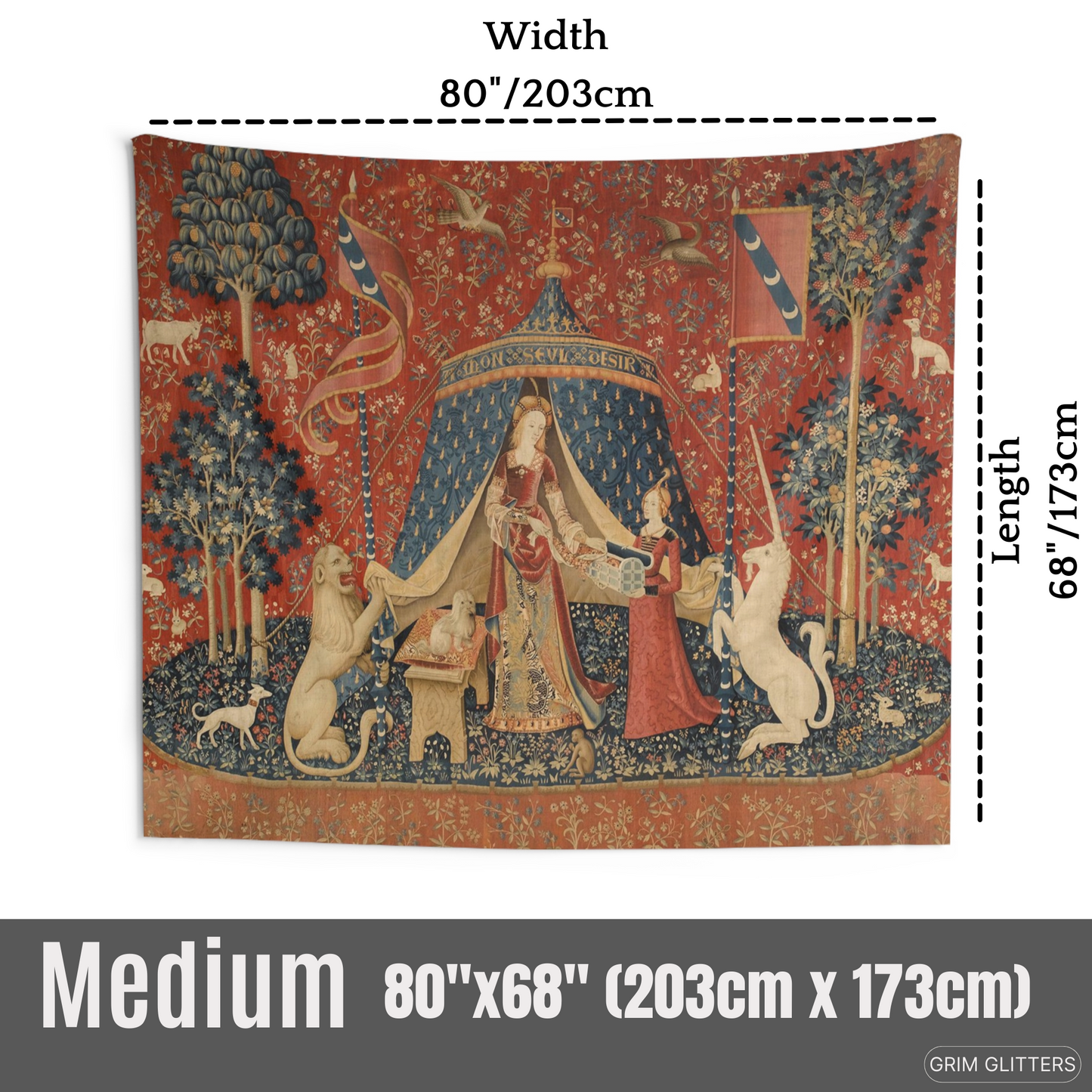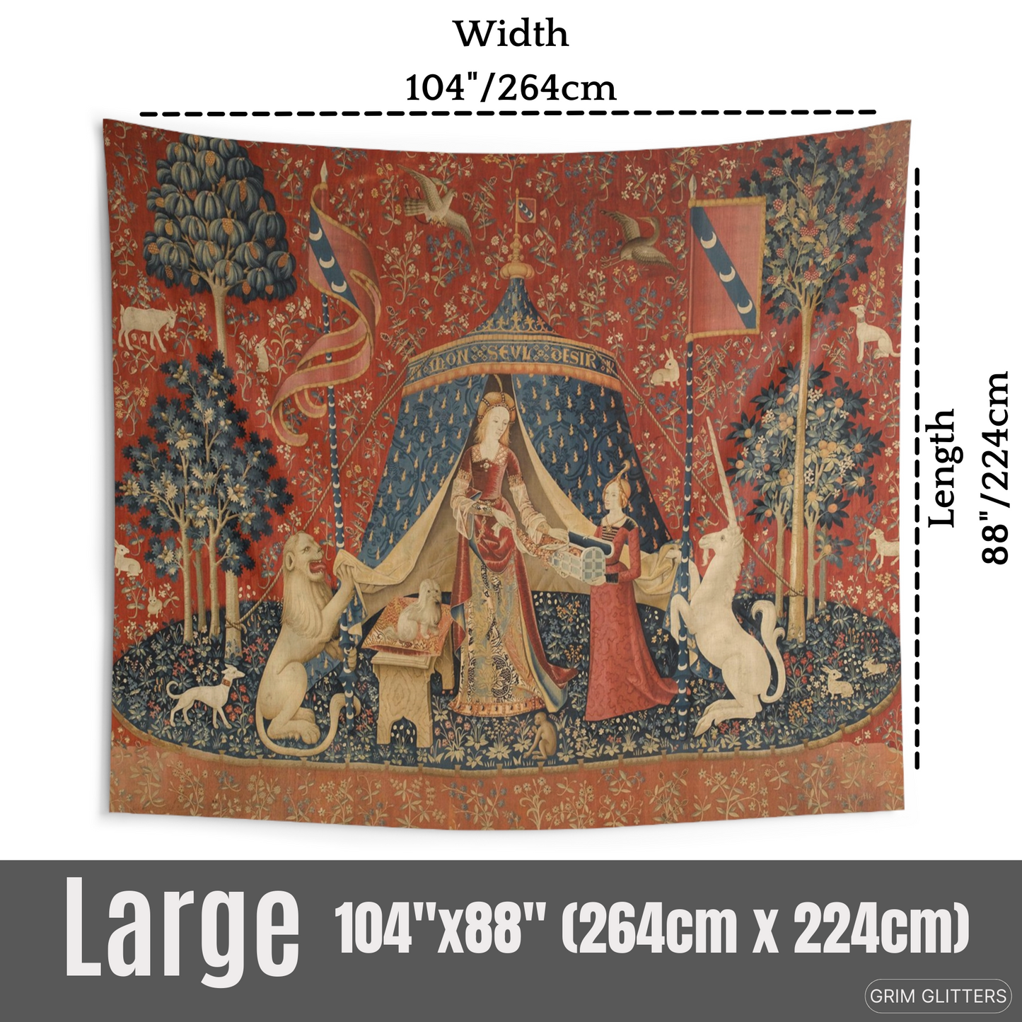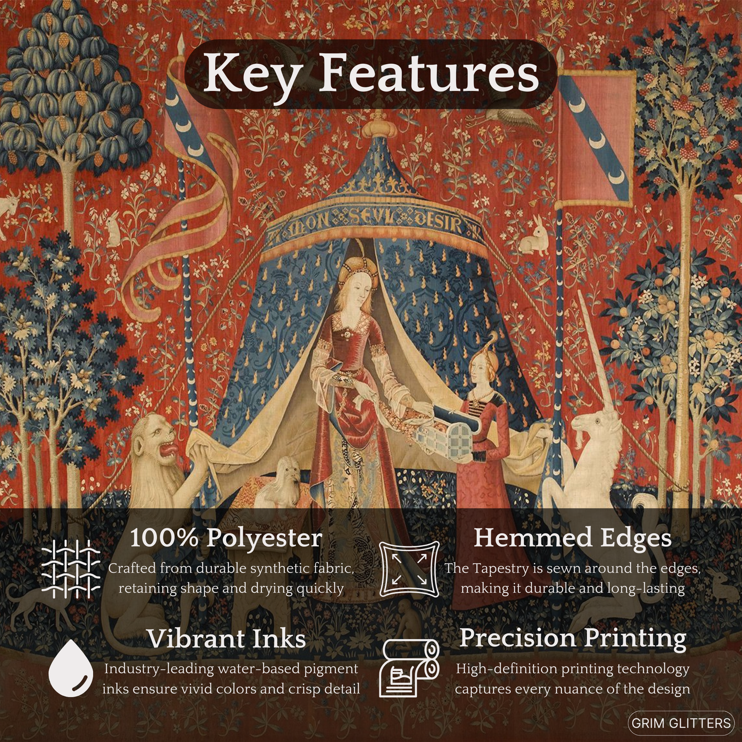 Step into the enchanting world of medieval artistry with our The Lady and the Unicorn (Desire) Tapestry. Capturing the essence of wonder and elegance, this tapestry brings to life the iconic imagery of the Unicorn Tapestries, transporting you to a realm of magic and fantasy.