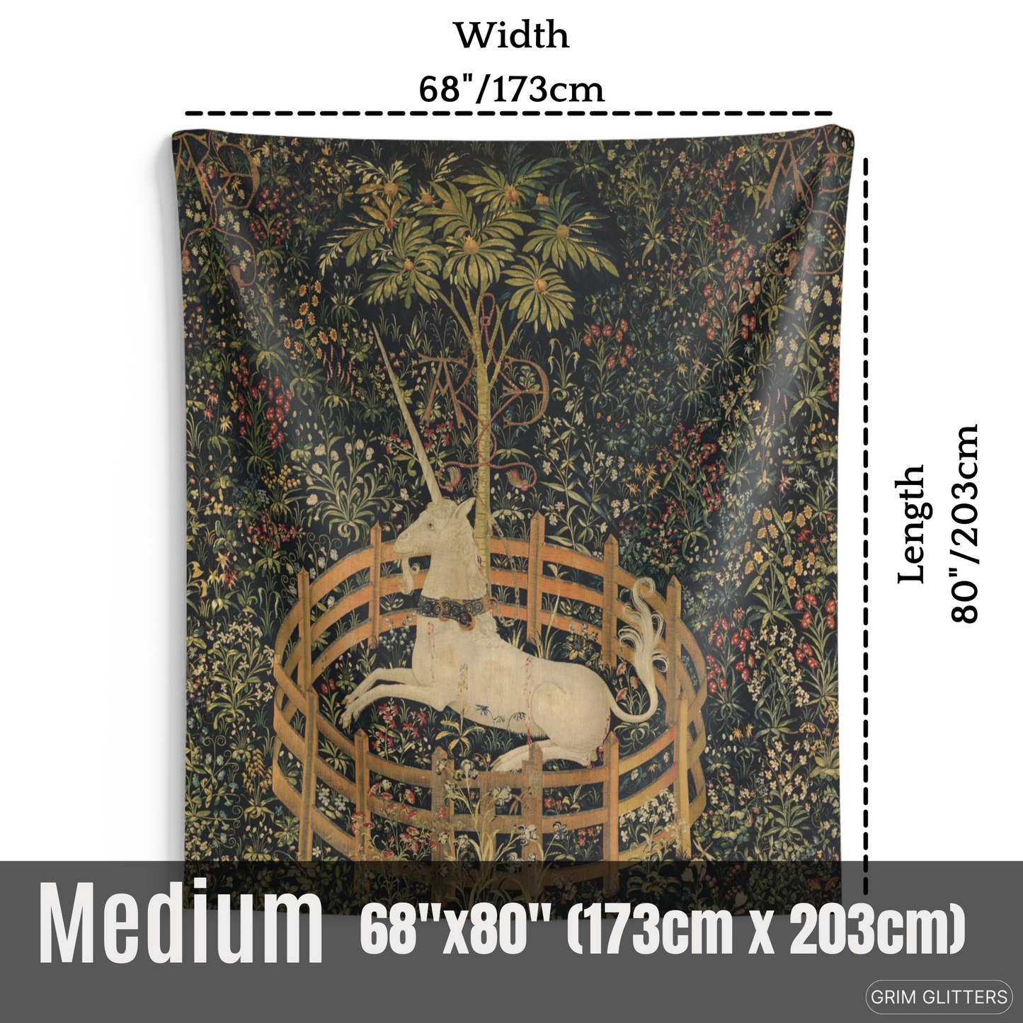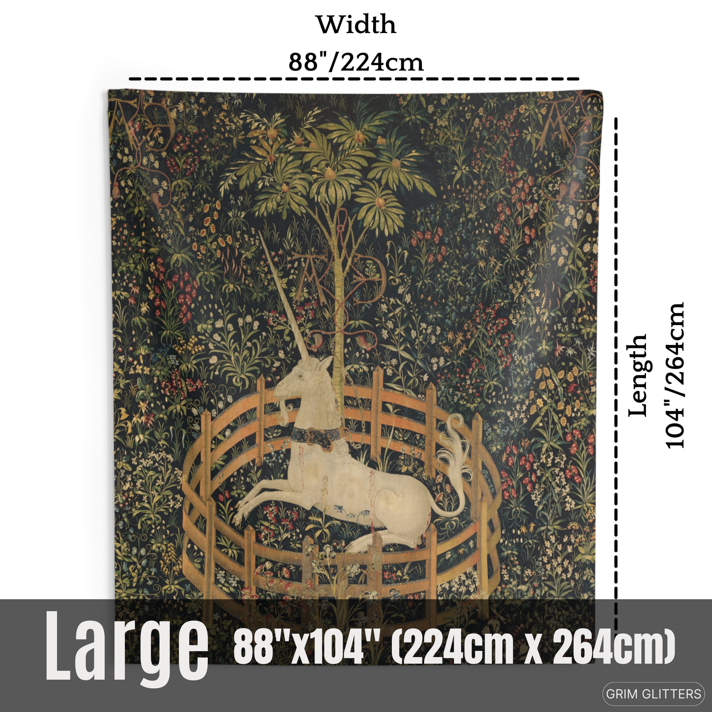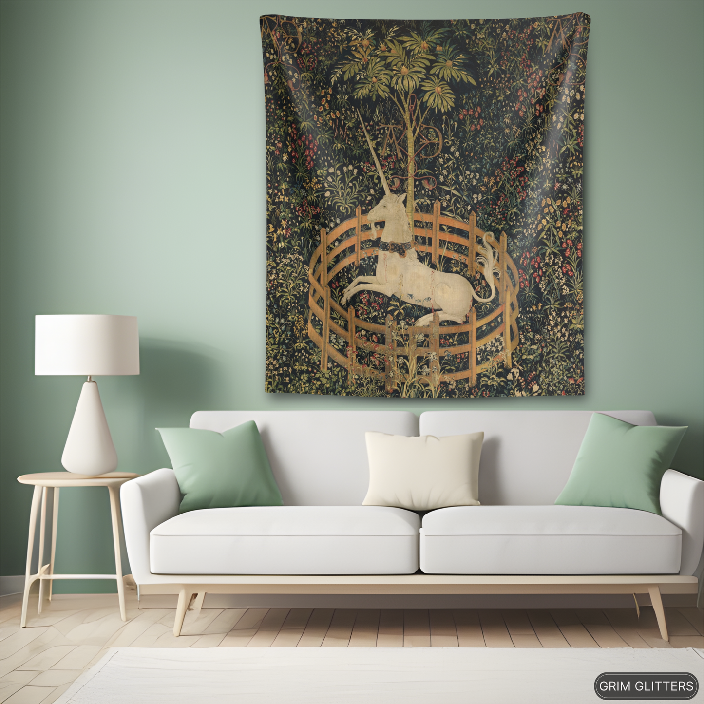 Depicting a majestic unicorn surrounded by lush foliage and delicate flowers, this tapestry symbolizes purity, strength, and the triumph of the spirit over adversity.